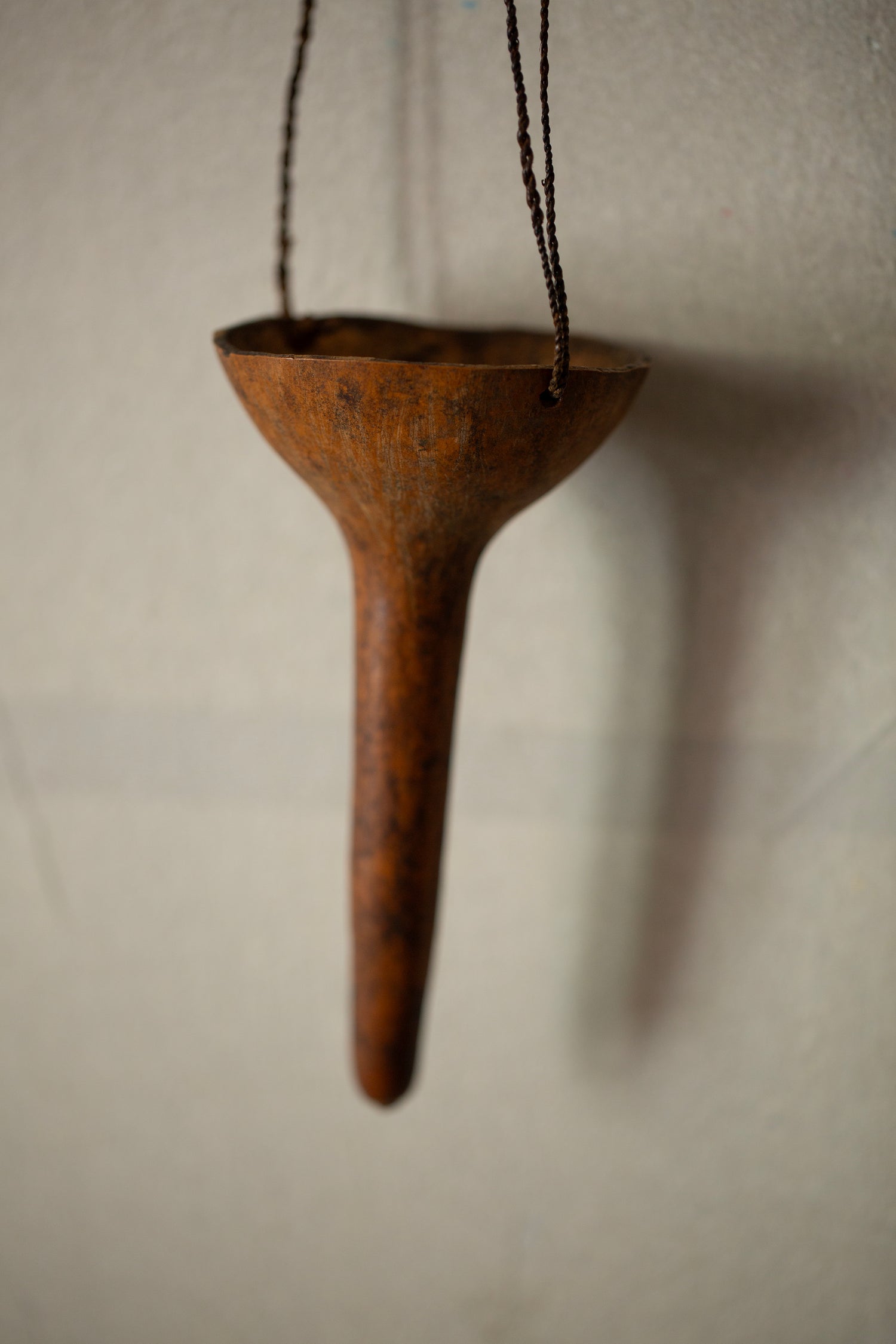 Antique horim/penis gourd with a finely twisted bast fiber cord.
