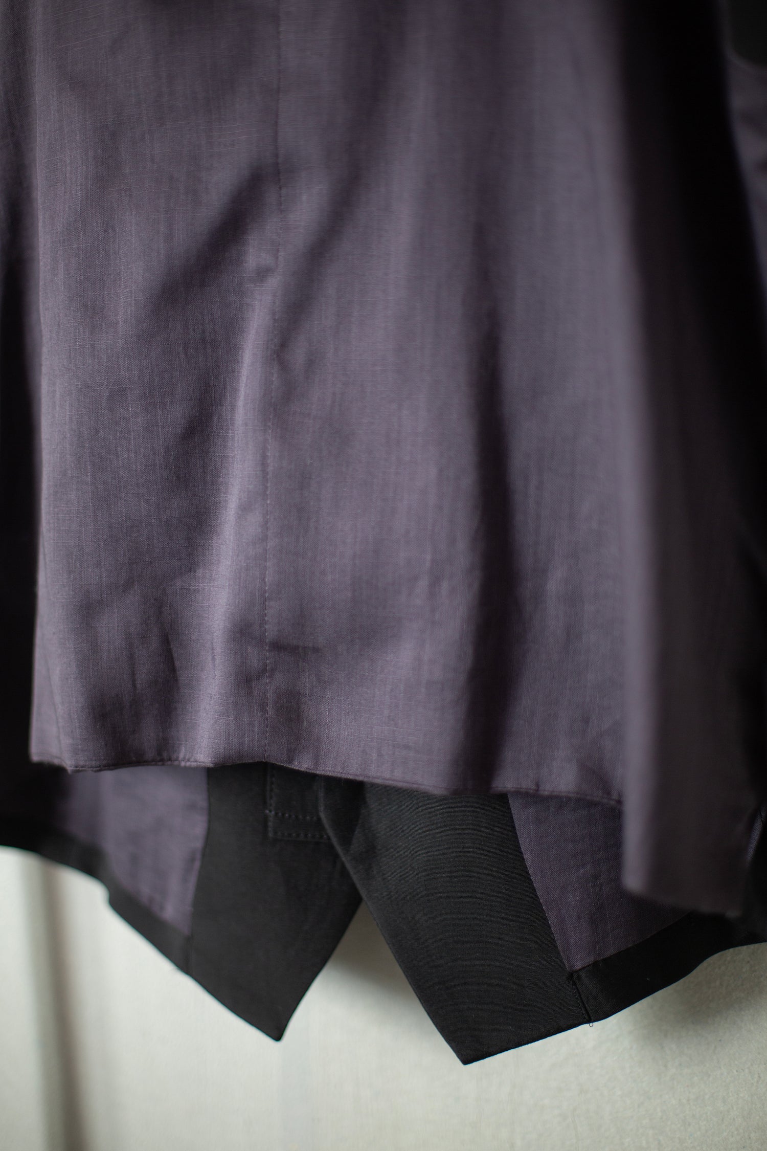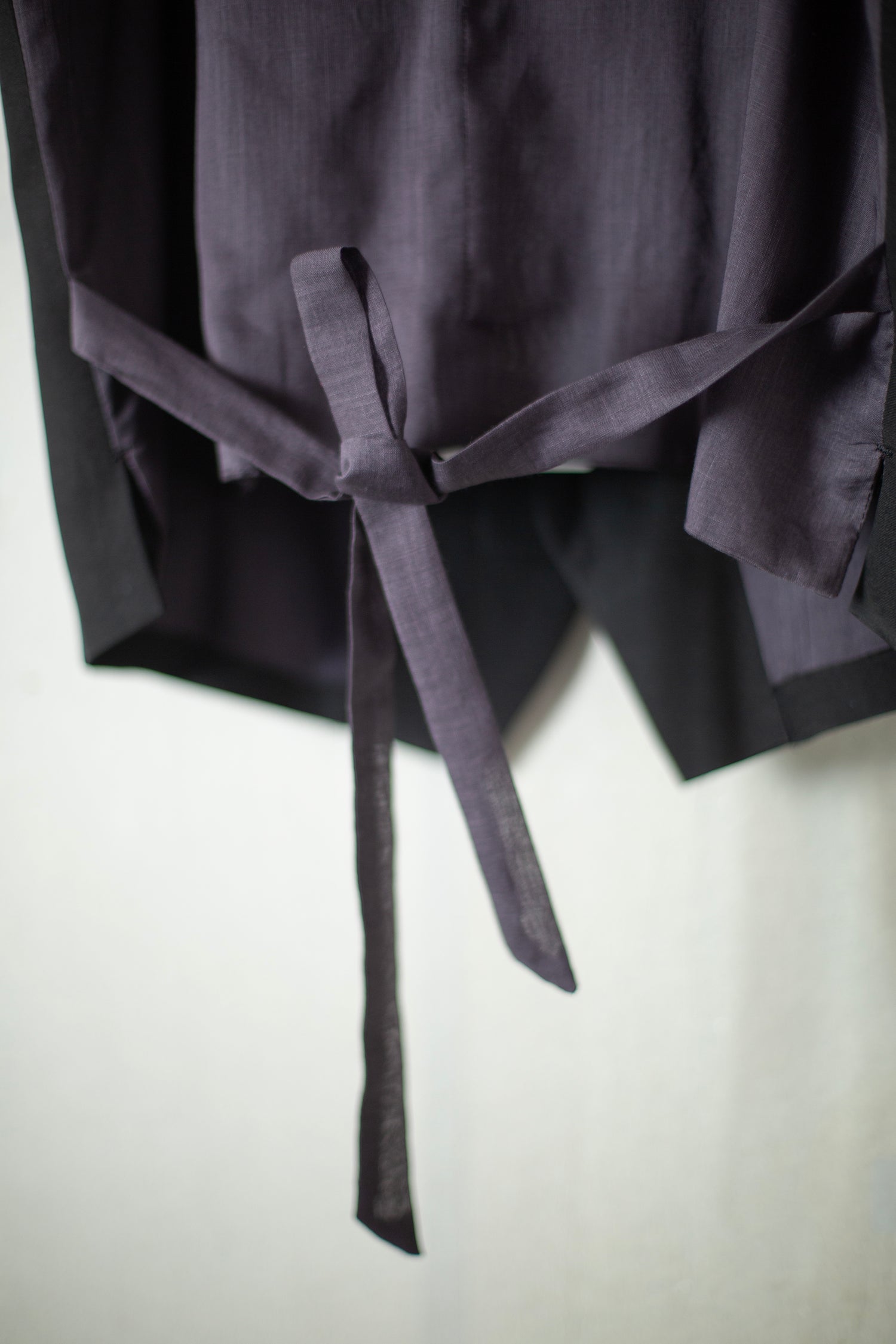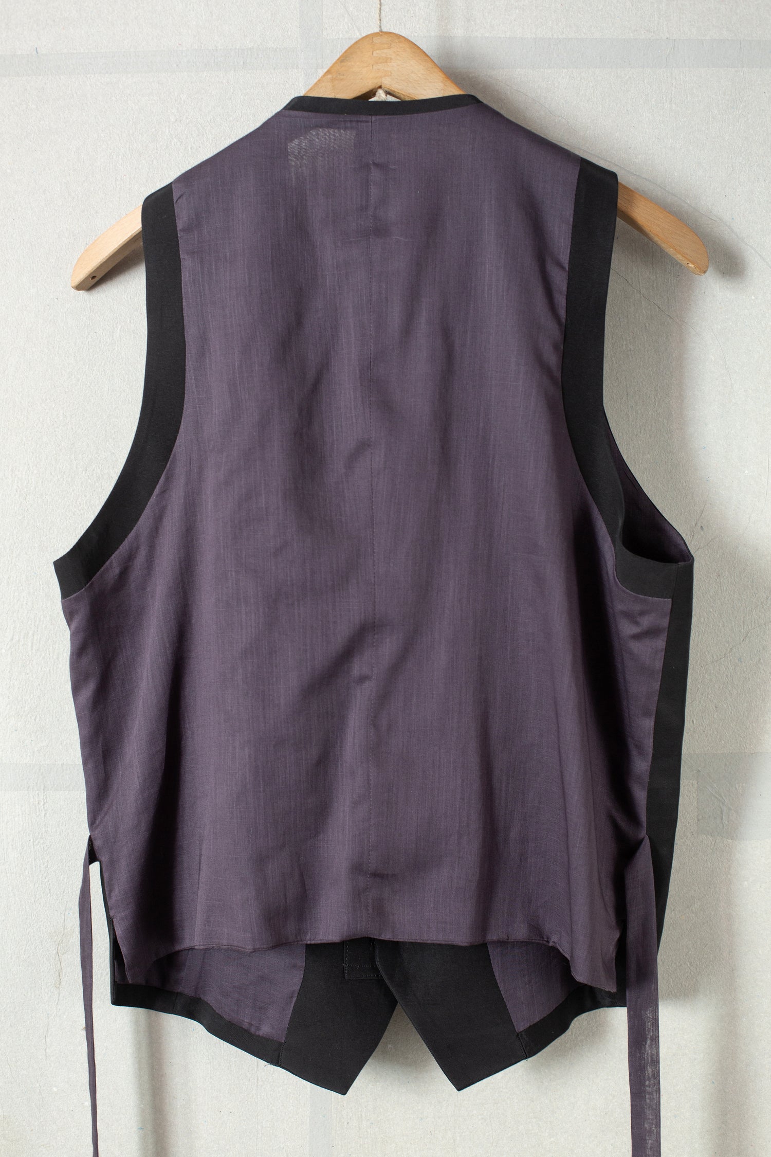 Tailored vest by Seya. in black and aubergine coloured washi cupro.