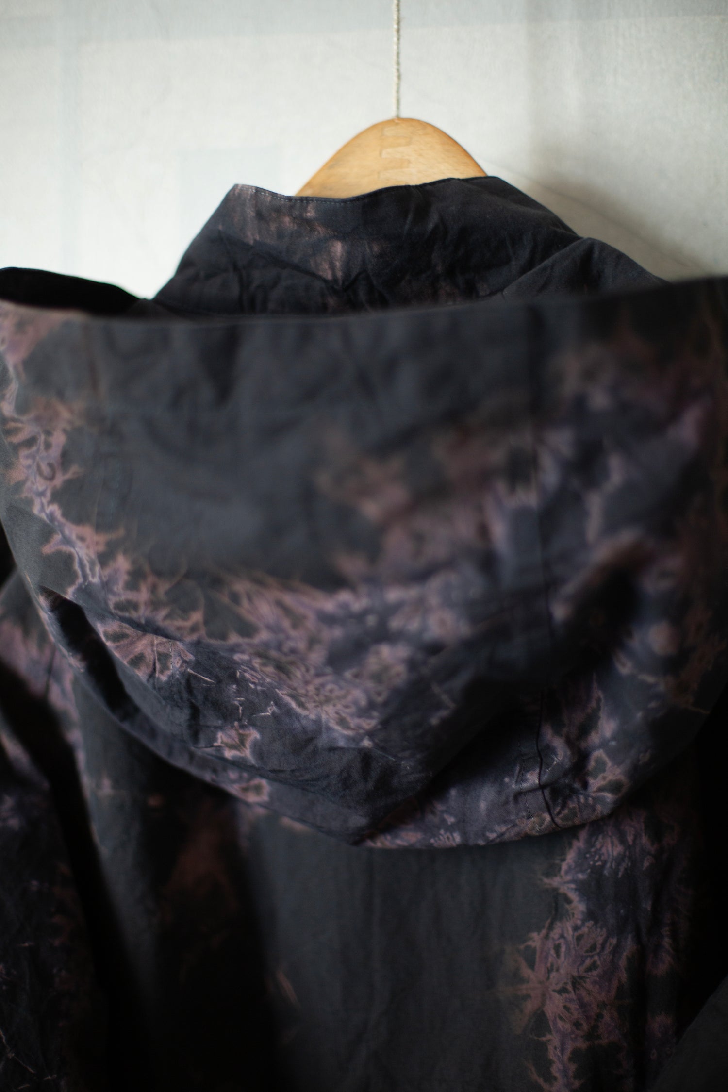 black/black cotton broad hooded jacket with shibori dyed pattern