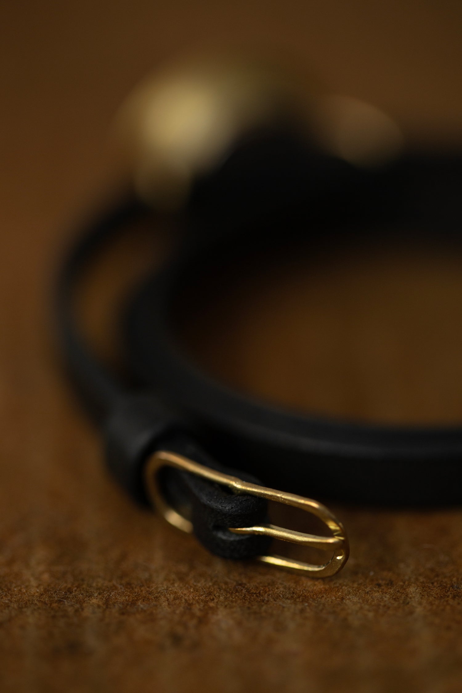 Handmade watch with extra long adjustable leather bracelet, black leather dial and brass case and buckle.