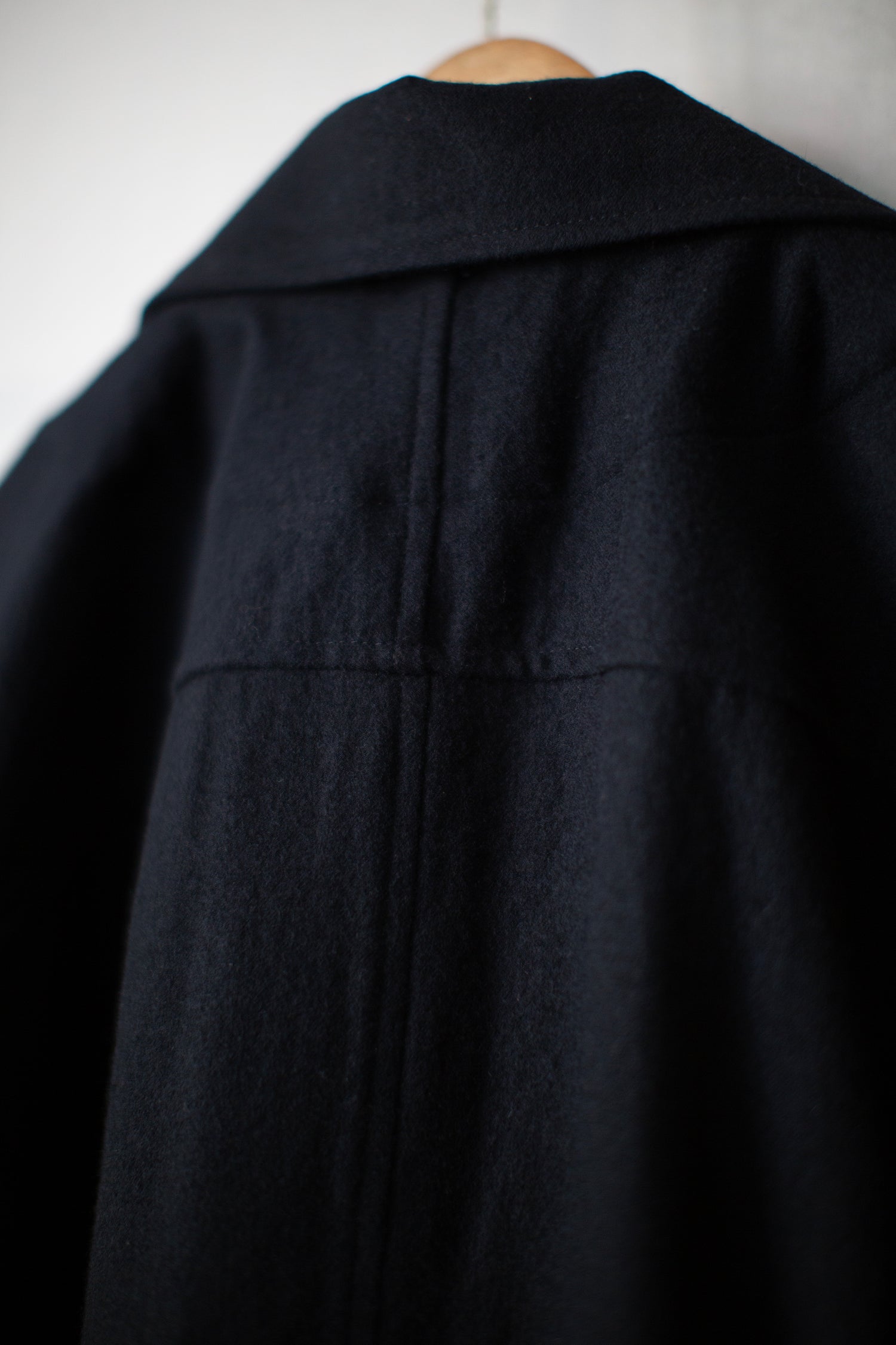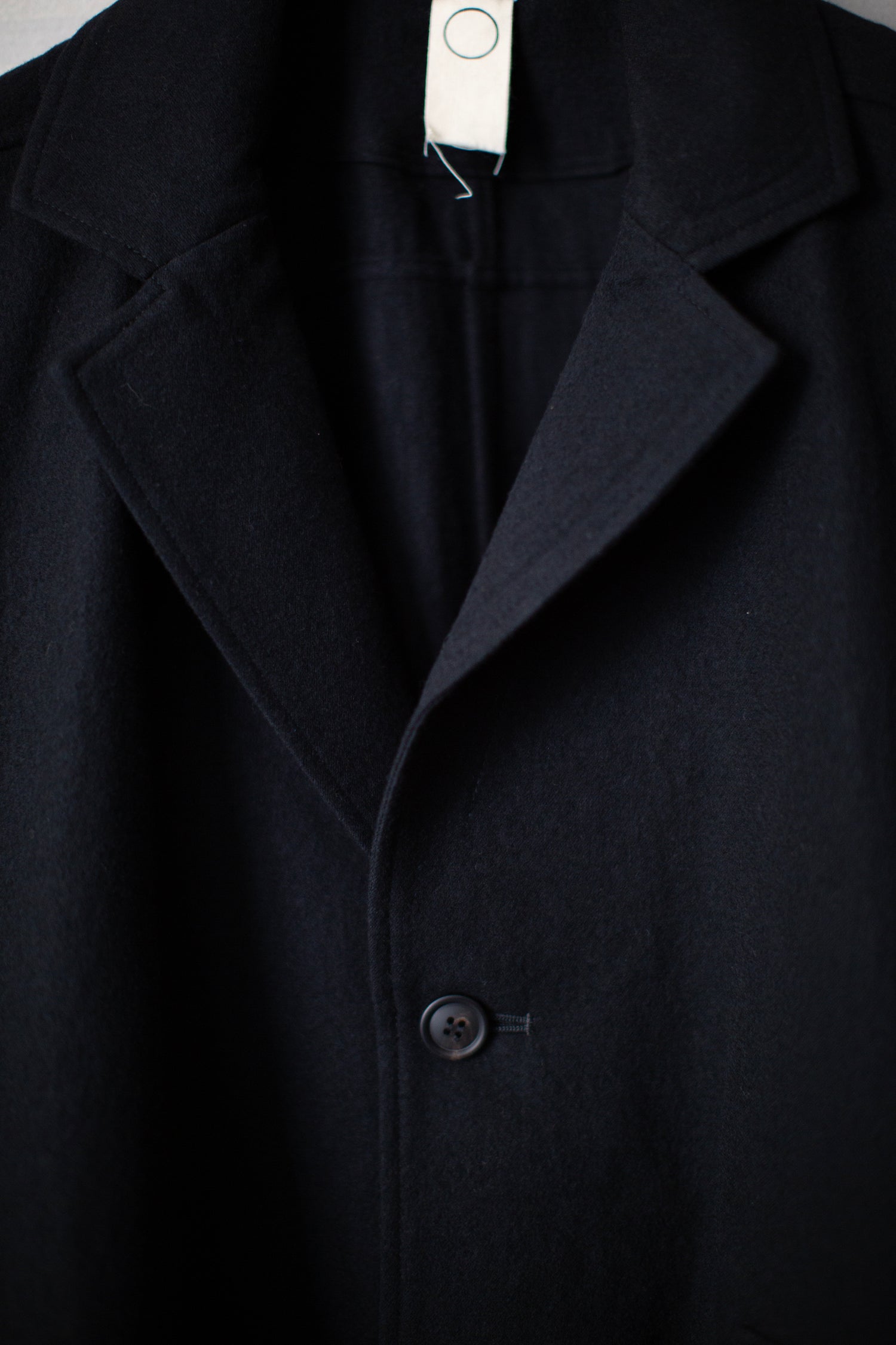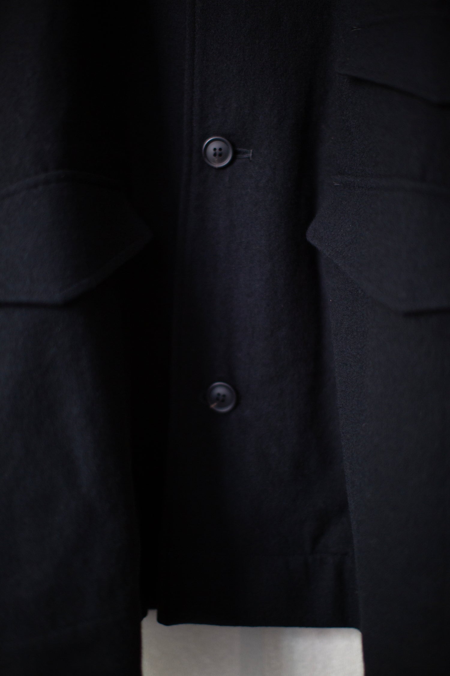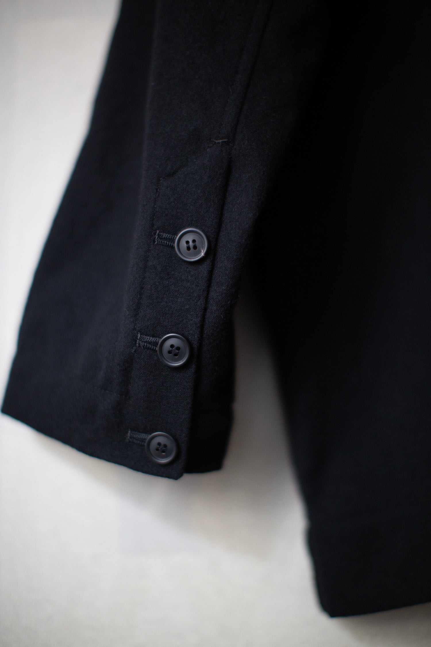 Unlined three button blazer jacket in dark brown doro (mud) dyed silk cotton with three flap closure front pockets and one split in back.