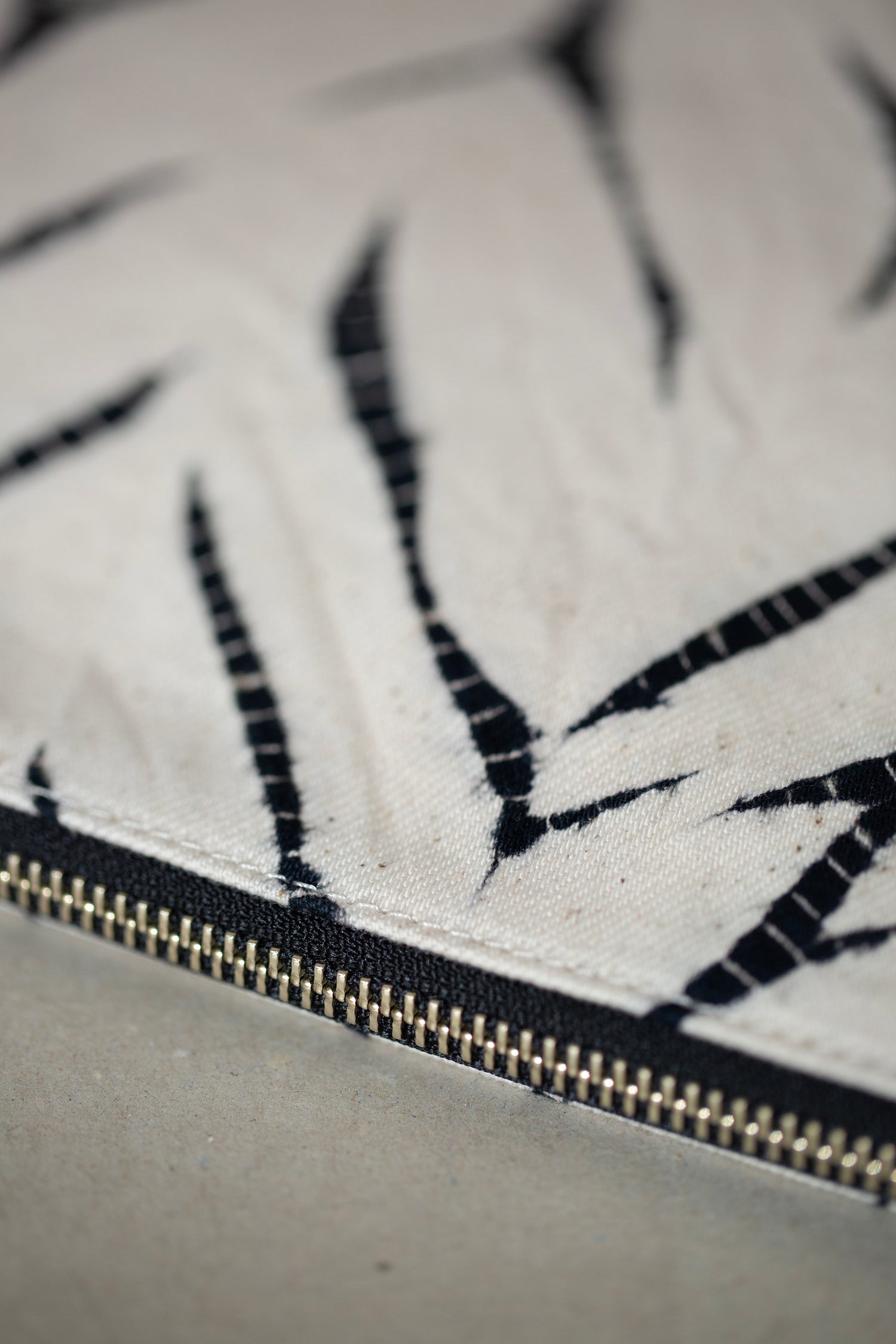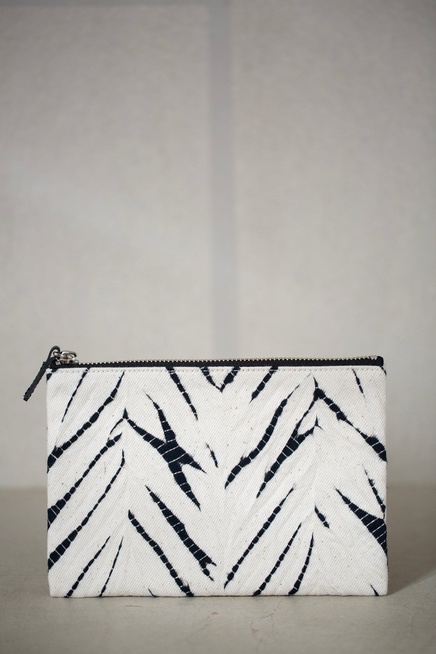 black / ivory organic cotton pouch S with shibori dyed pattern