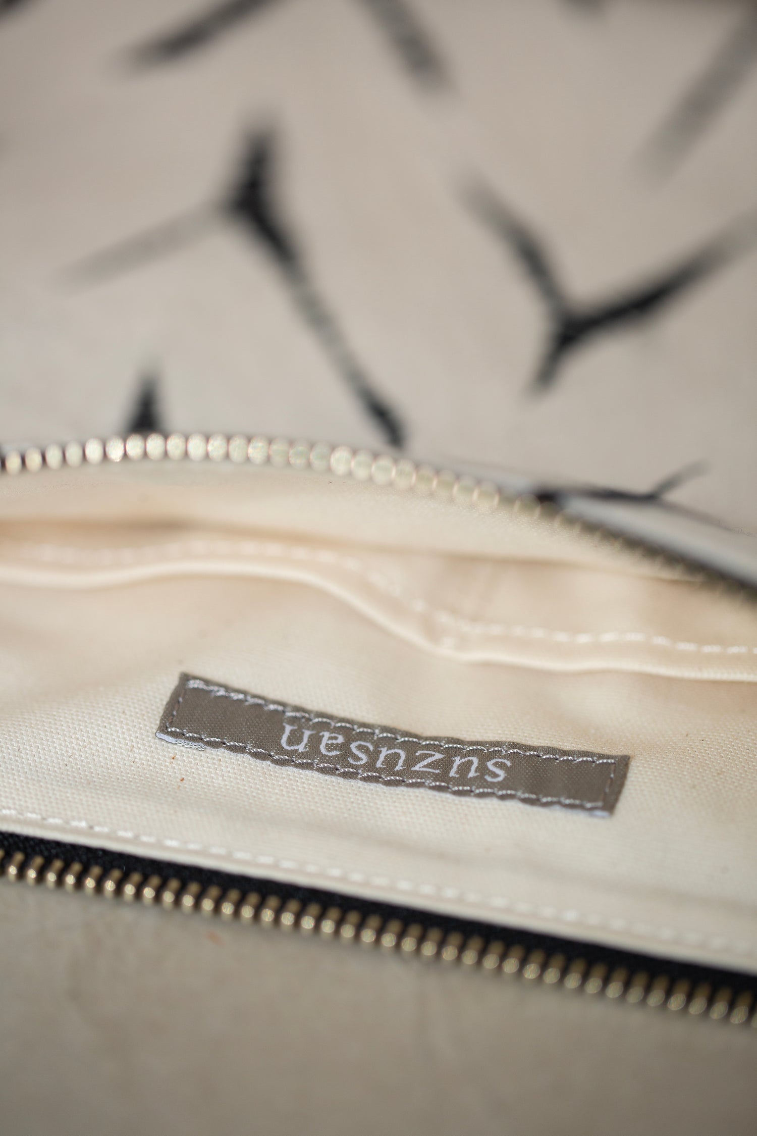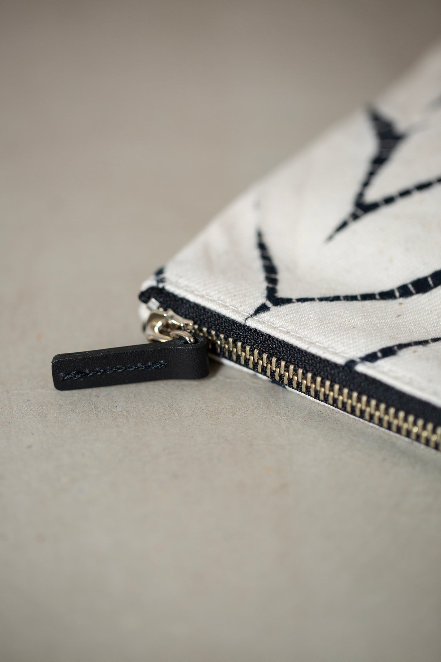 Handcrafted pouch in organic cotton by Suzusan, with two inside pockets and zipper closure.