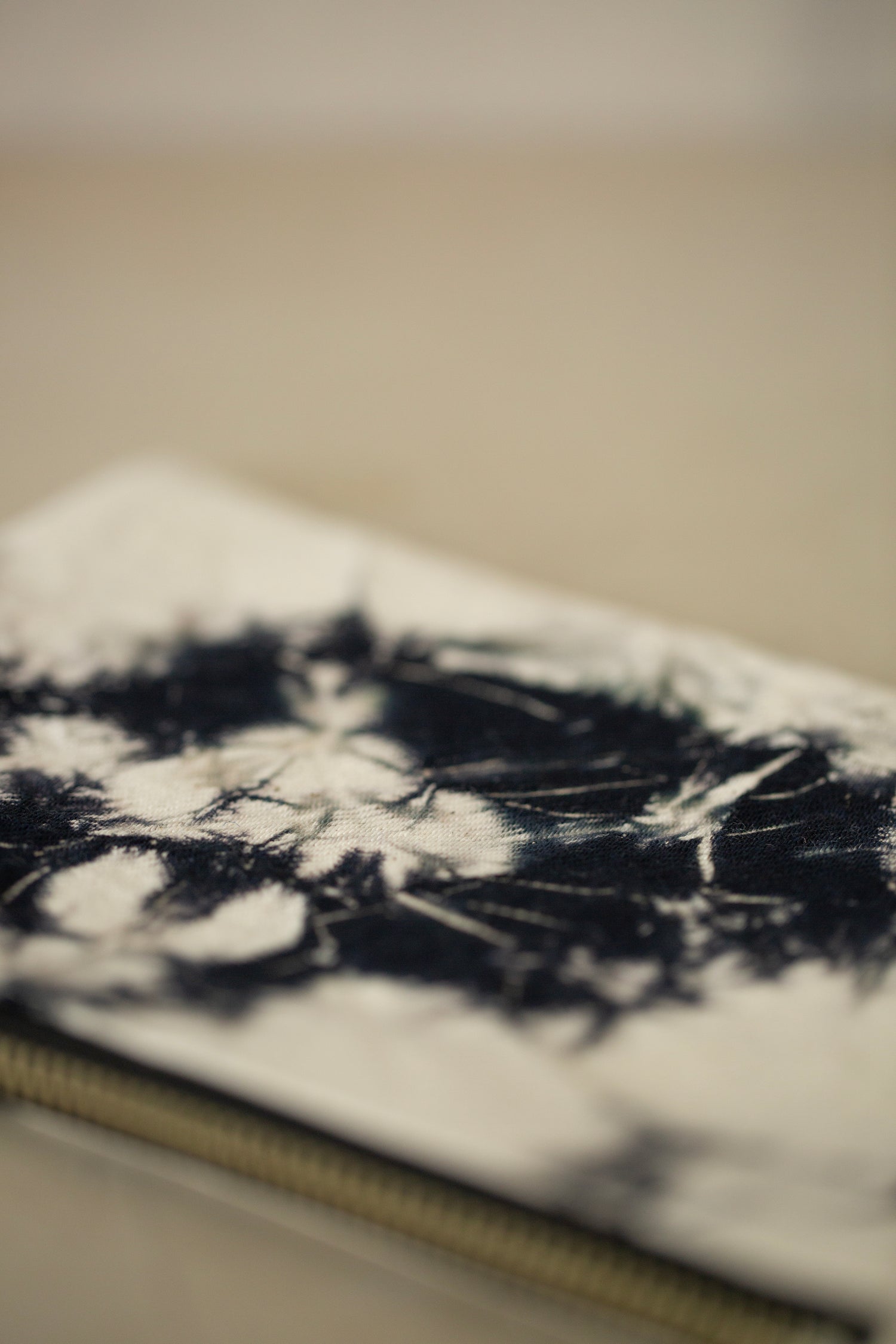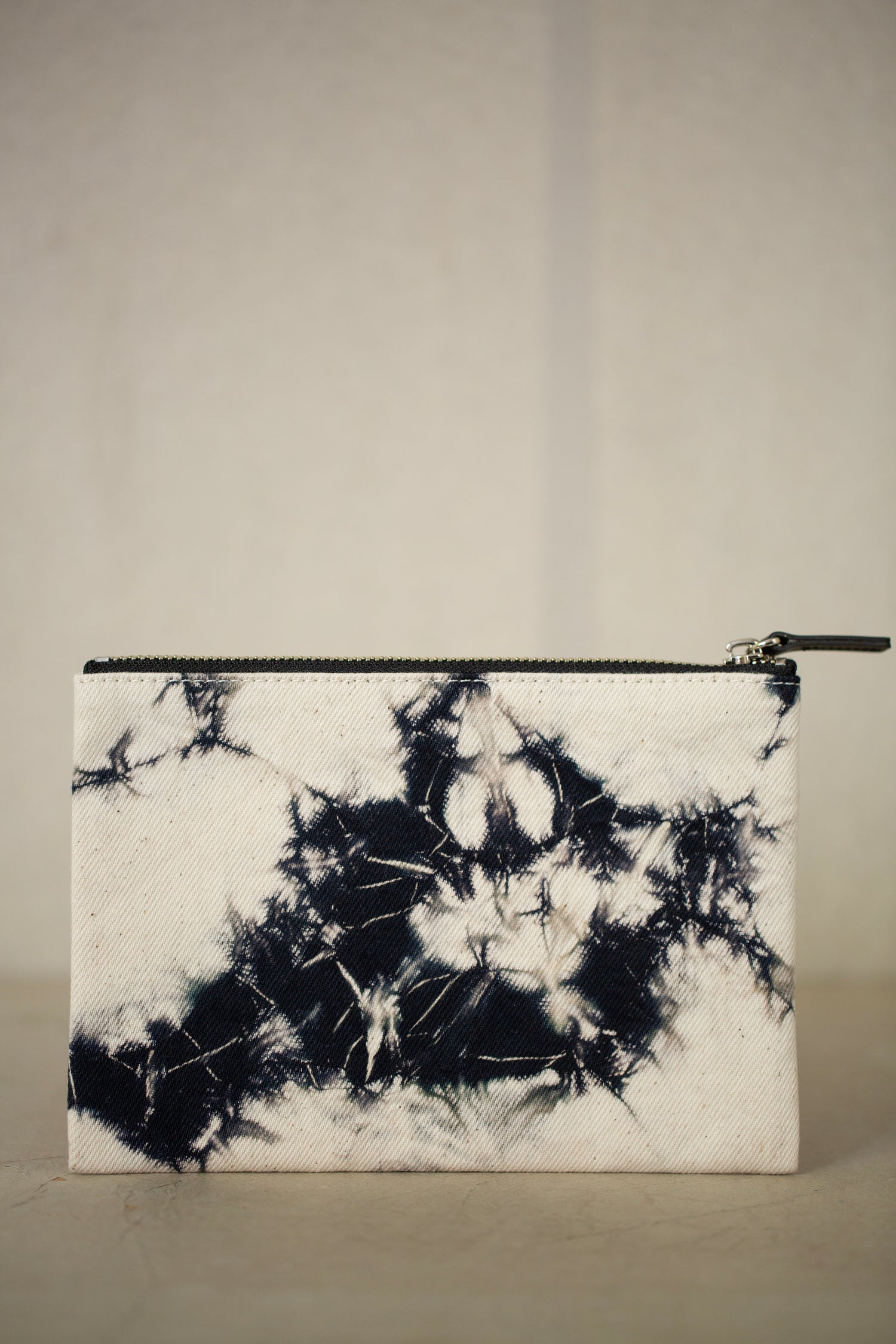 black / ivory organic cotton pouch S with shibori dyed pattern