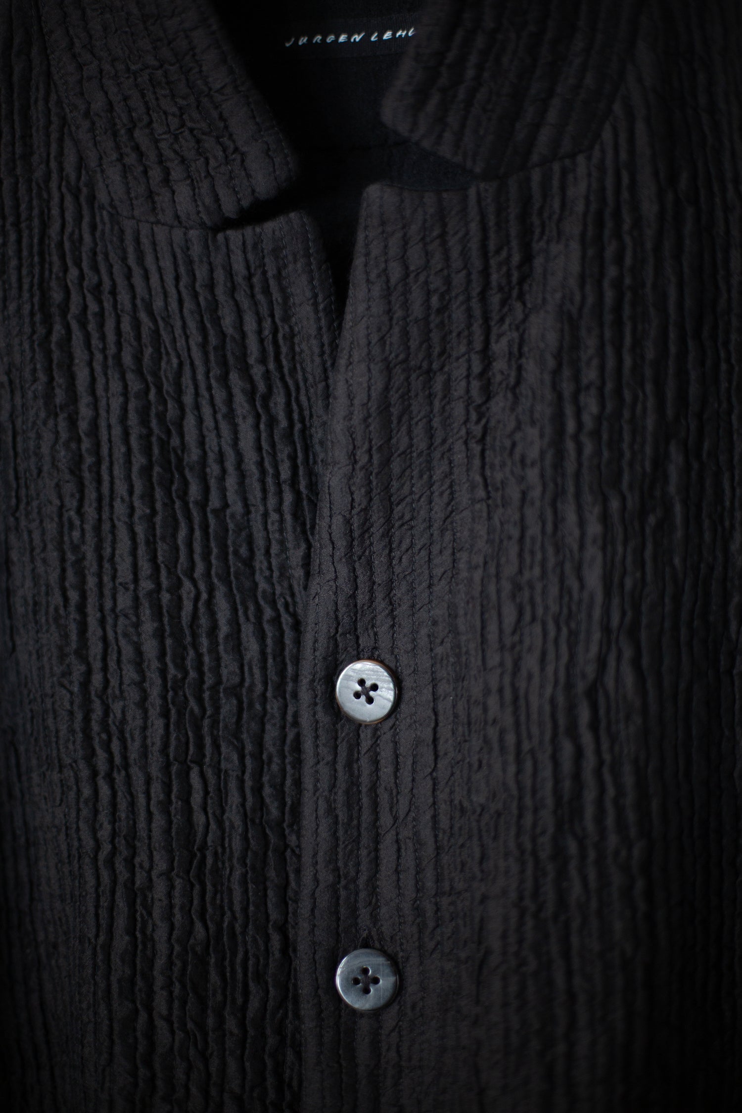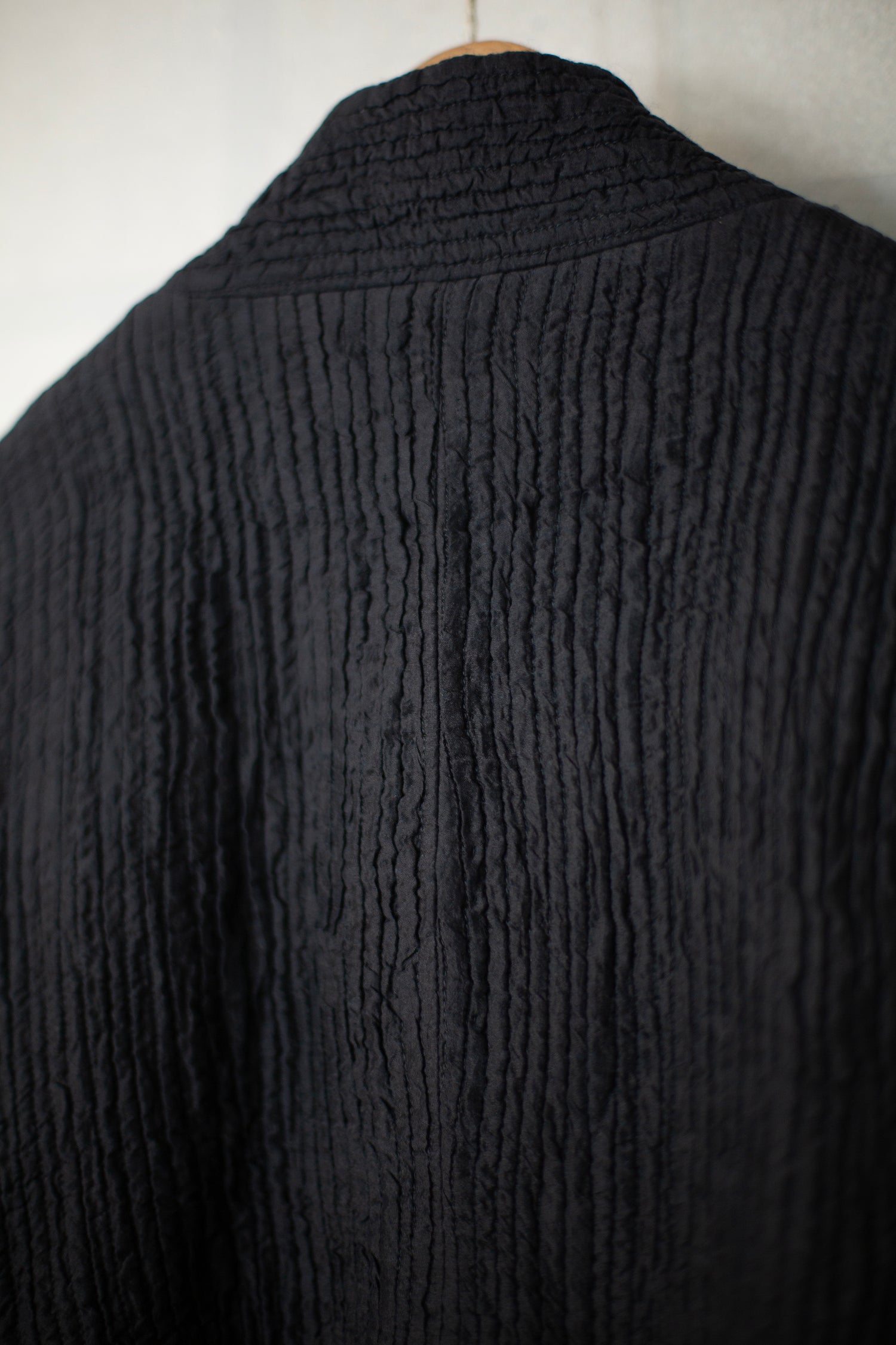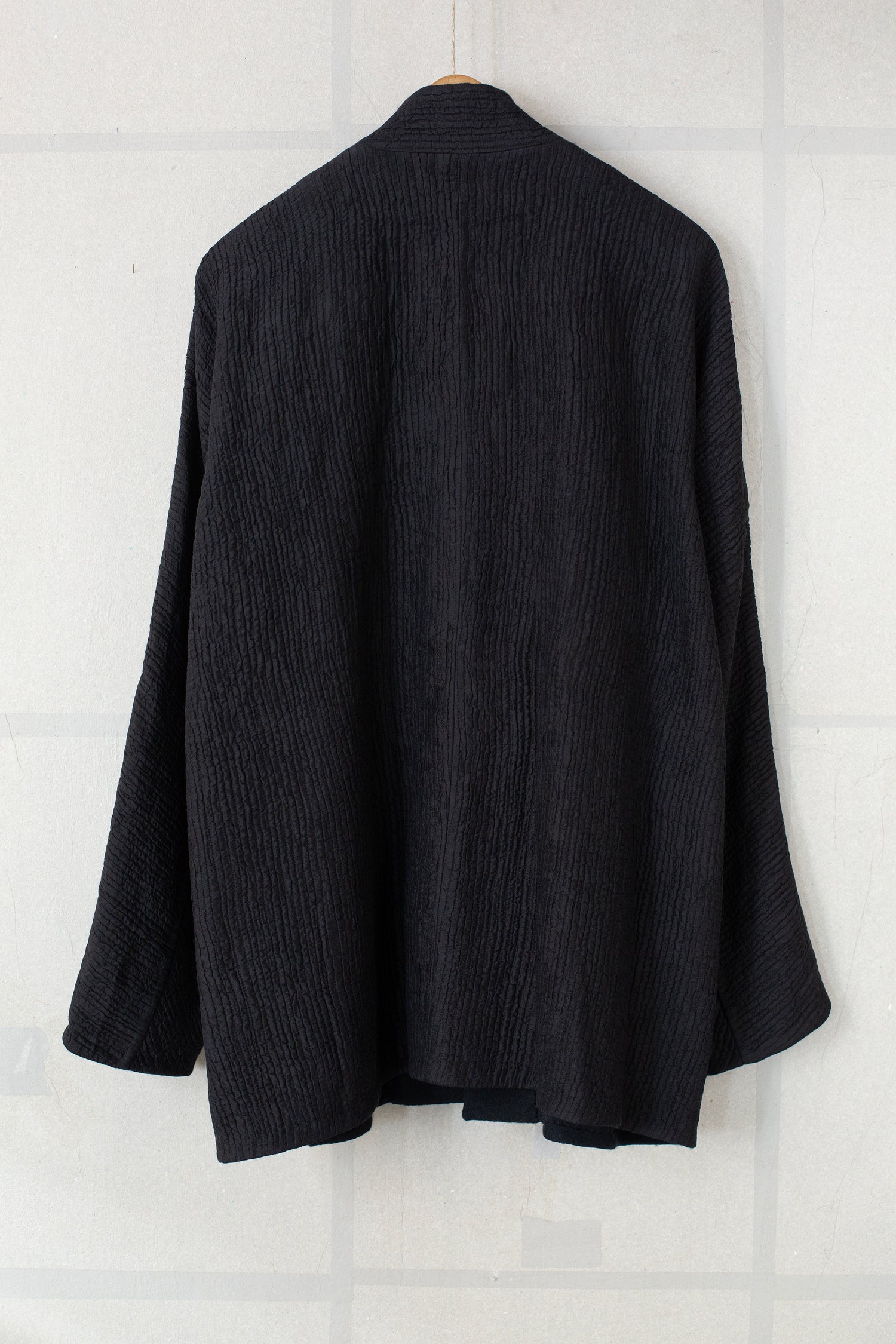 Black silk wool thin quilting jacket by Jurgen Lehl with on seam side pockets.