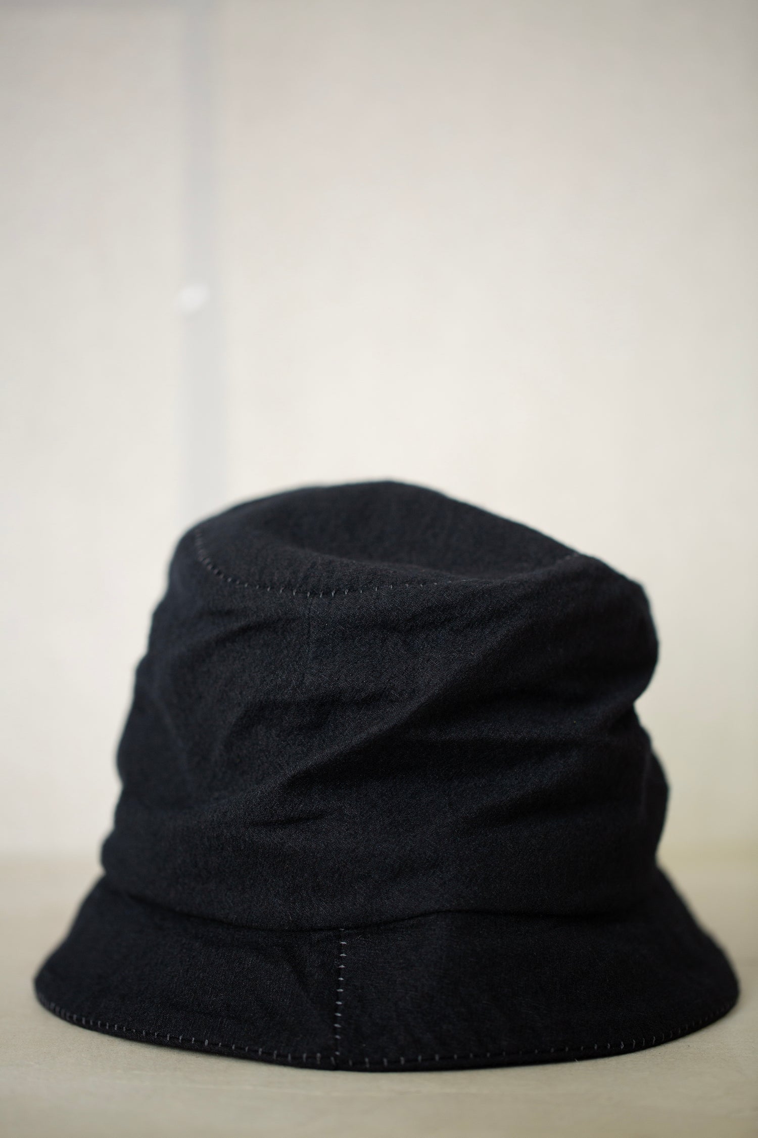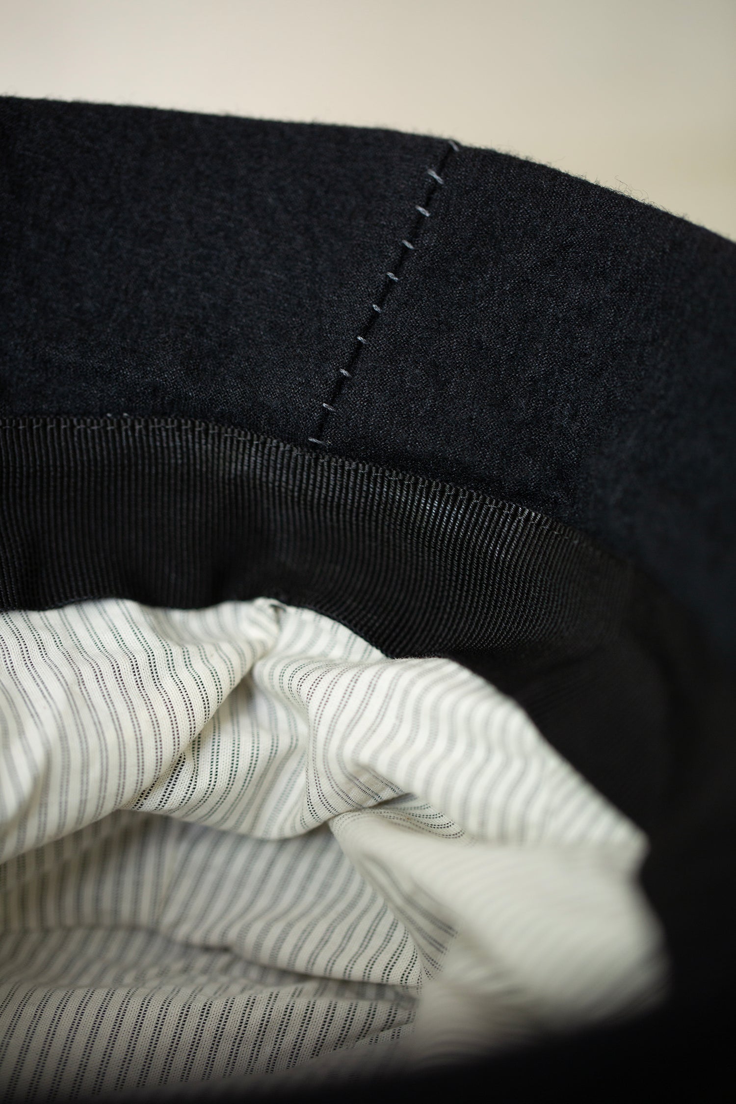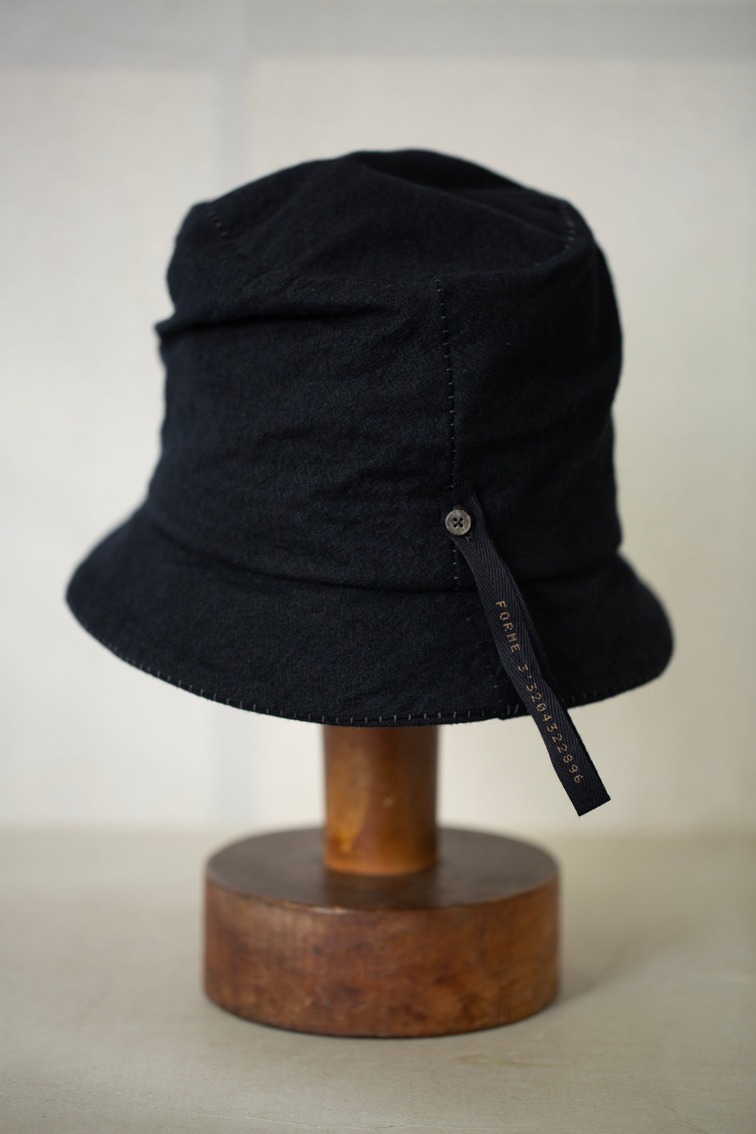 Black skewed derby 3.0 by Forme D'Expression with visible stitches on seams, contrast striped lining and brand staple button on back.