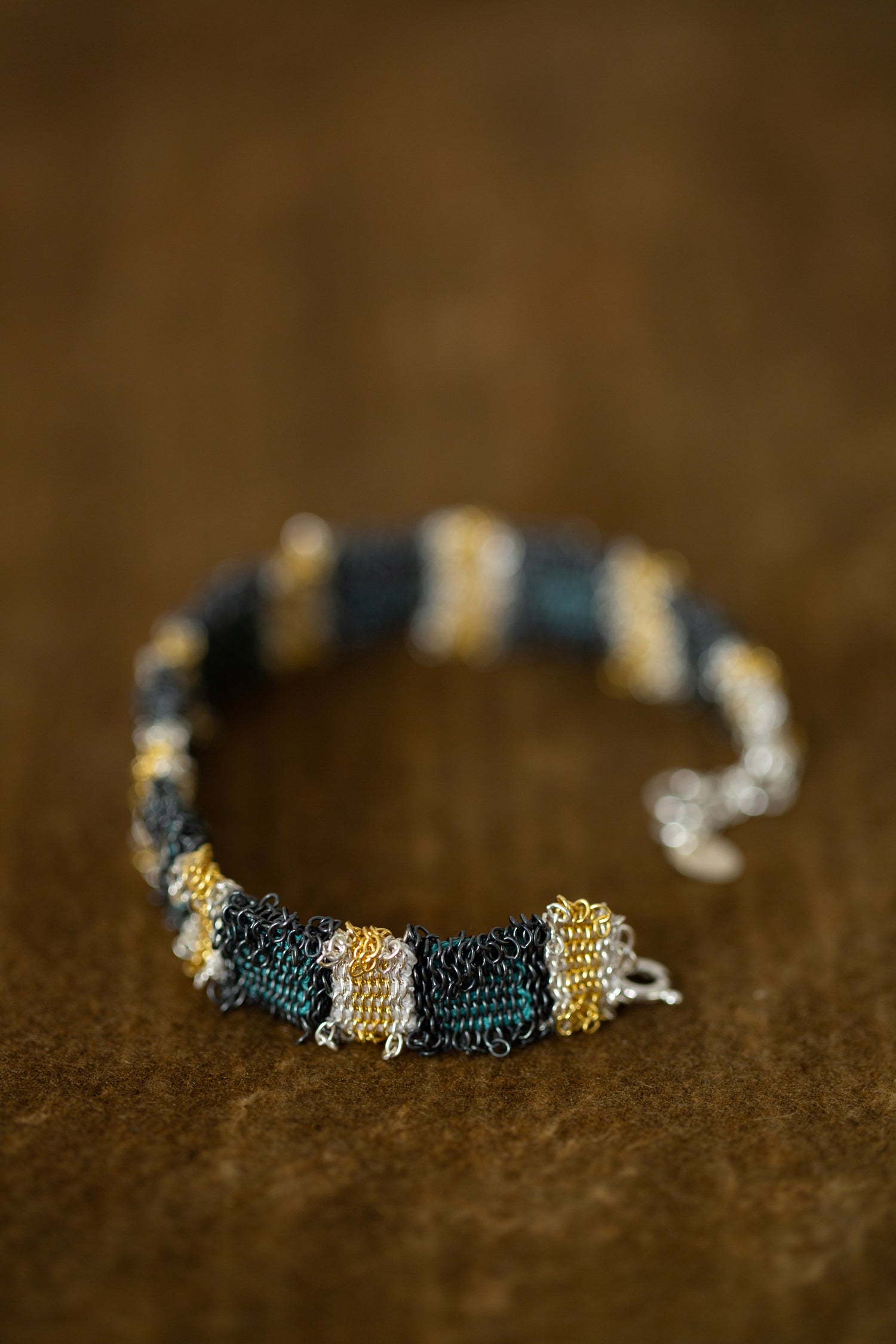 Due to the hand weaving technique, the bracelet gets a very tactile, textile-like appeal and feeling.