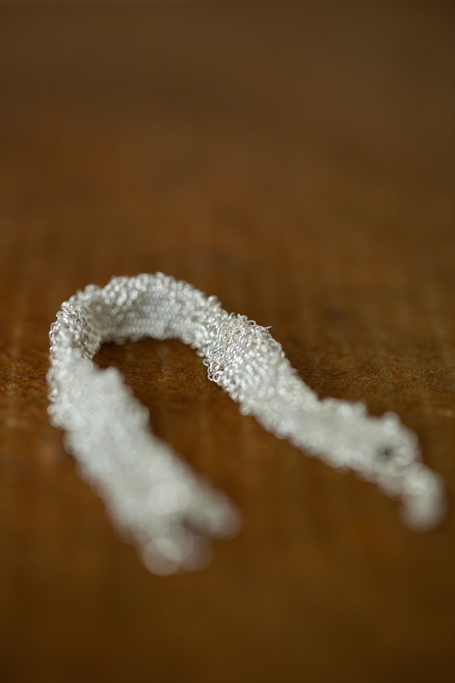 Due to the hand weaving technique, the bracelet gets a very tactile, textile-like appeal and feeling.