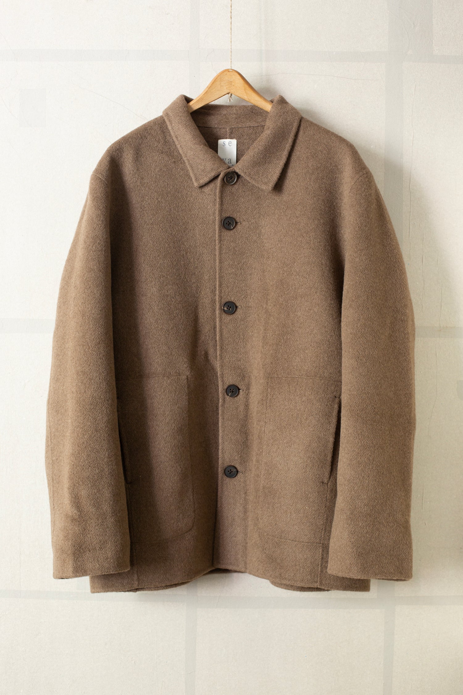 With double-face finishing, two side pockets with stitched detail, side panel pattern for harmonious shape and horn front buttons.