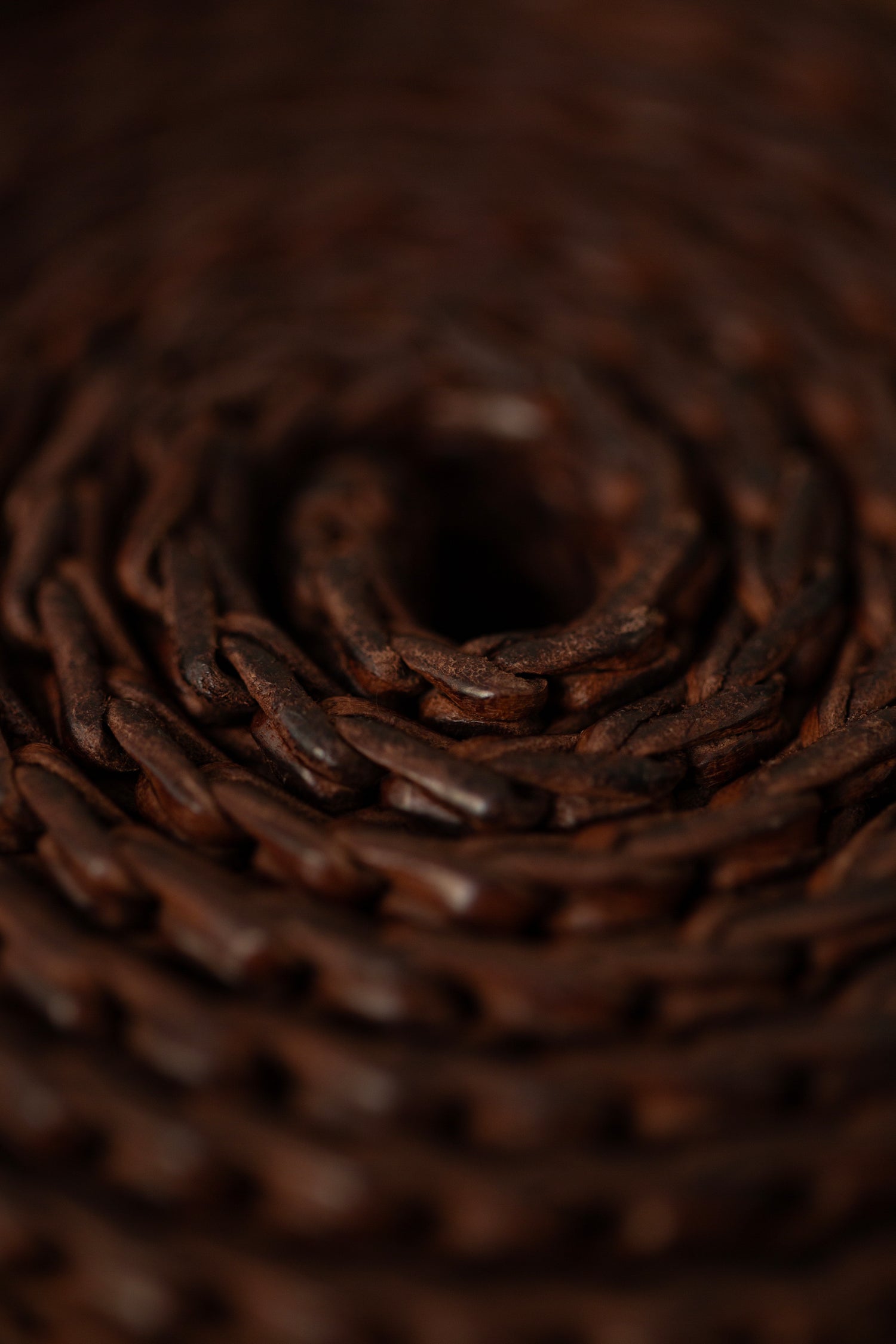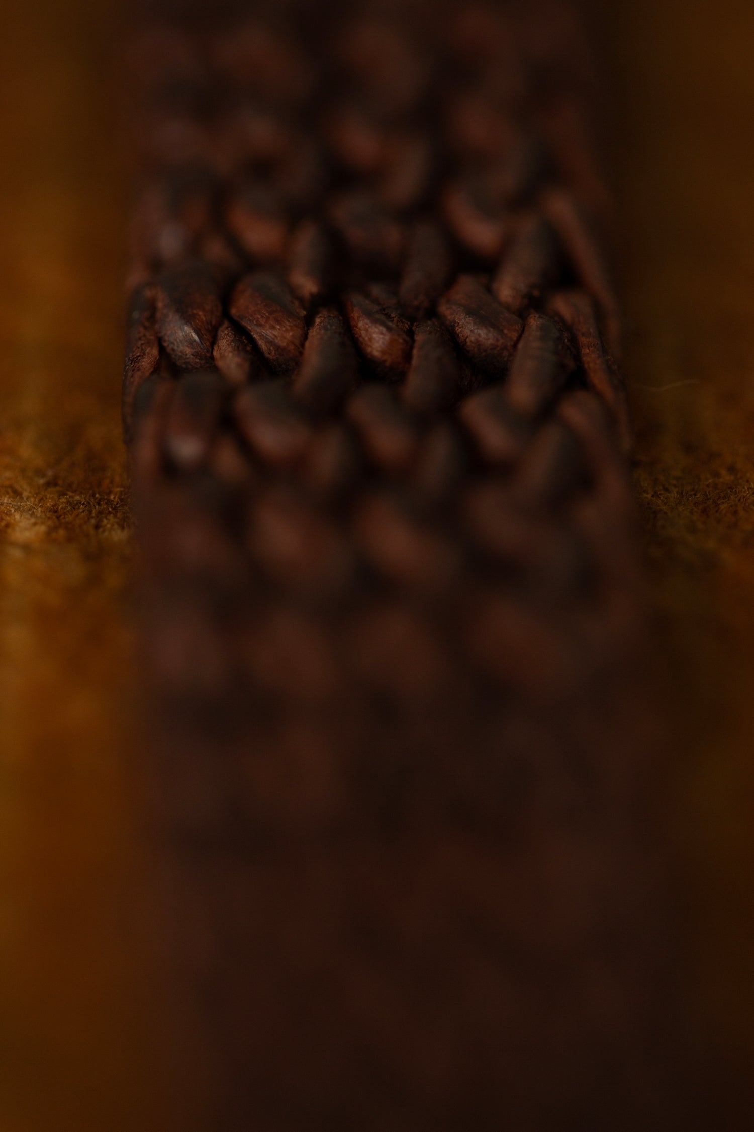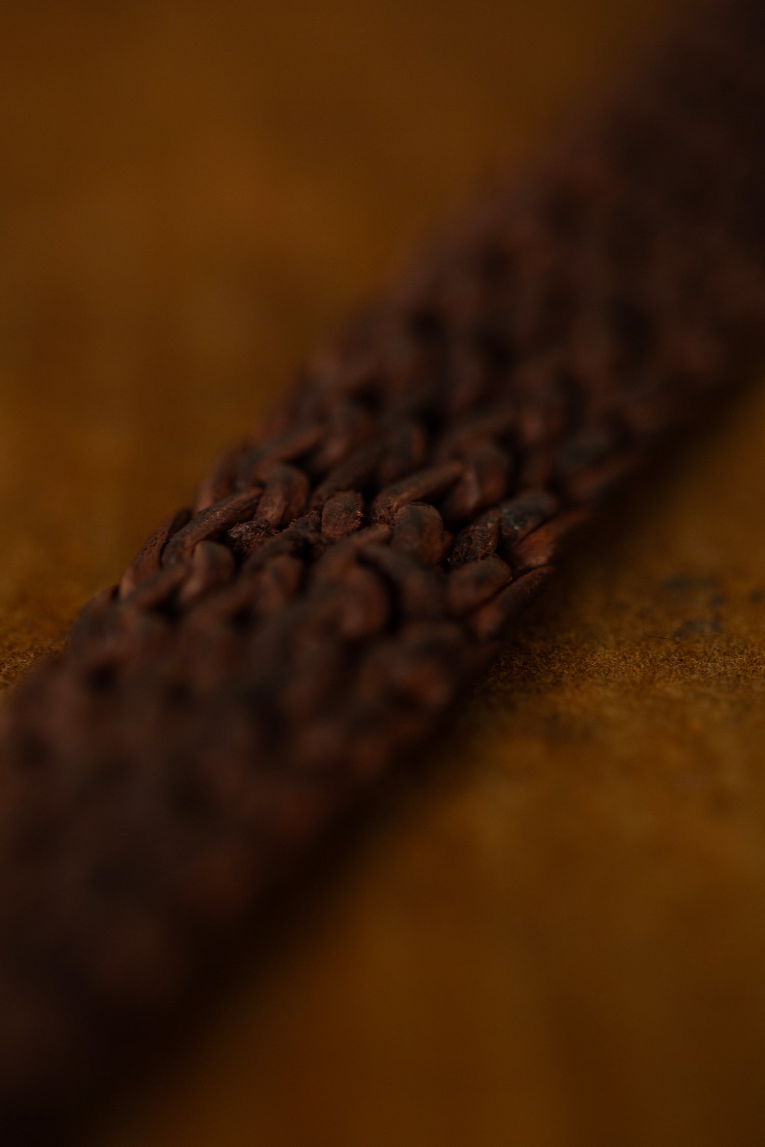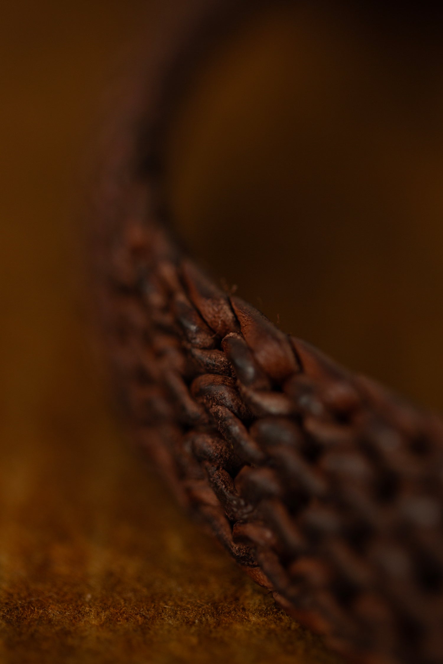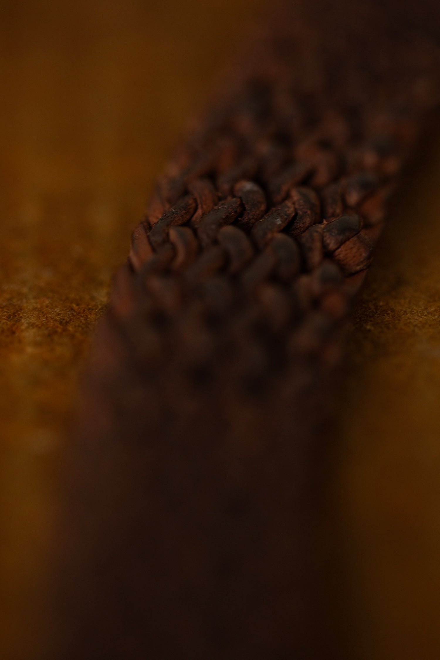 Brown, hand knitted in soft horse leather, belt with brass buckle by Ekim.