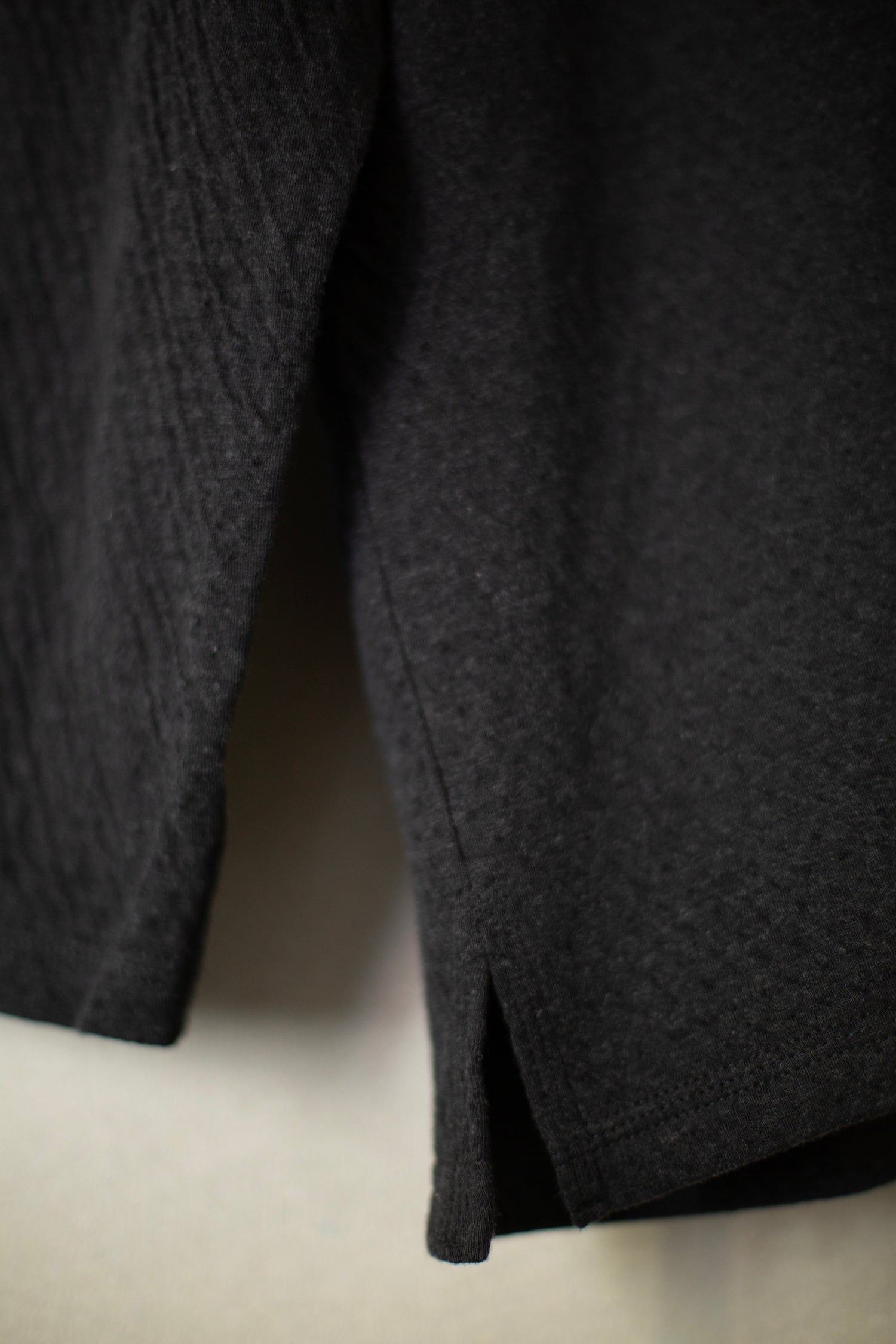 Longsleeve henley neck t-shirt by Jurgen Lehl in charcoal structured & soft double cotton jersey with small split on the sides and straight hem.