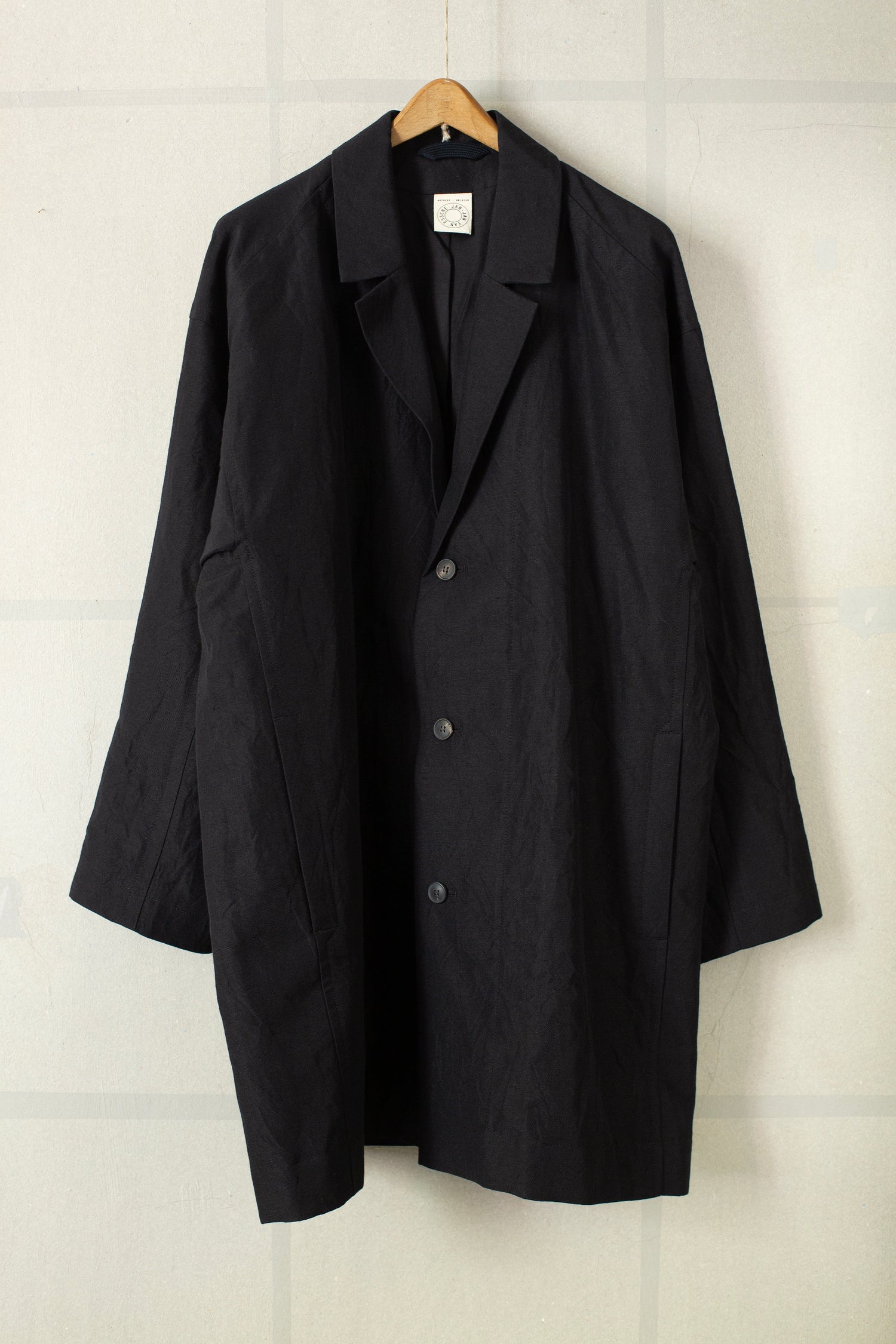 COAT#33 - LINEN WOOL TWILL PITCH BLACK