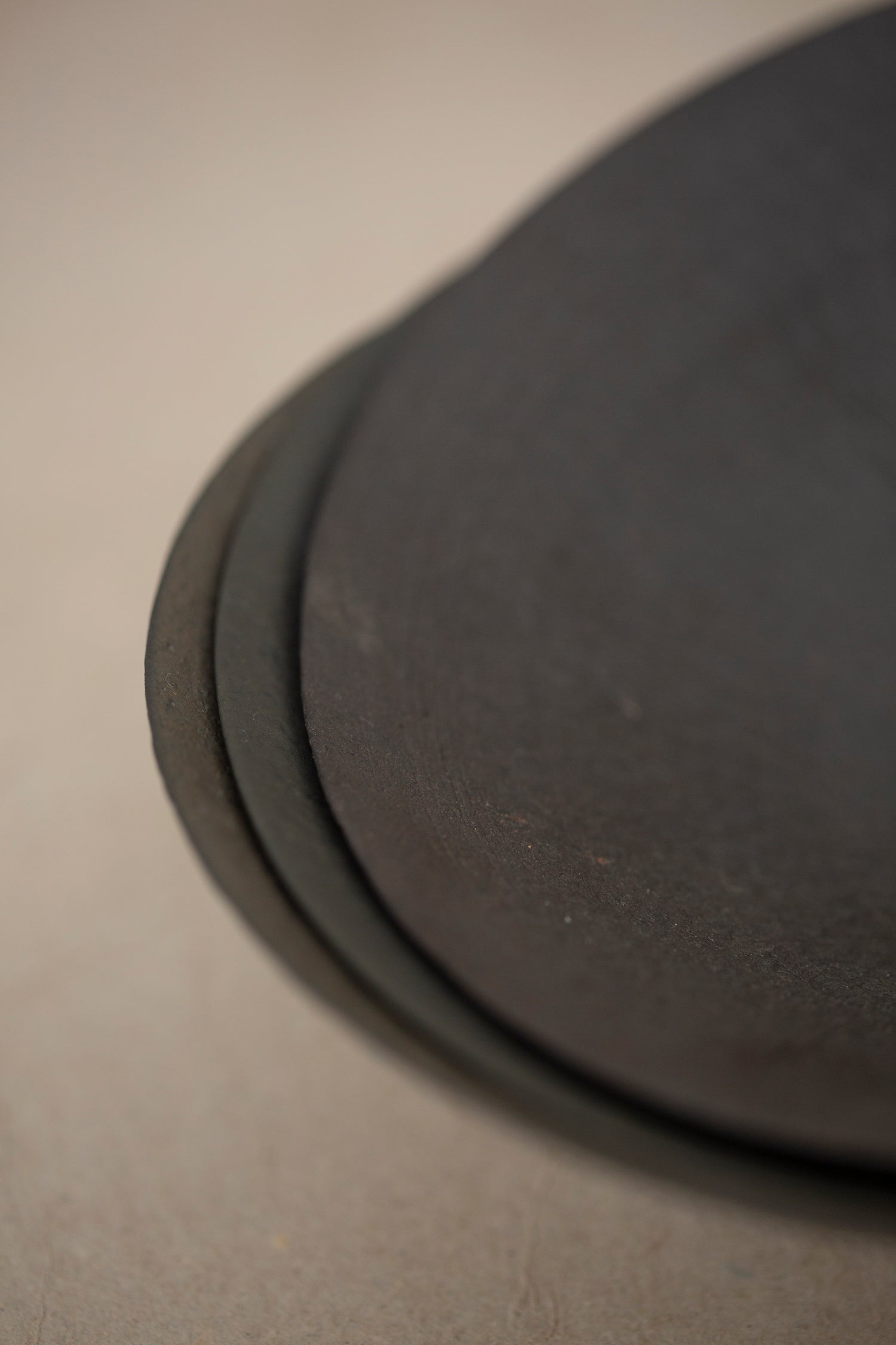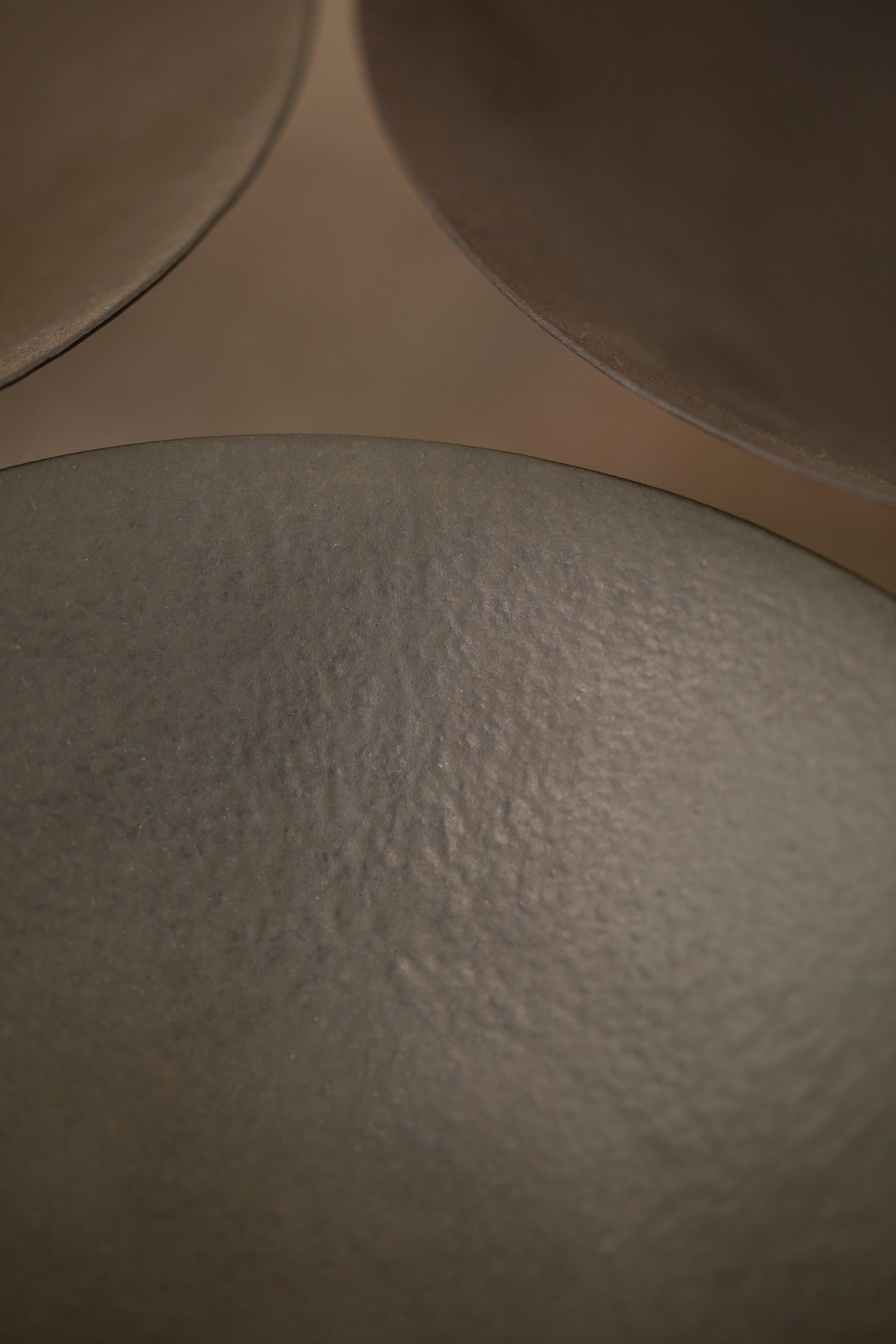 An elegant and light weight ceramic bowl by Ciprian Tocu hand turned in black sandstone with structures resembling hammering work. His work represents a beautiful equilibrium between weight, material and shape with the expression of fragile beauty.