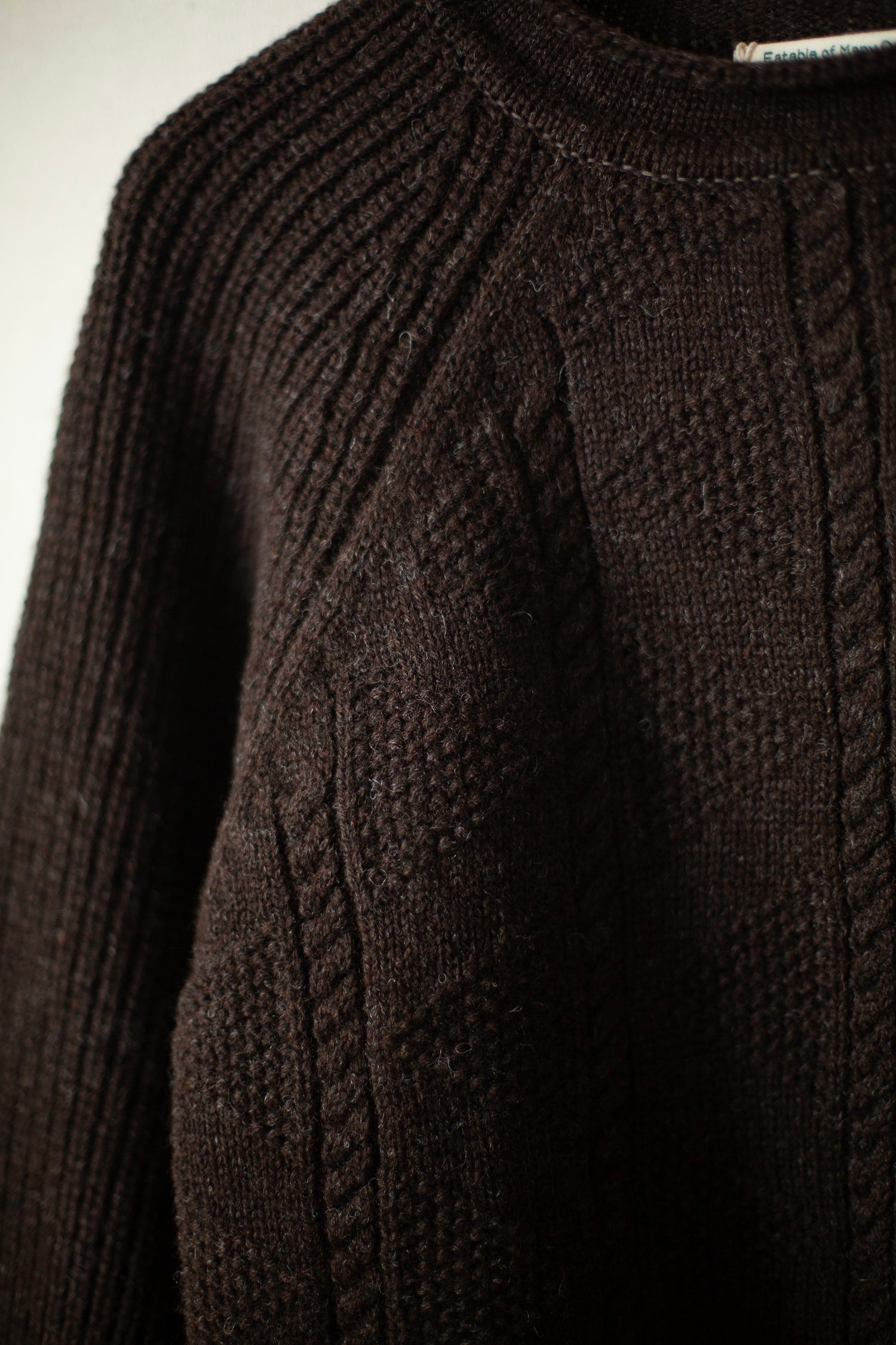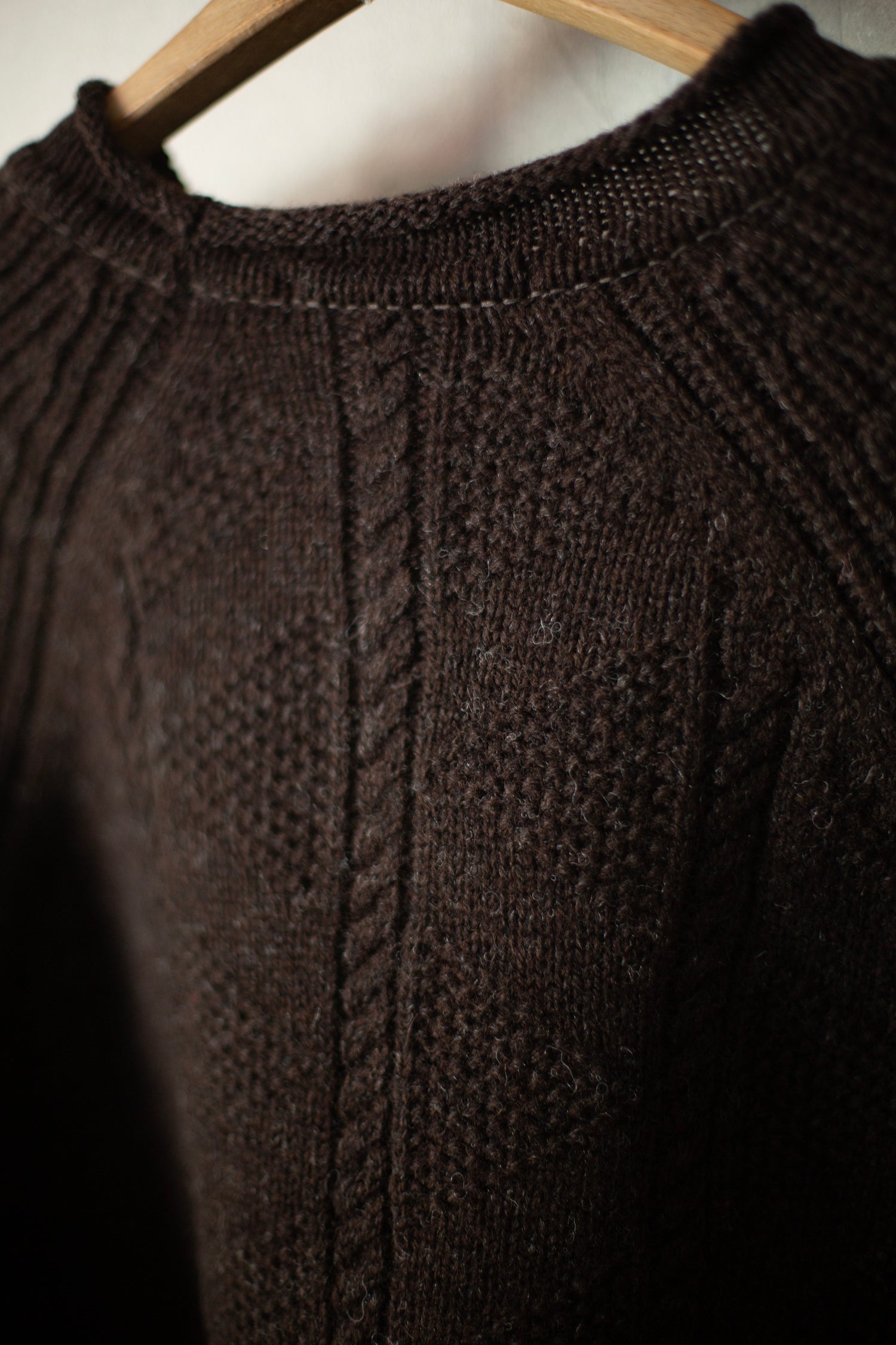 DARK BROWN SHETLAND WOOL GANSEY KNIT SWEATER