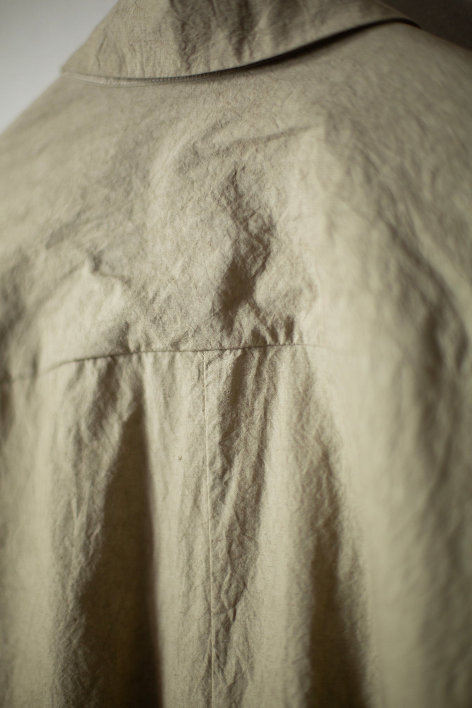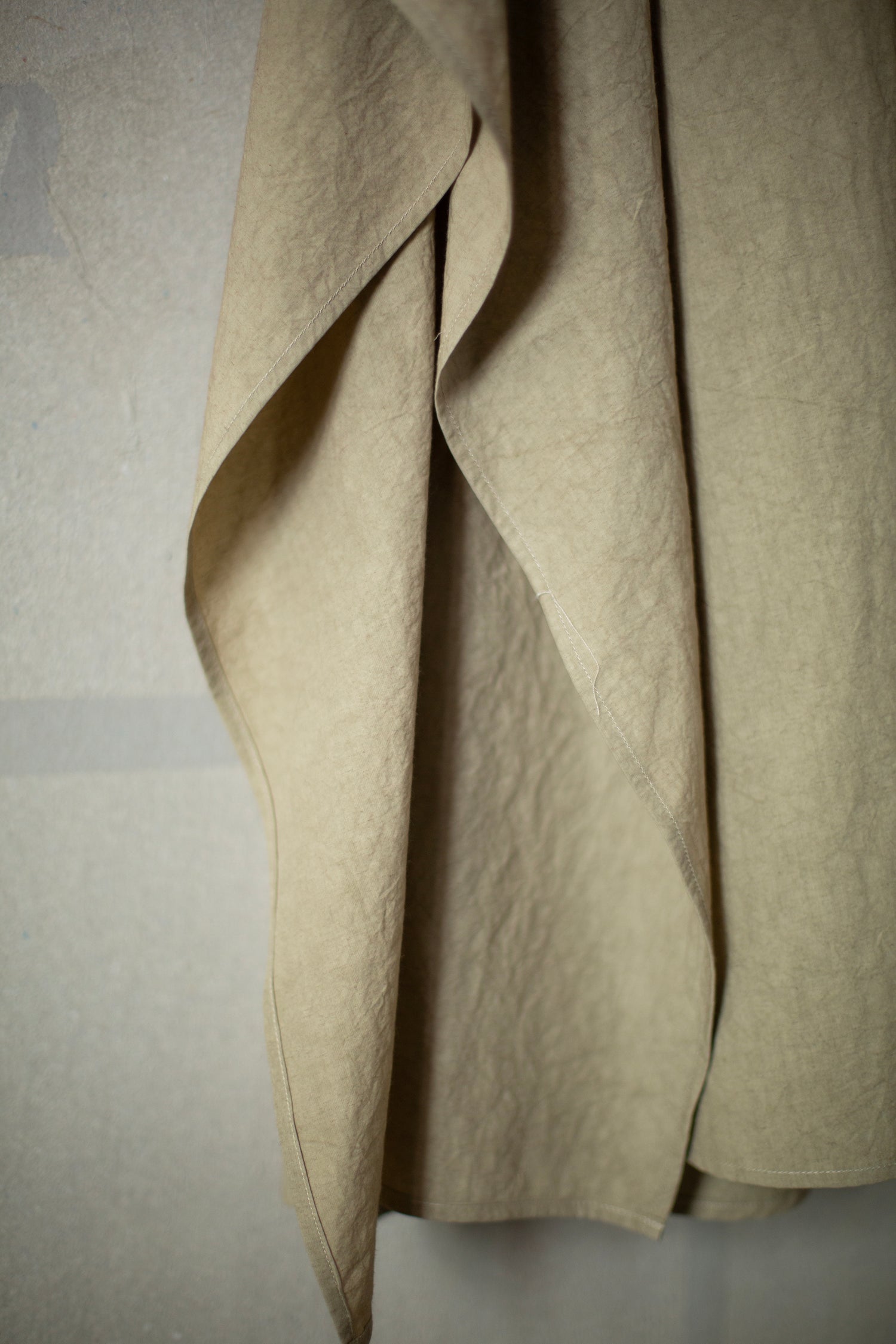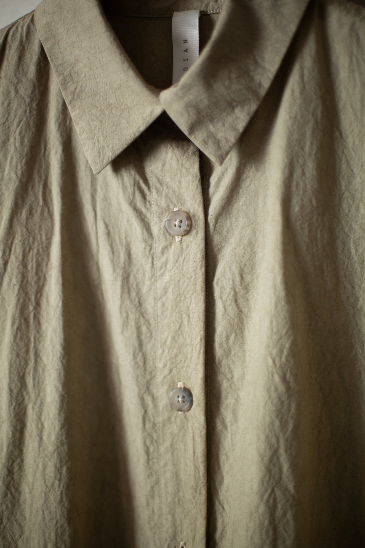 With buttons, shirt collar, short sleeves, drapes with buttonhole and split on the sides.