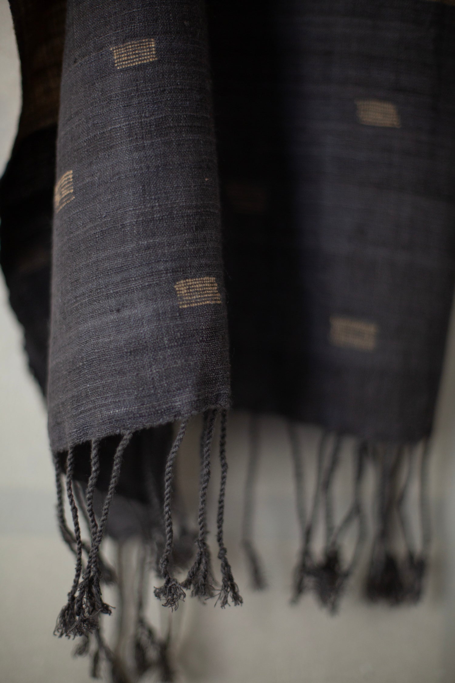 This scarf has been fully handcrafetd by hand, from the spinning to the dyeing, weaving and finishing.
