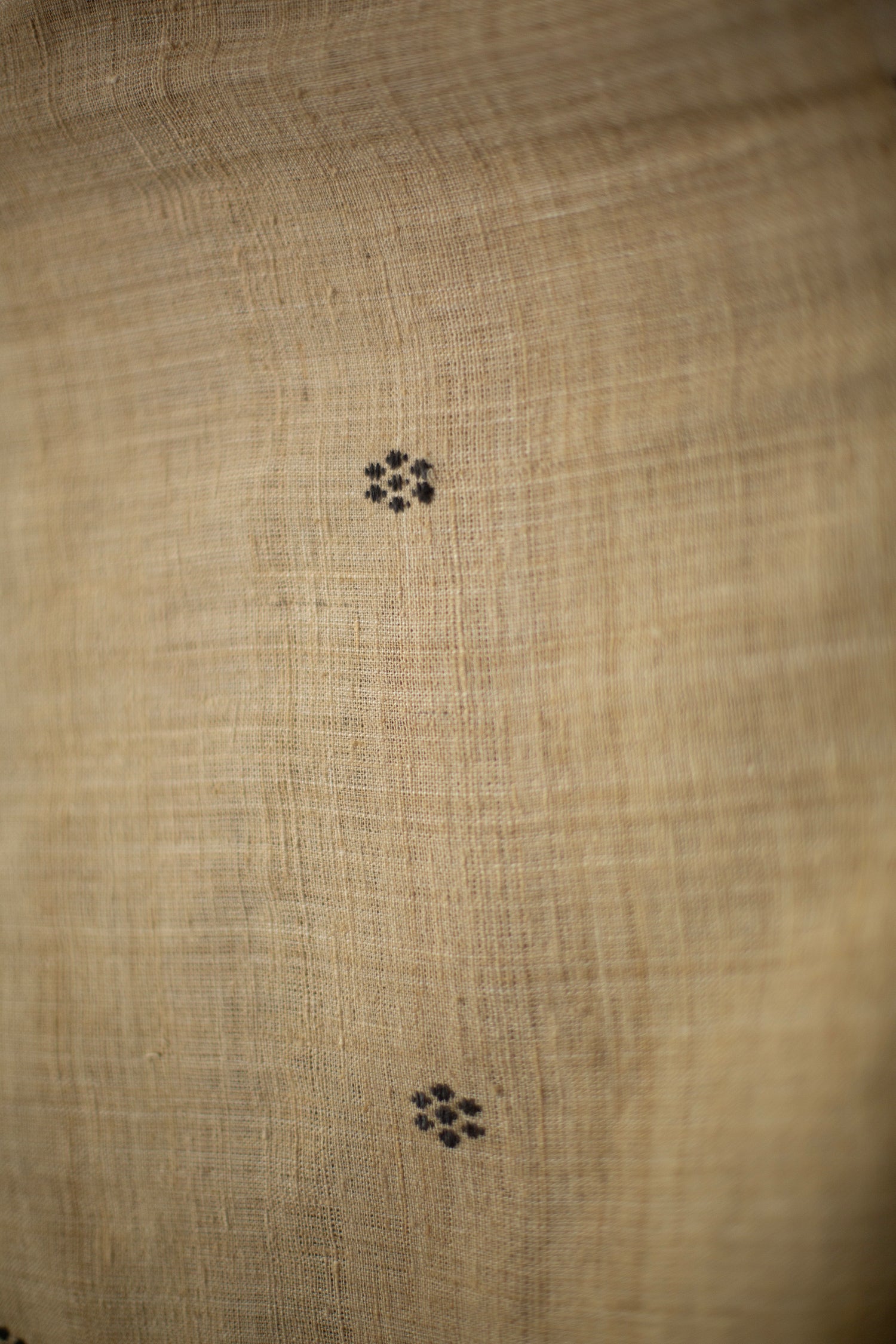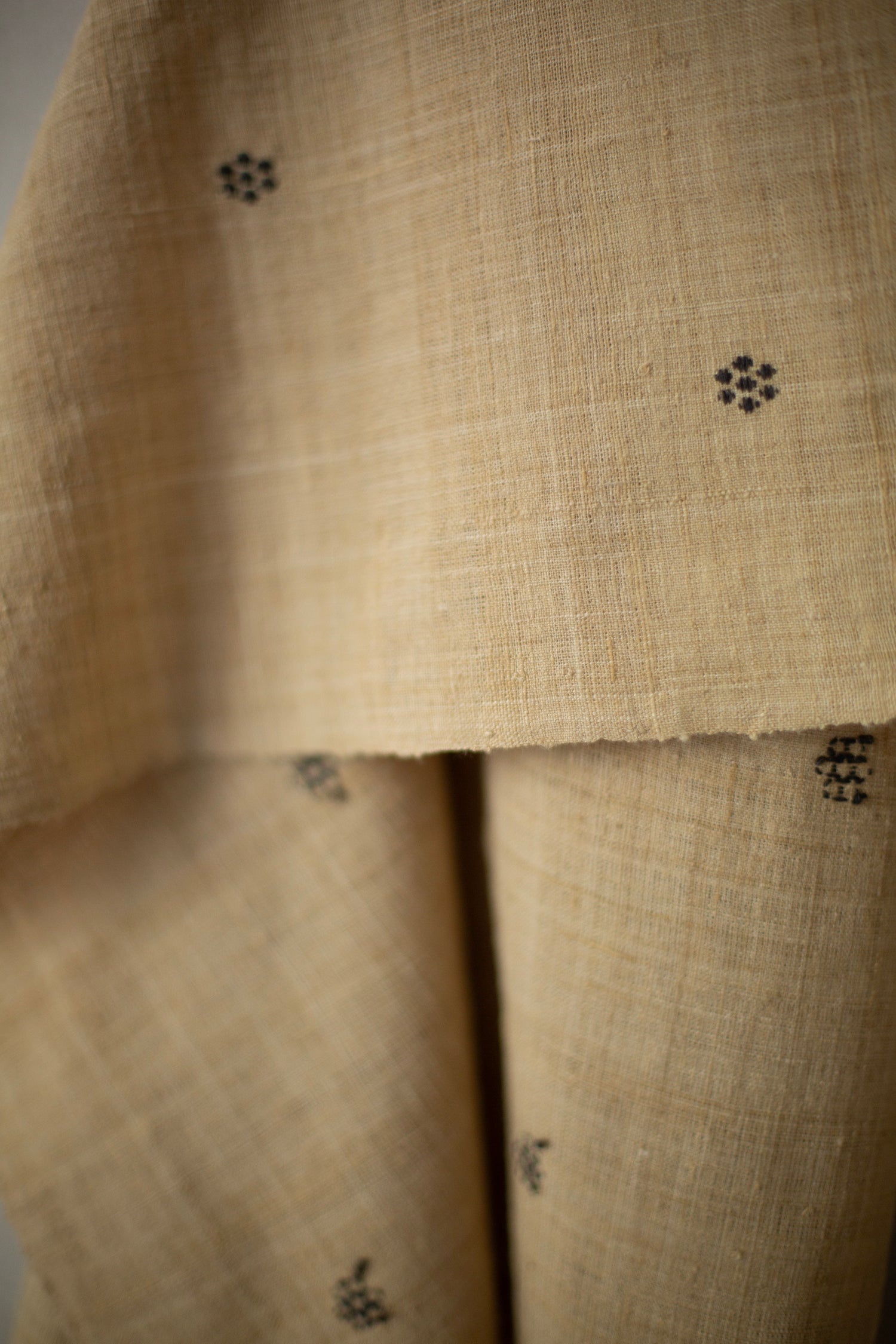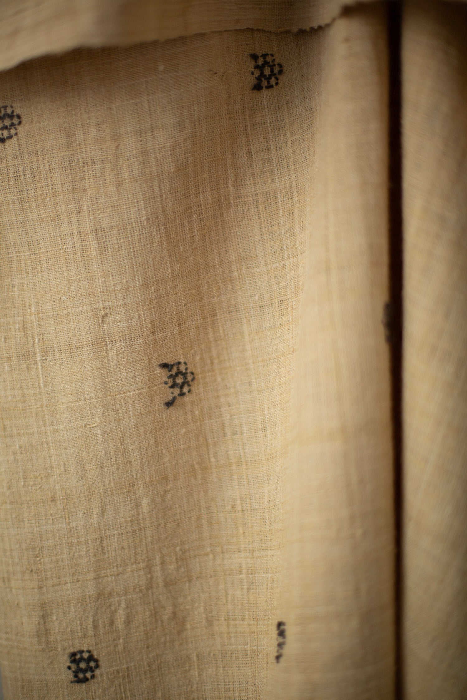 Crisp Eri silk scarf with tangaliya weave details and fringes, naturally dyed with bamboo shoots for the light tones and jaggery for the dark dots
