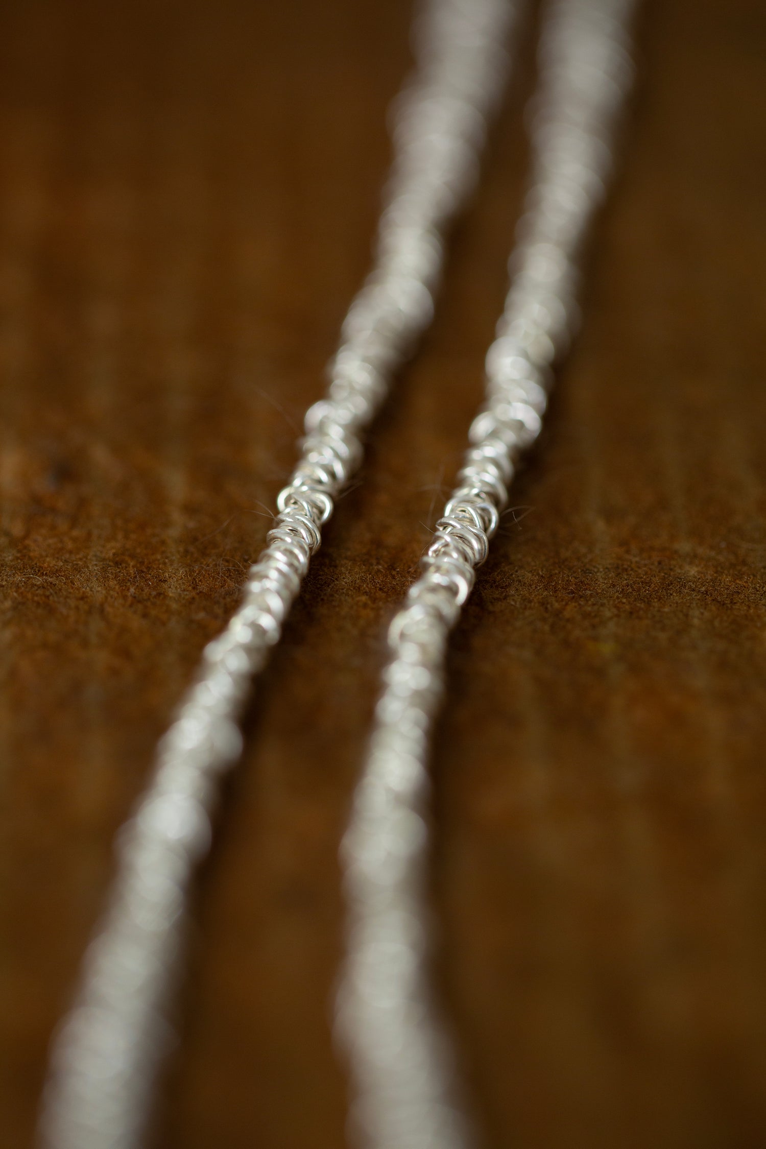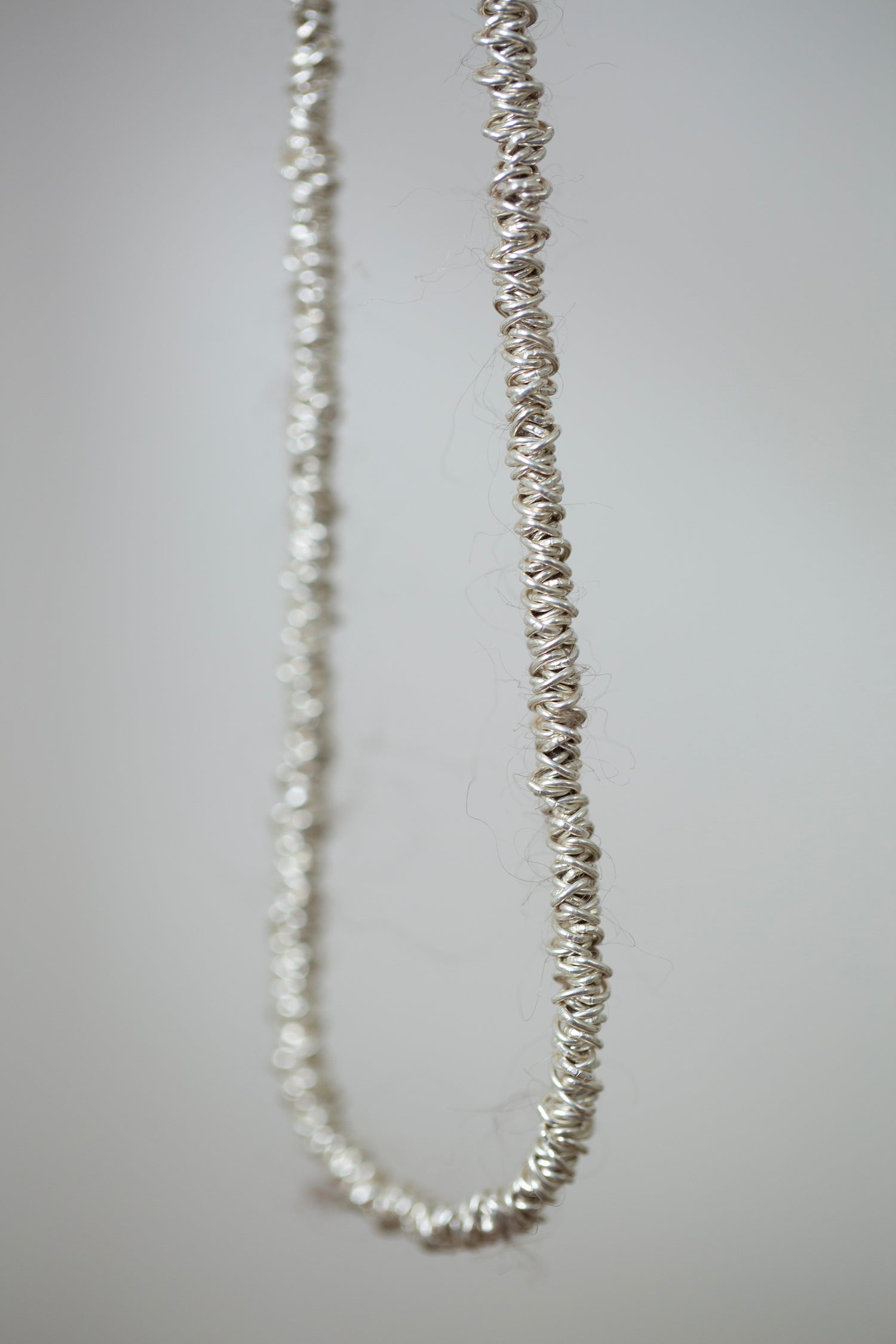 Beautiful gathered necklace in 925 sterling silver chain with mohair yarn inside by '17' by Stephanie Schneider.