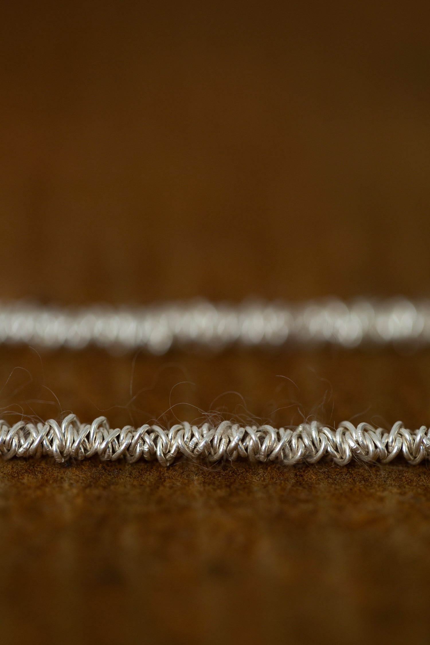Due to the hand weaving technique, the bracelet gets a very tactile, textile-like appeal and feeling.