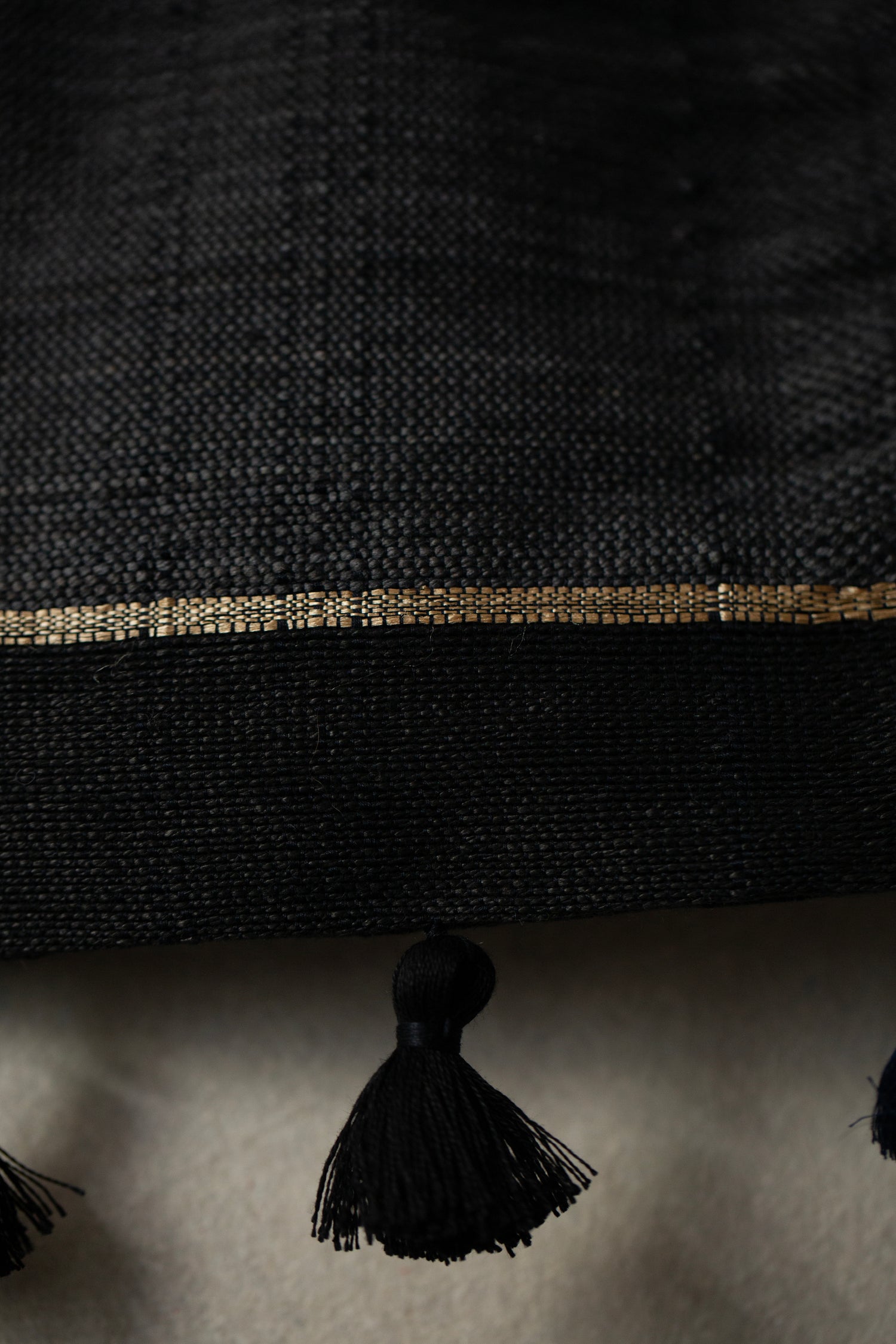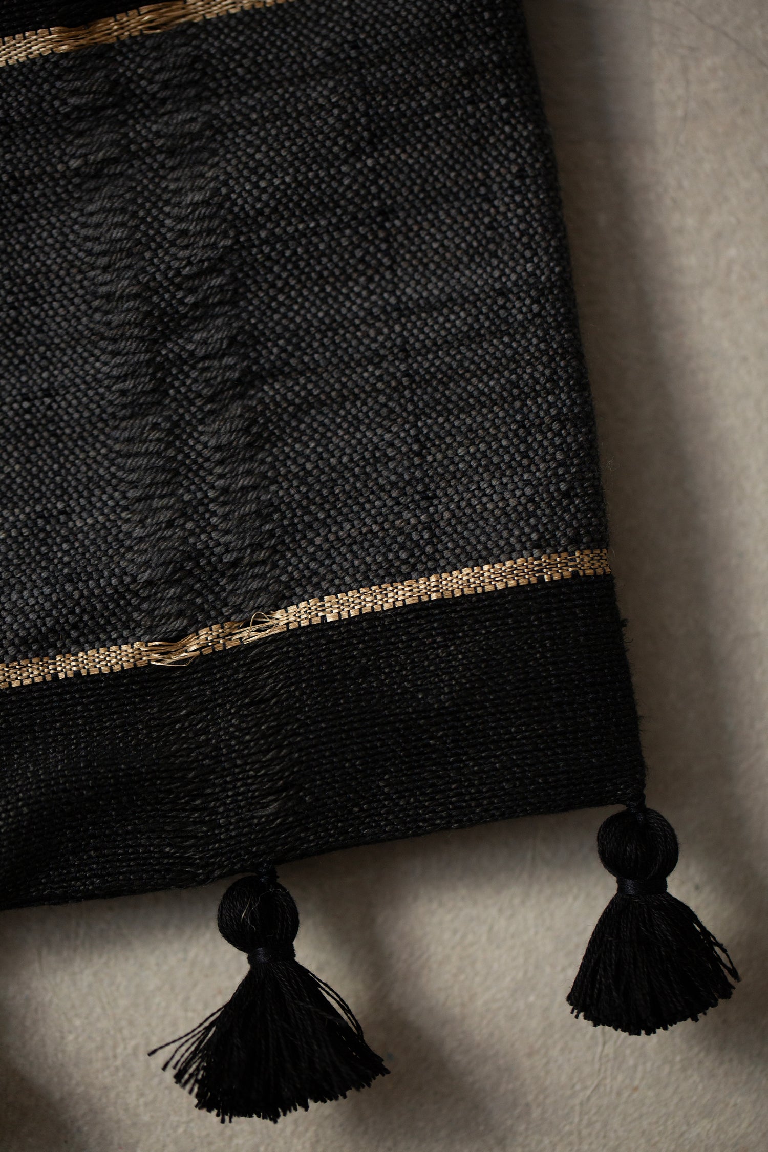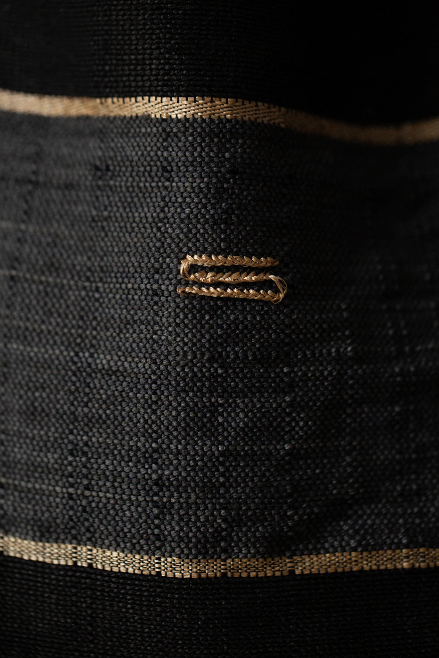 In linen, cotton and merino wool, woven in various structures, with details in muga silk from Assam.