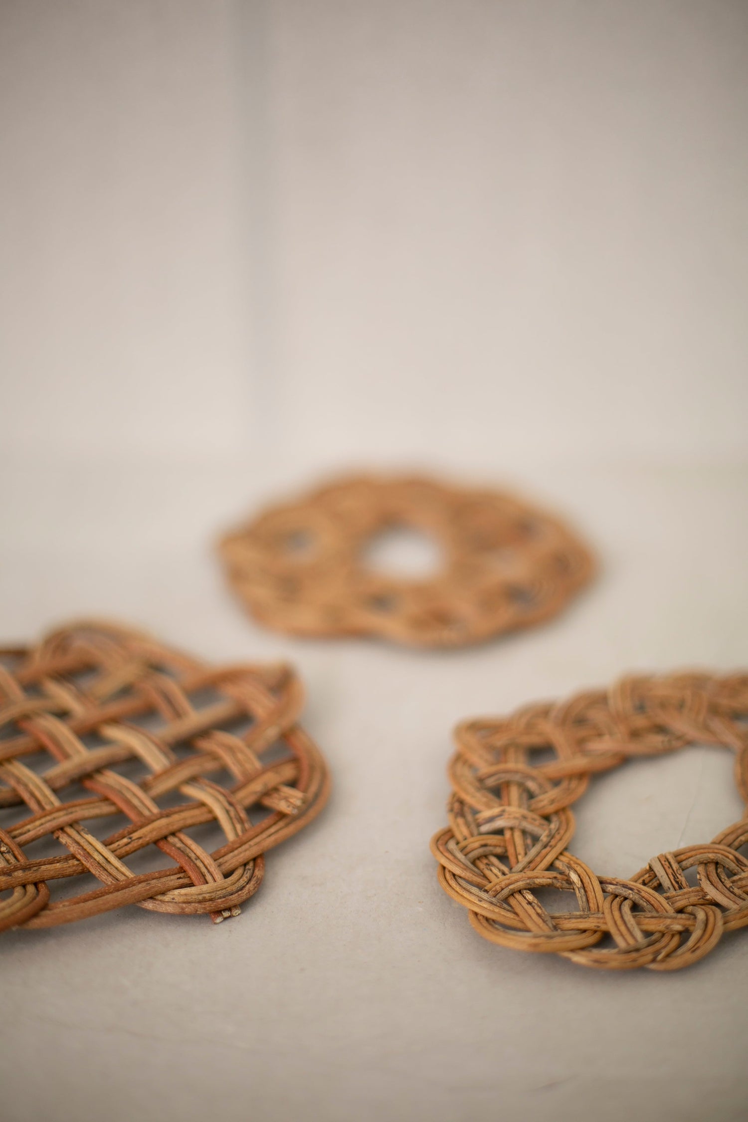 Hand crafted trivets in Chocolate vine (Akebia vine) by Moe Watanabe.