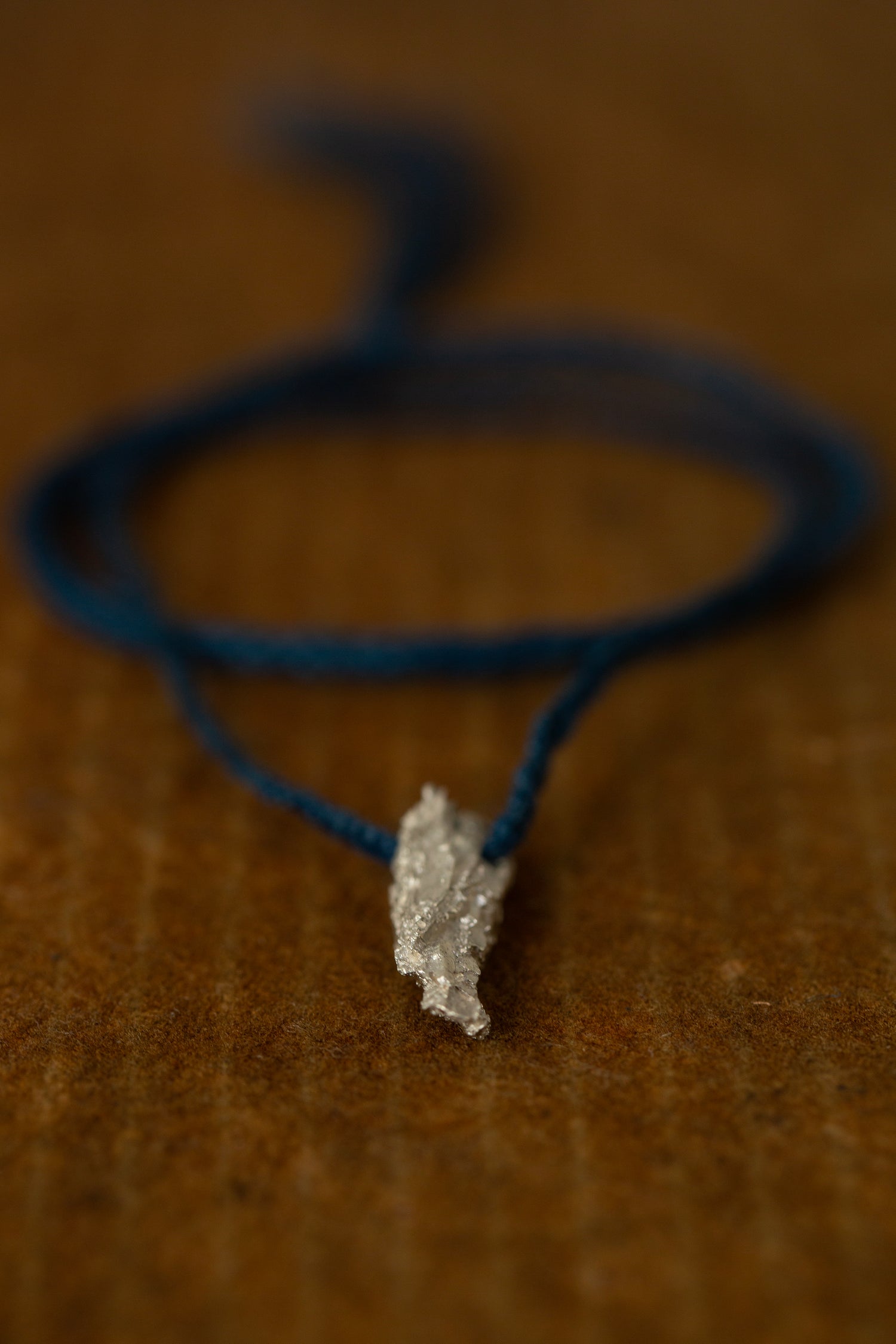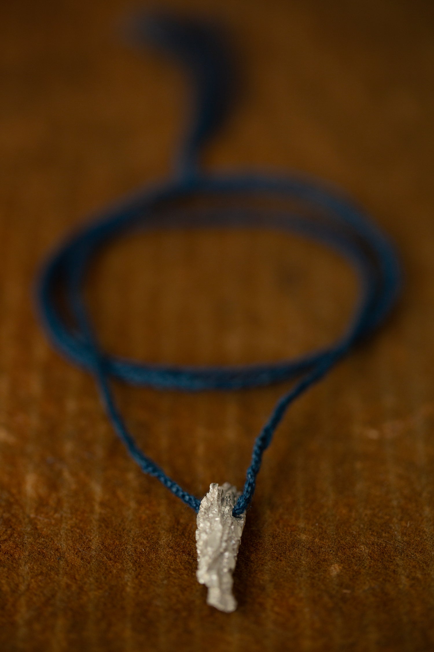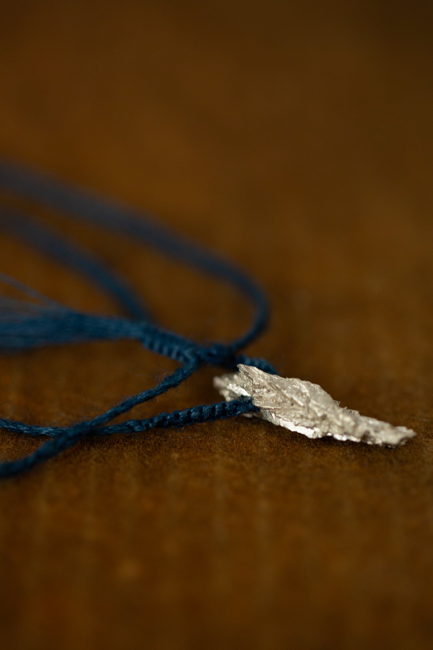 Hand made 925 sterling silver fragment necklace with aizome (indigo) hand yarn dyed linen cord.