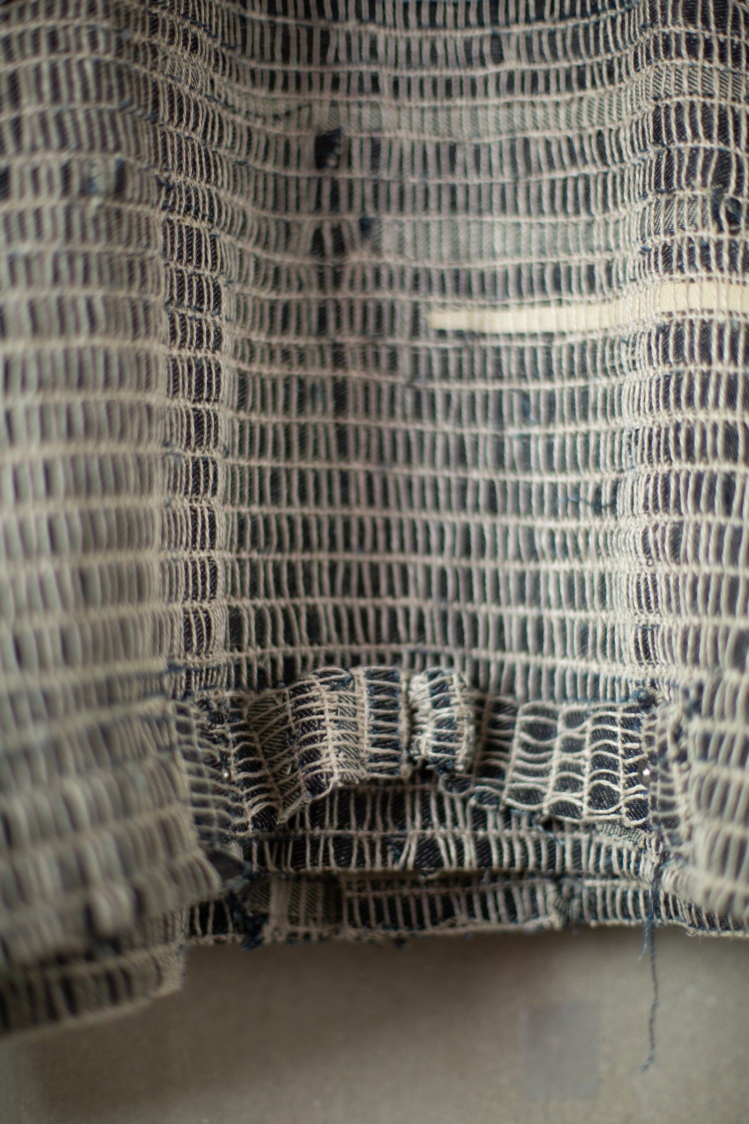 Hand made and hand woven from mixed denim and cotton fabric remnants from the Taiga Takahashi house.