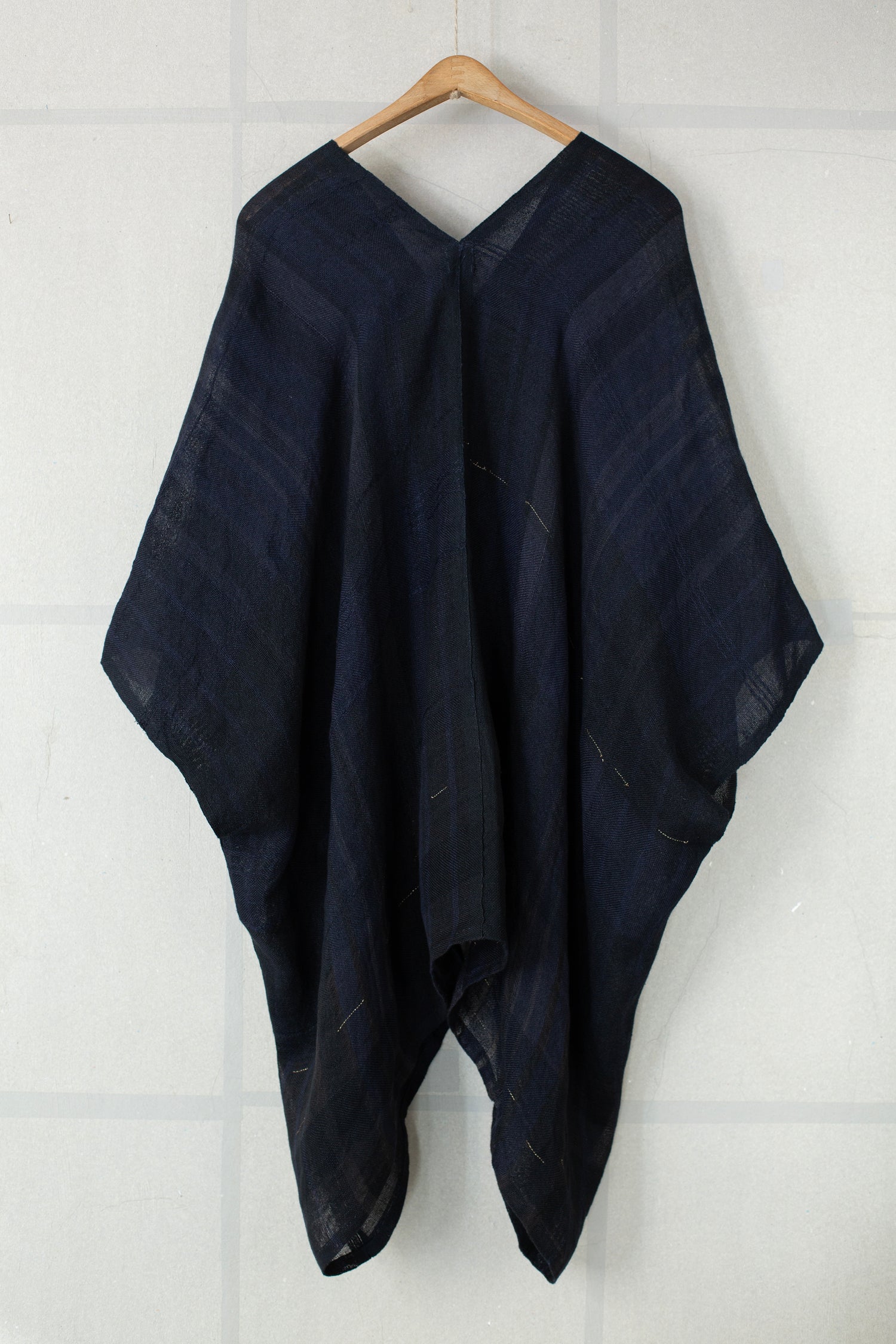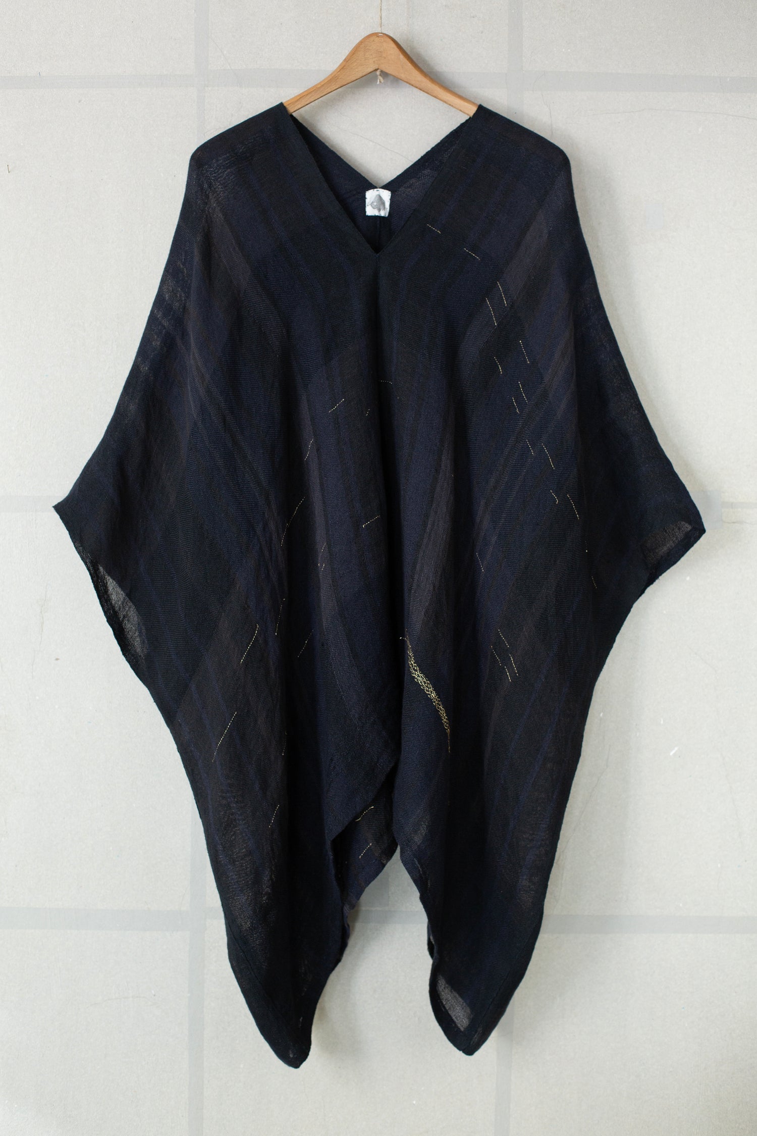 Semi sheer hand woven and hand stitched bubu tunic top by weaving artist Lamine Diouf.