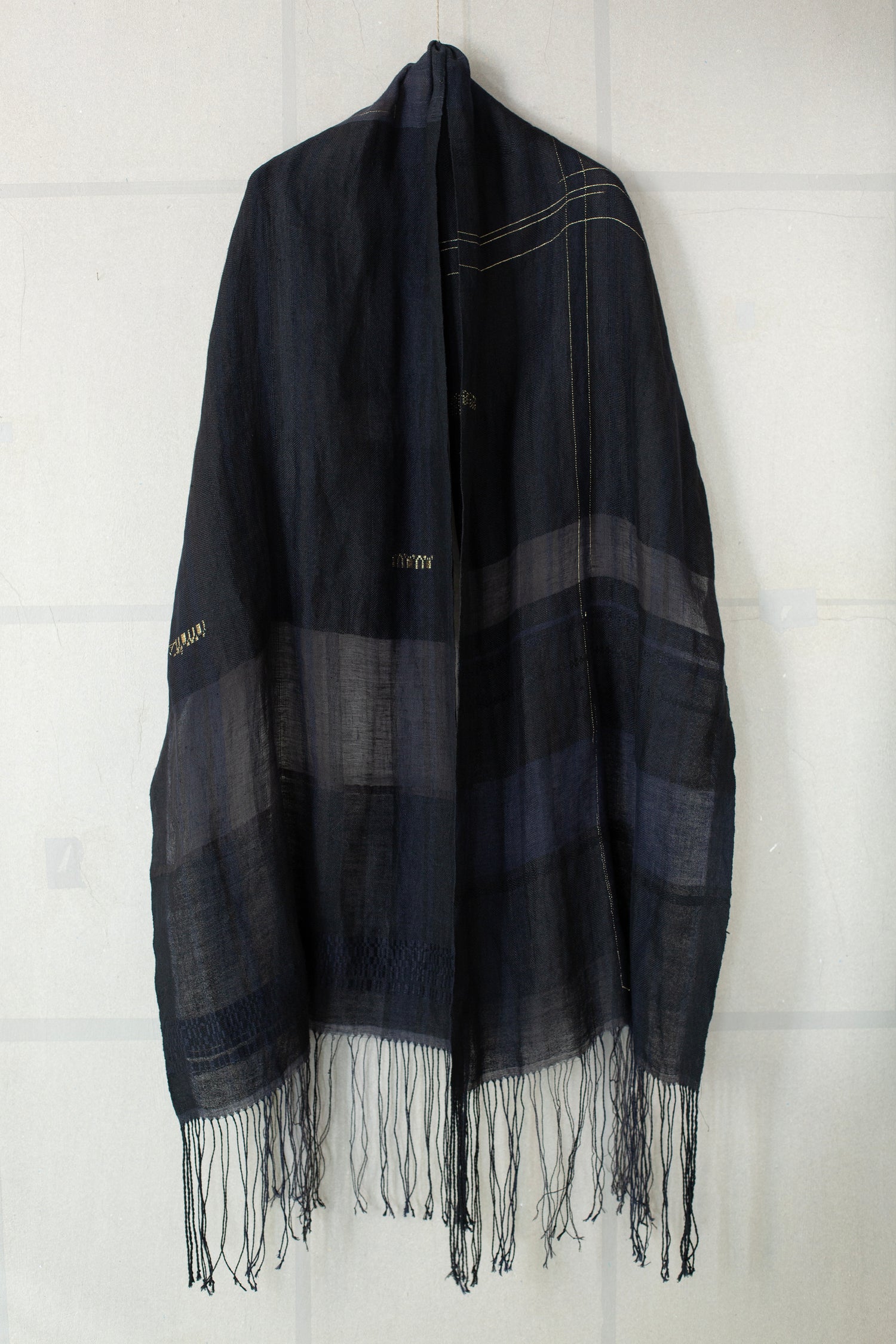 Semi sheer hand woven stole by weaving artist Lamine Diouf.
