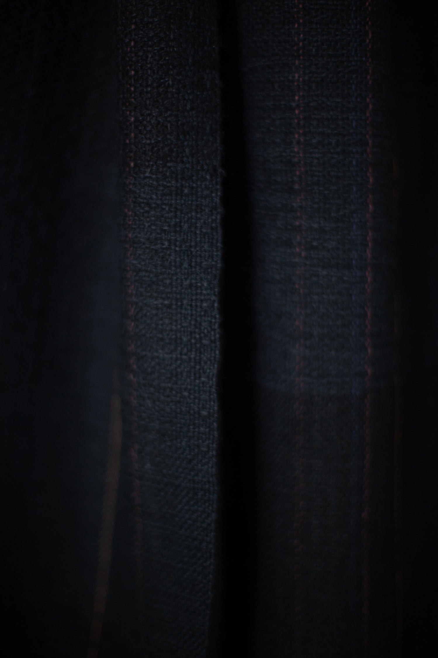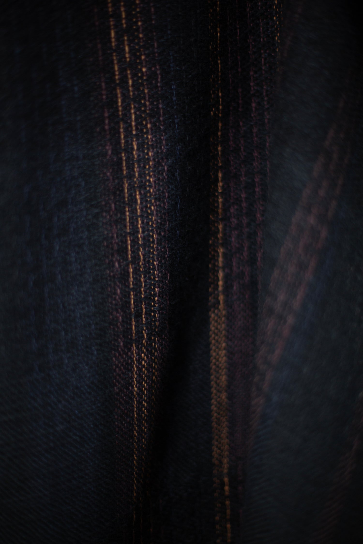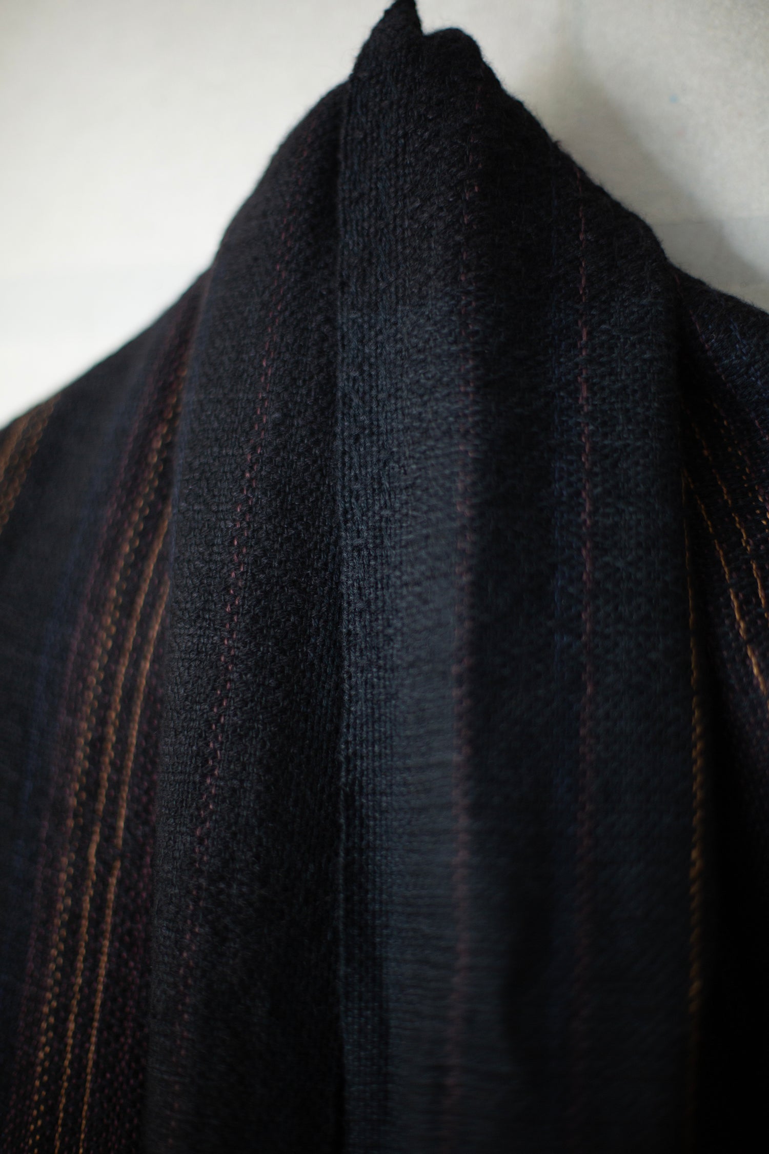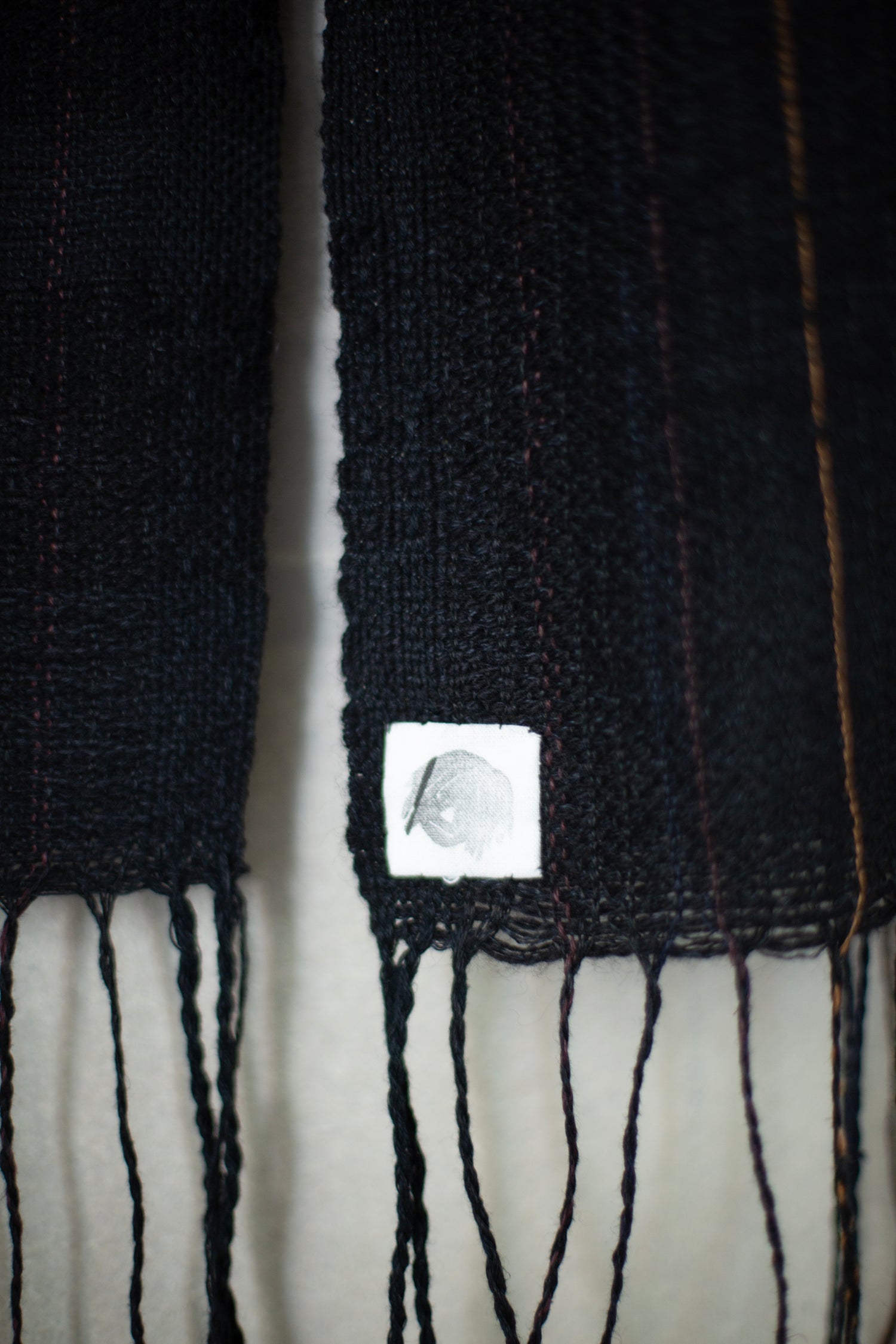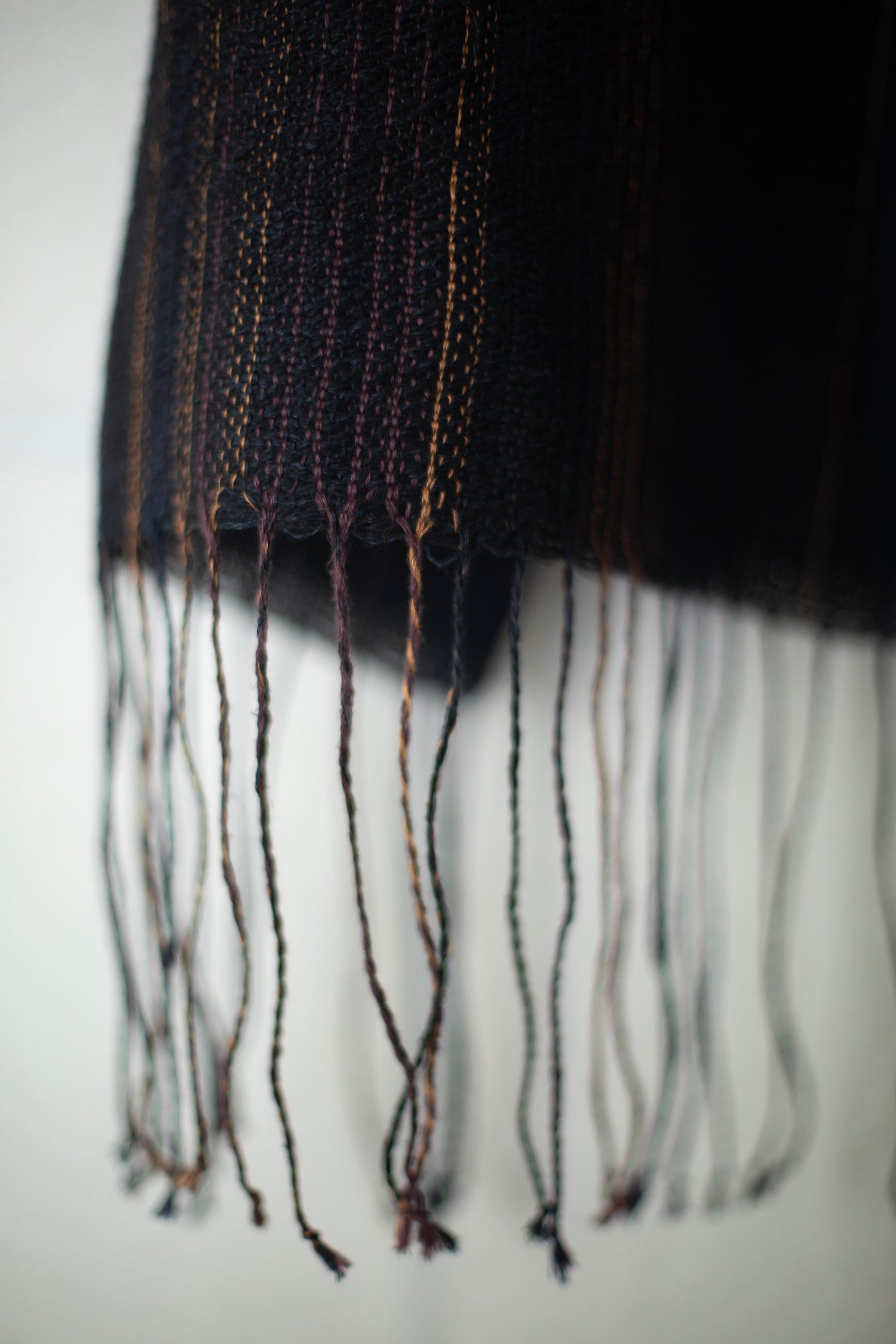 Hand woven scarf by weaving artist Lamine Diouf in Yak wool, linen and hemp yarns.
