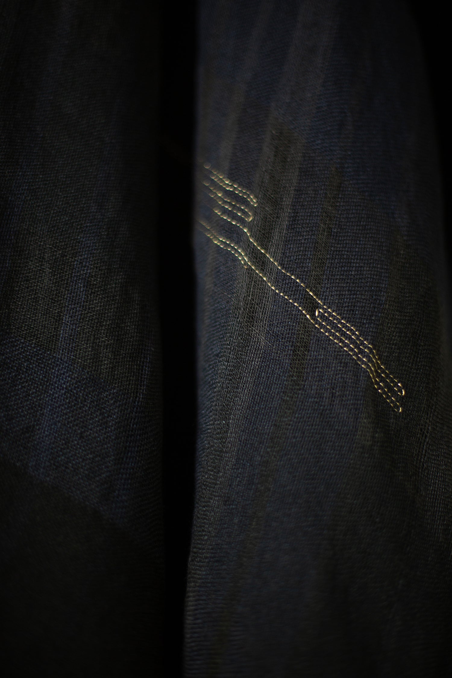 A combination of various types of yarns, weave, colors and density across structures, parts in golden metal yarn.