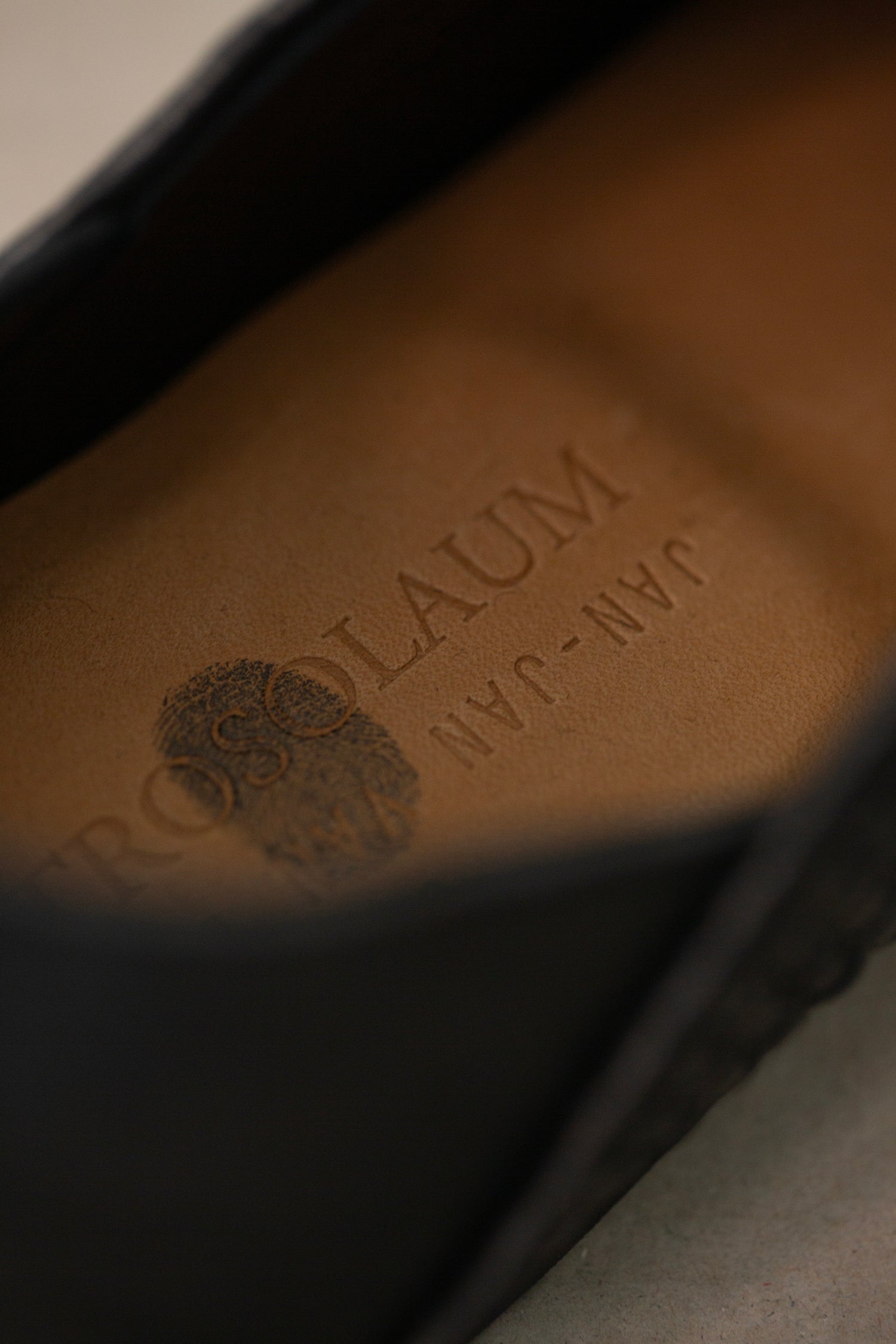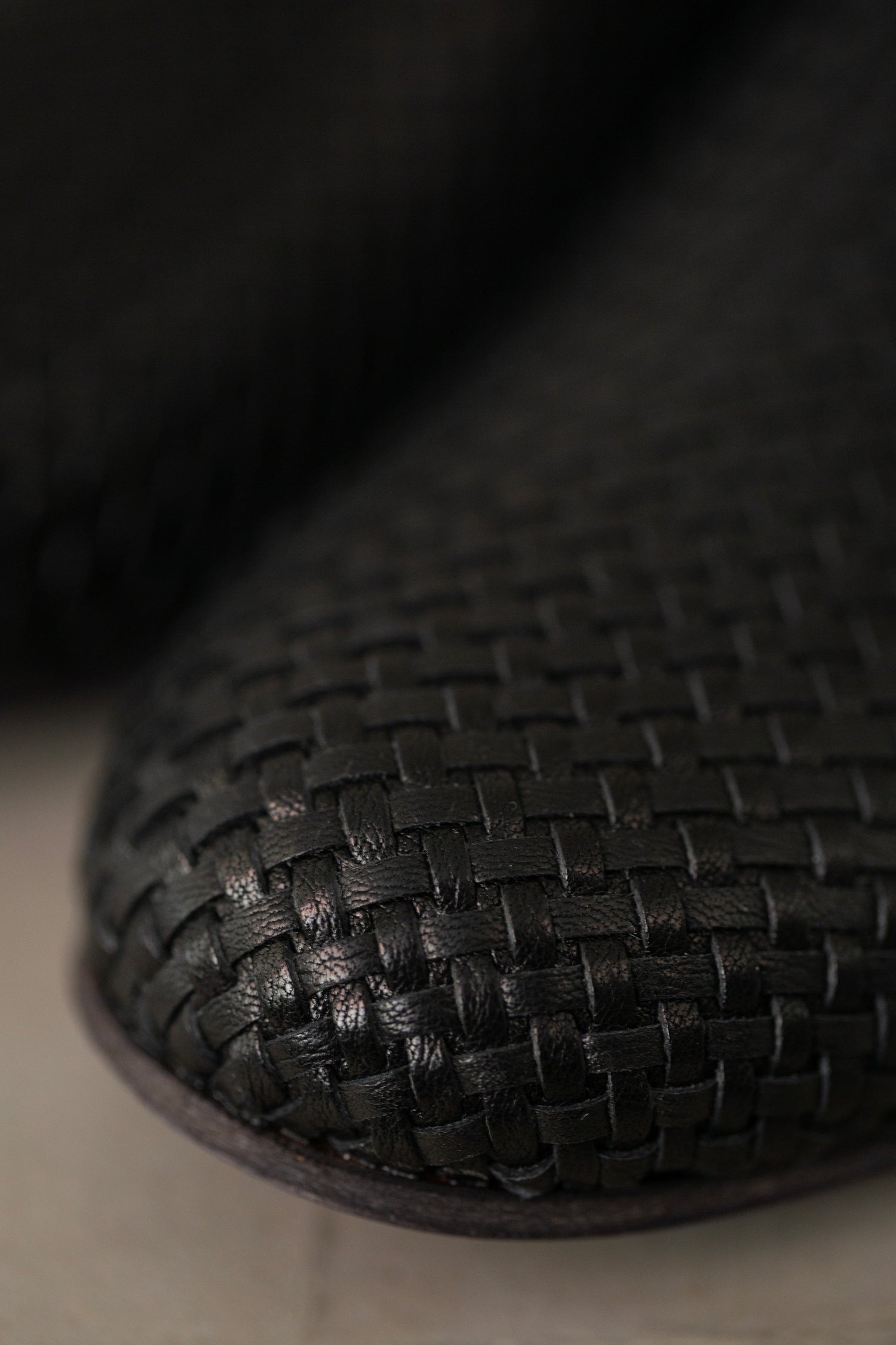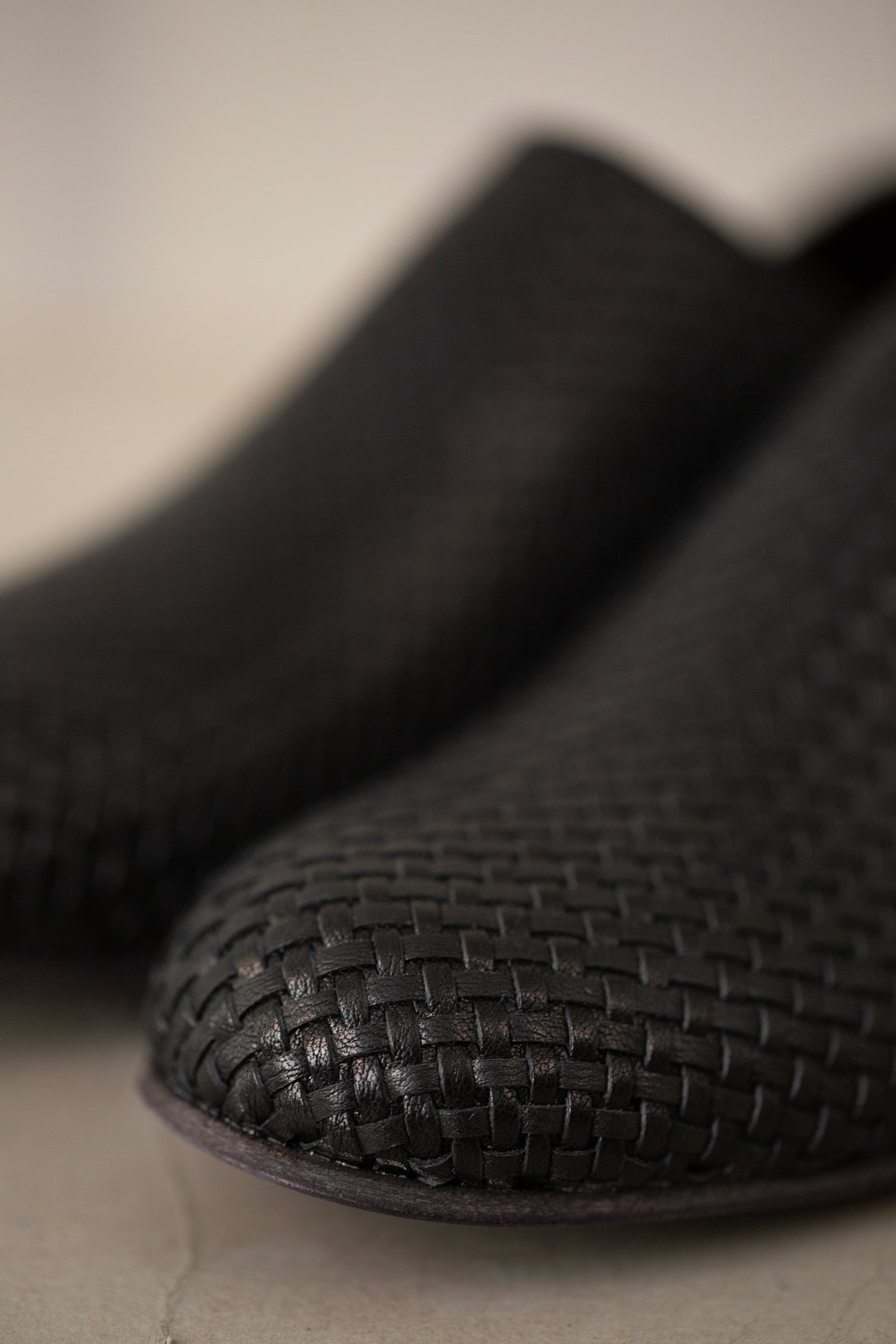Woven cowhide slip on babouche with the possibility to push the heel flat, handmade by Petrosolaum in collaboration with Jan-Jan Van Essche for the COLLECTION#15 - KHAYAL (SS25).