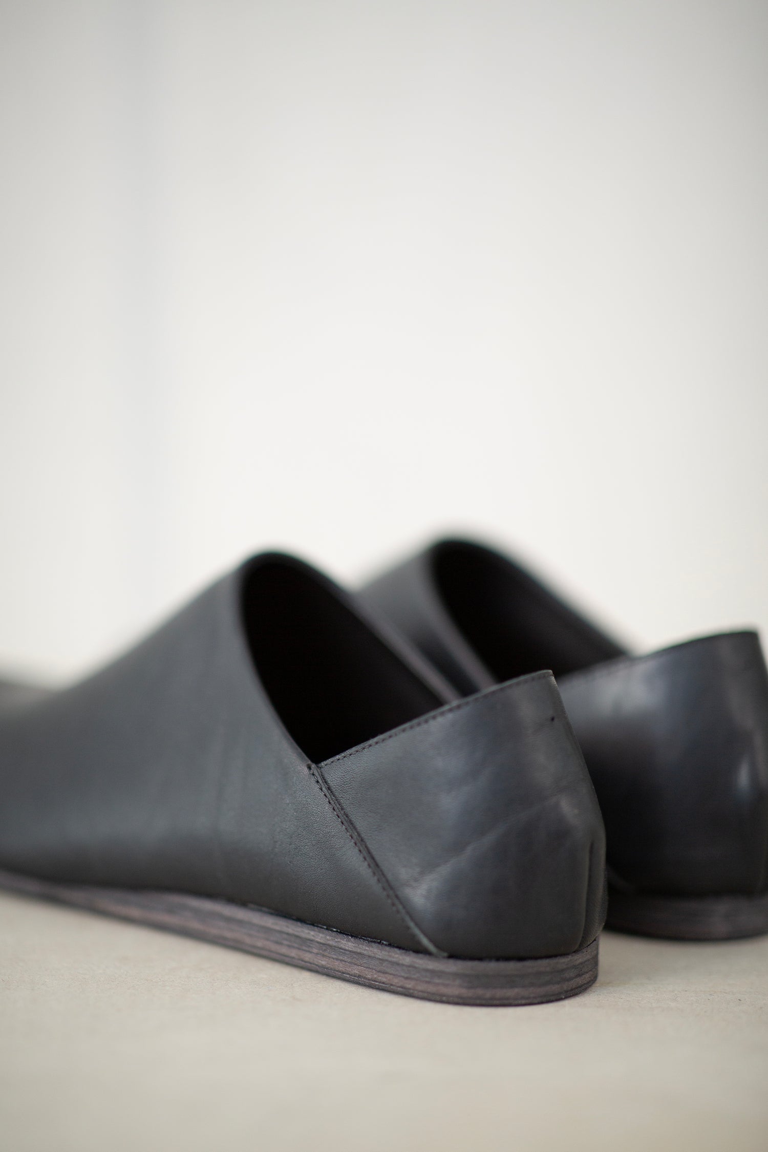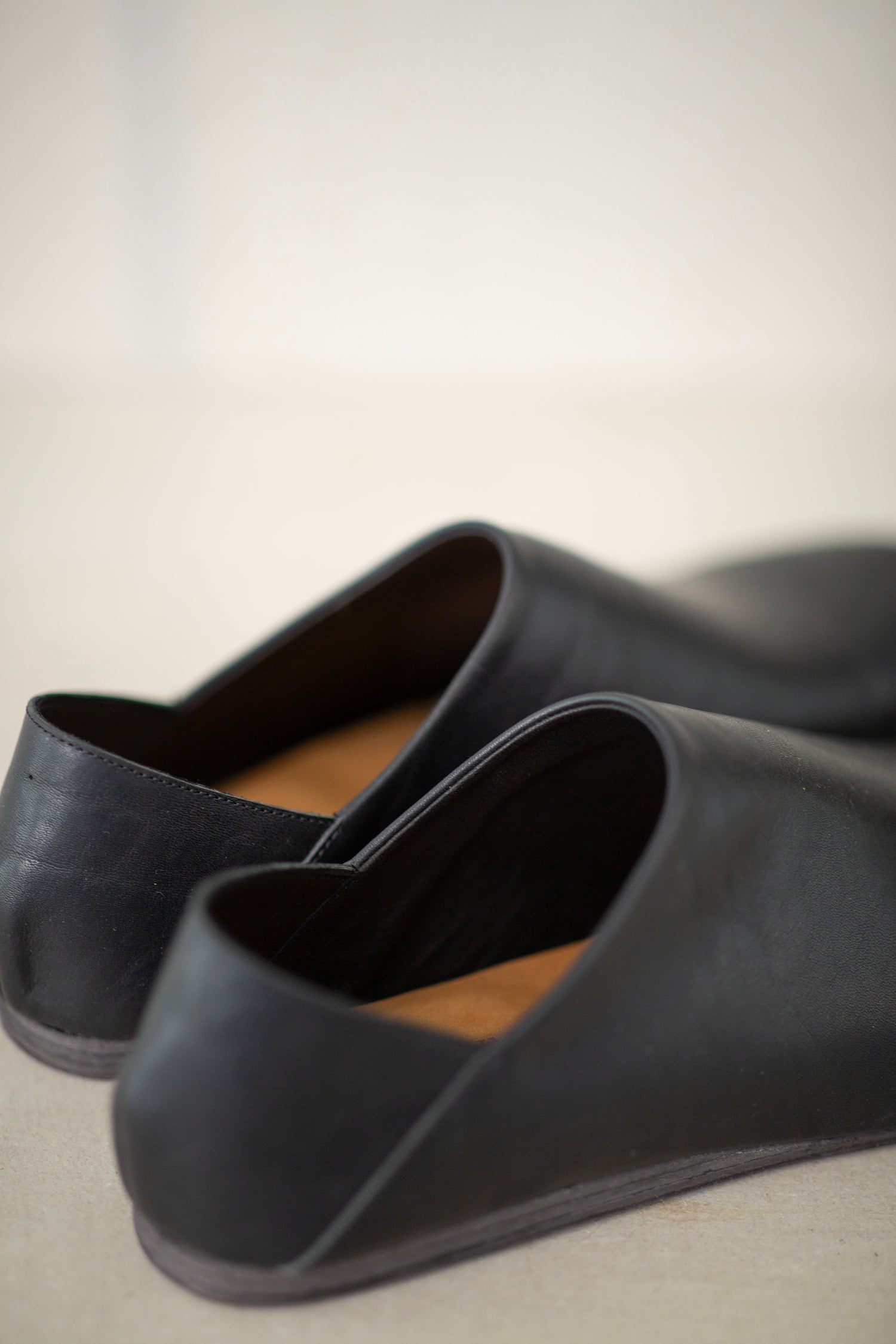Cowhide slip on babouche with the possibility to push the heel flat, handmade by Petrosolaum in collaboration with Jan-Jan Van Essche for the COLLECTION#14 - PRANA (SS24).