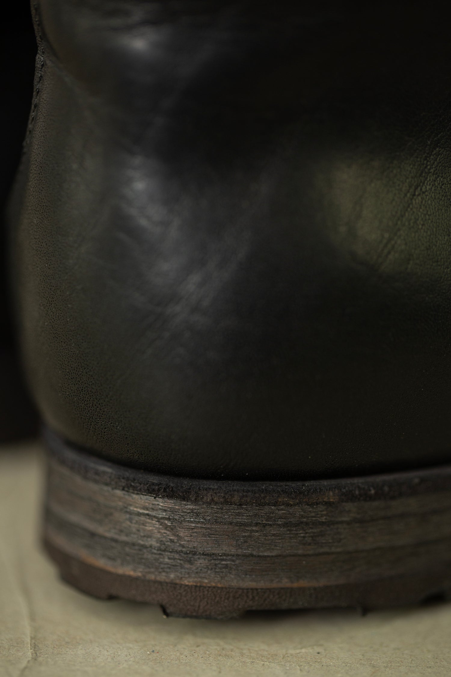 Extremely comfortbale pit-dyed cow leather hightop sneakers with Vibram sole and leather lining, handmade by Petrosolaum in collaboration with Jan-Jan Van Essche.