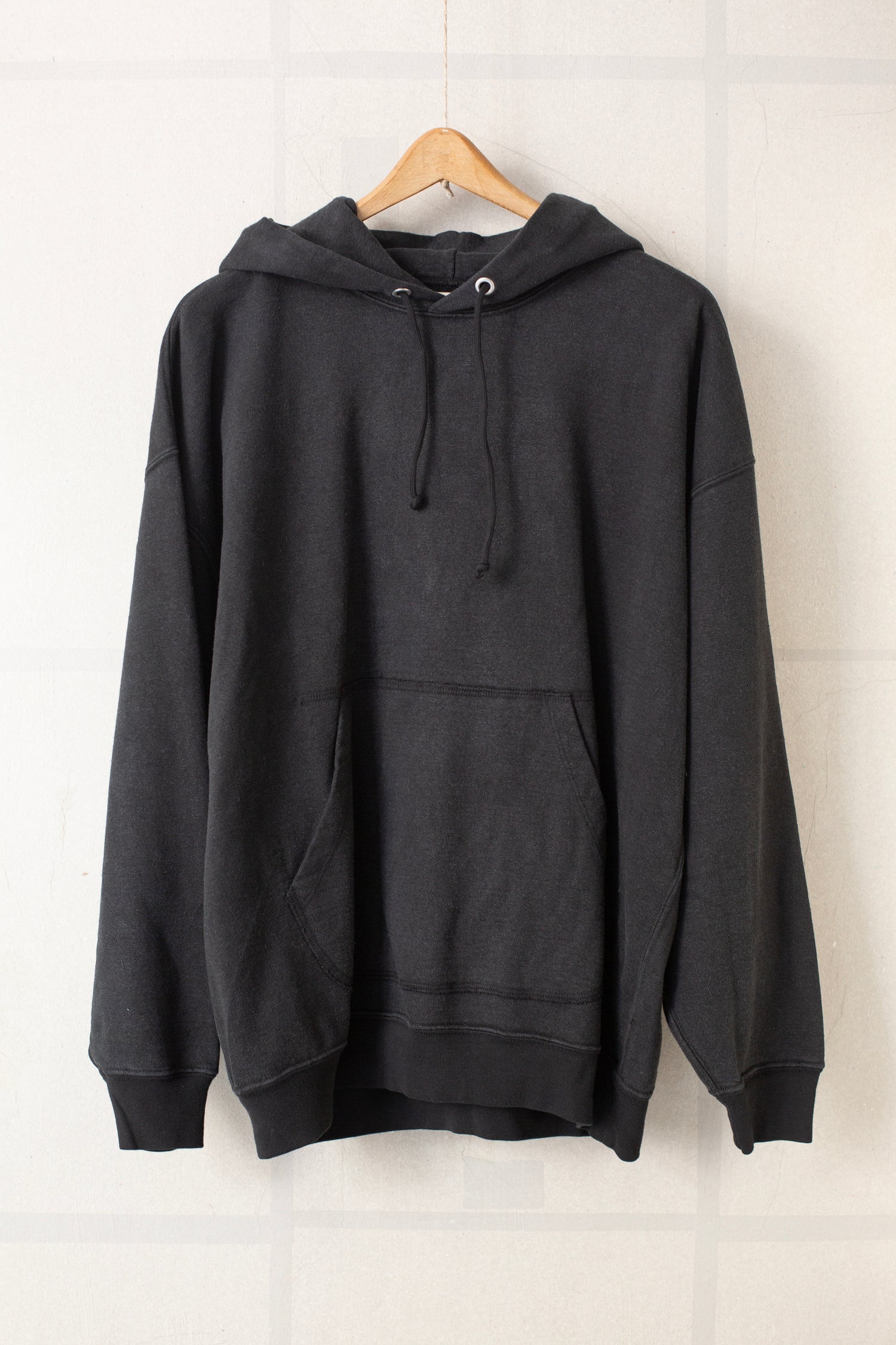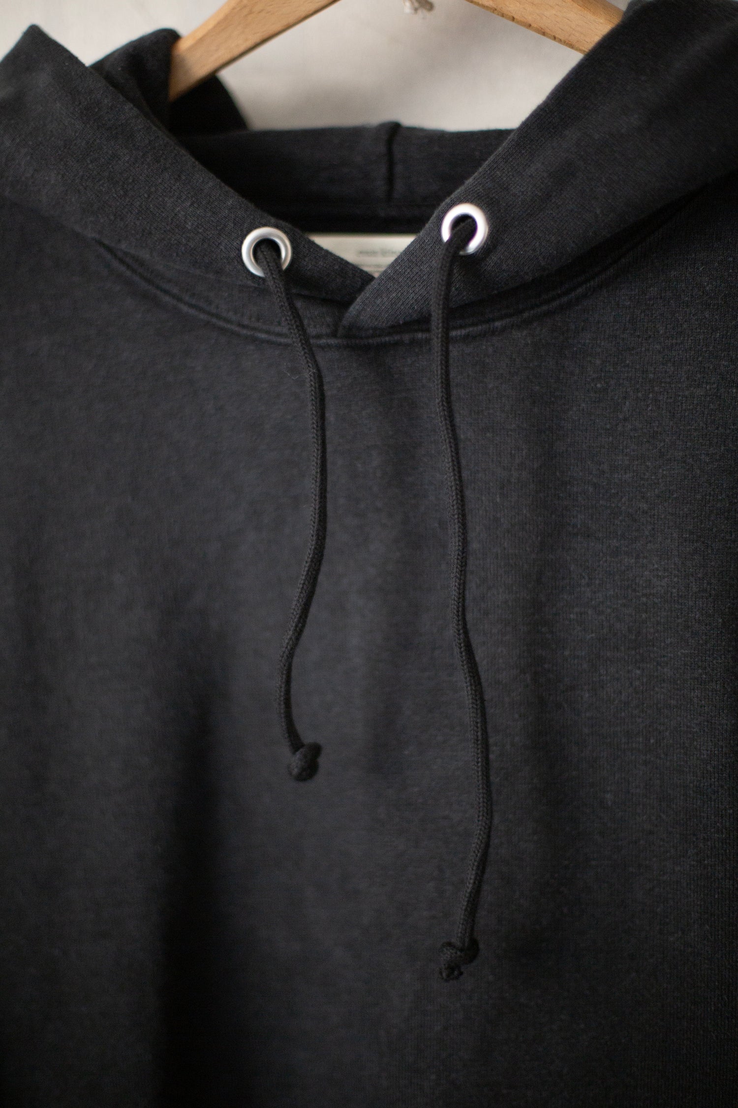 Hooded sweatshirt in black organic cotton/hemp sweat by Evan Kinori in collaboration with Lady White Company with one big front pocket