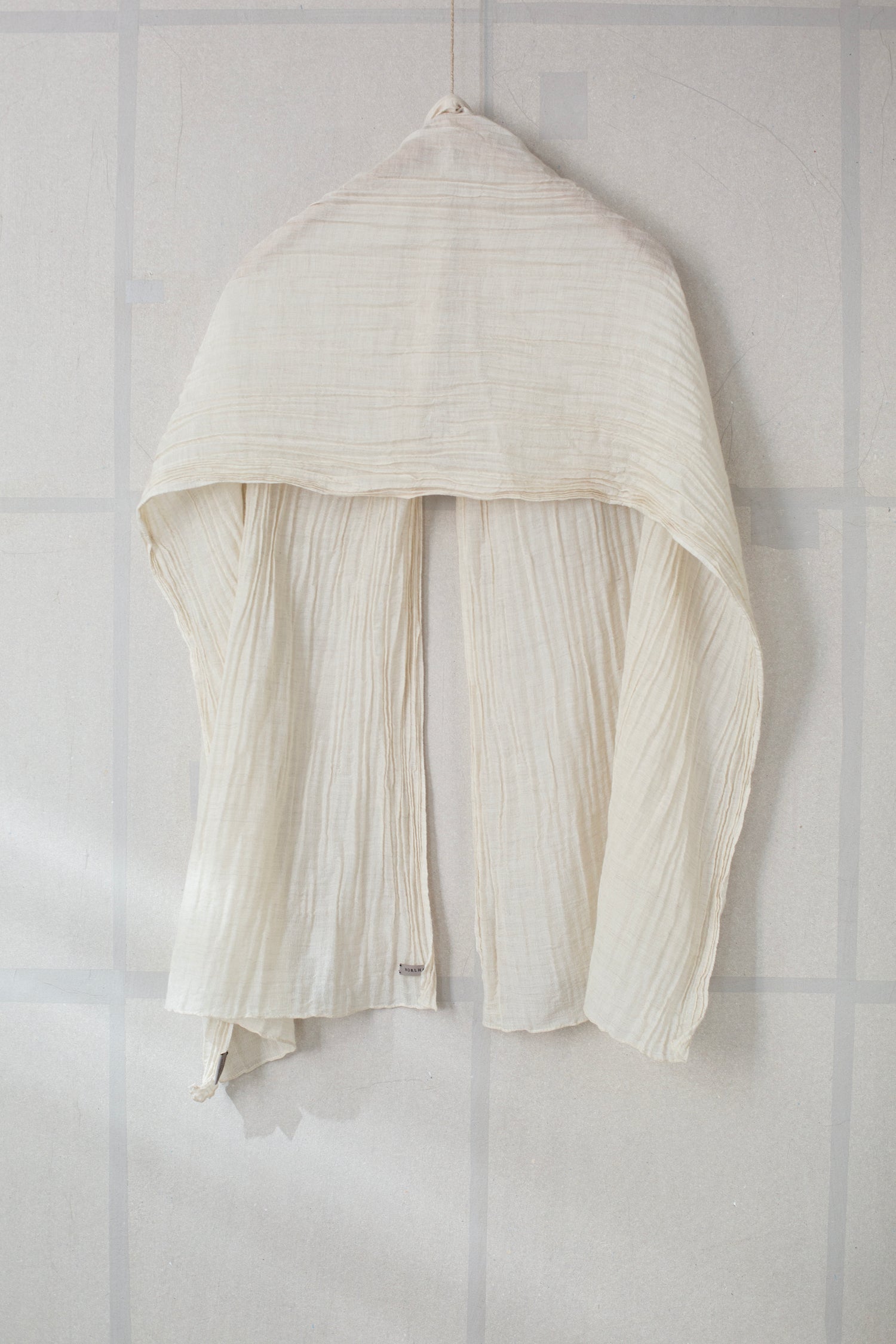 A softly textured yak khullu and silk-blend scarf. Its distinctive design features a centre panel of naturally pleated fabric, an effect which is created by the balance between the yak wool and silk in its weave. The scarf’s side panels have a higher concentration of silk, which tightens the weave, creating a smoother surface. In lightly contrasting shades, this scarf has a light sheen owing to its high percentage of silk.