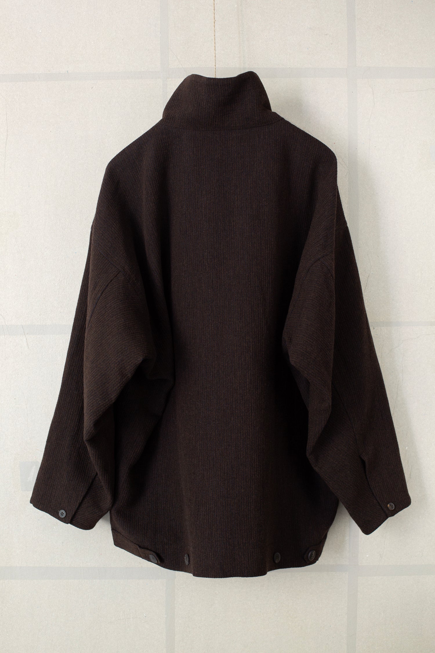 JACKET WITH HIGH, STANDING COLLAR AND FRONT PLEAT.