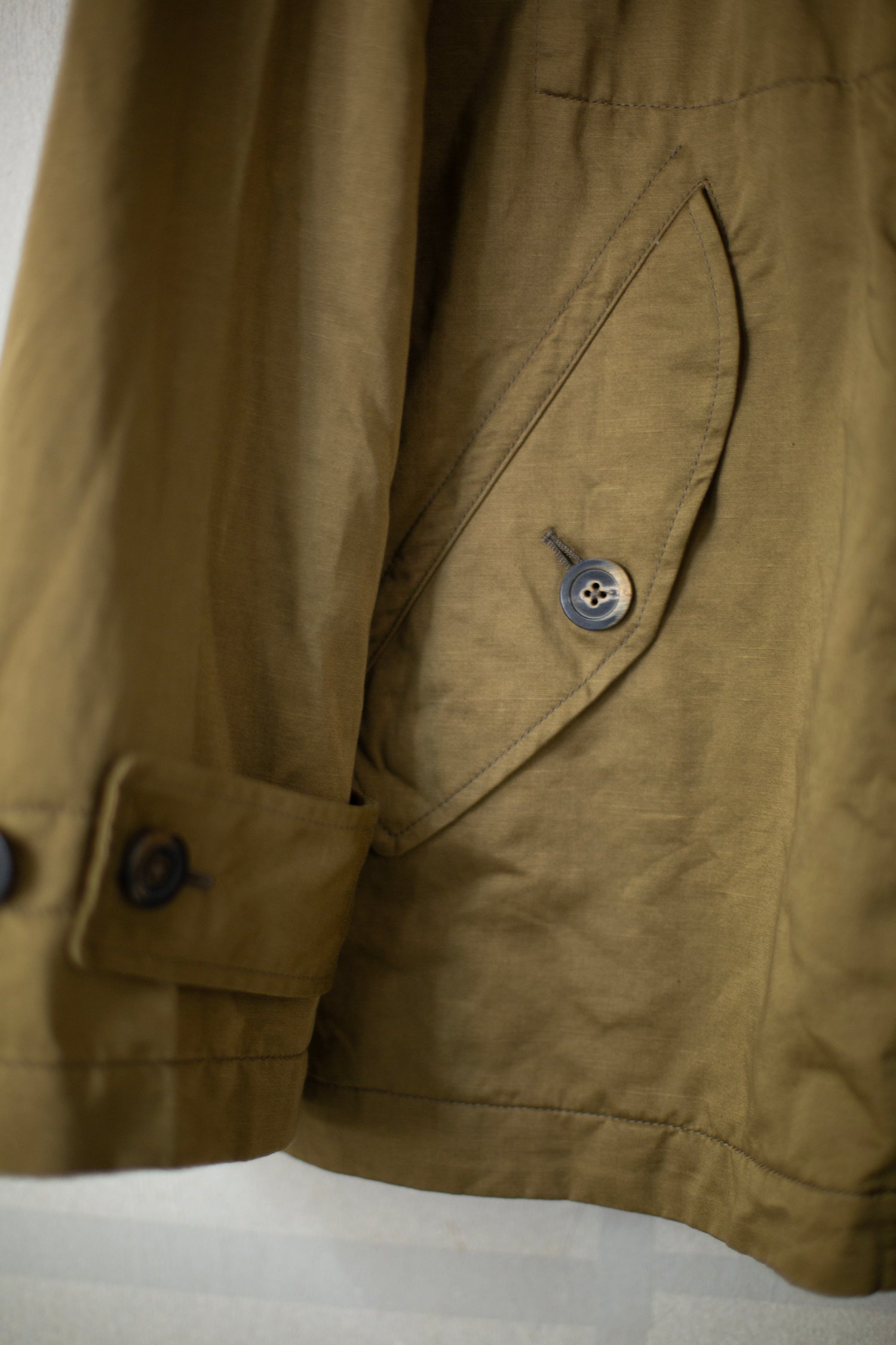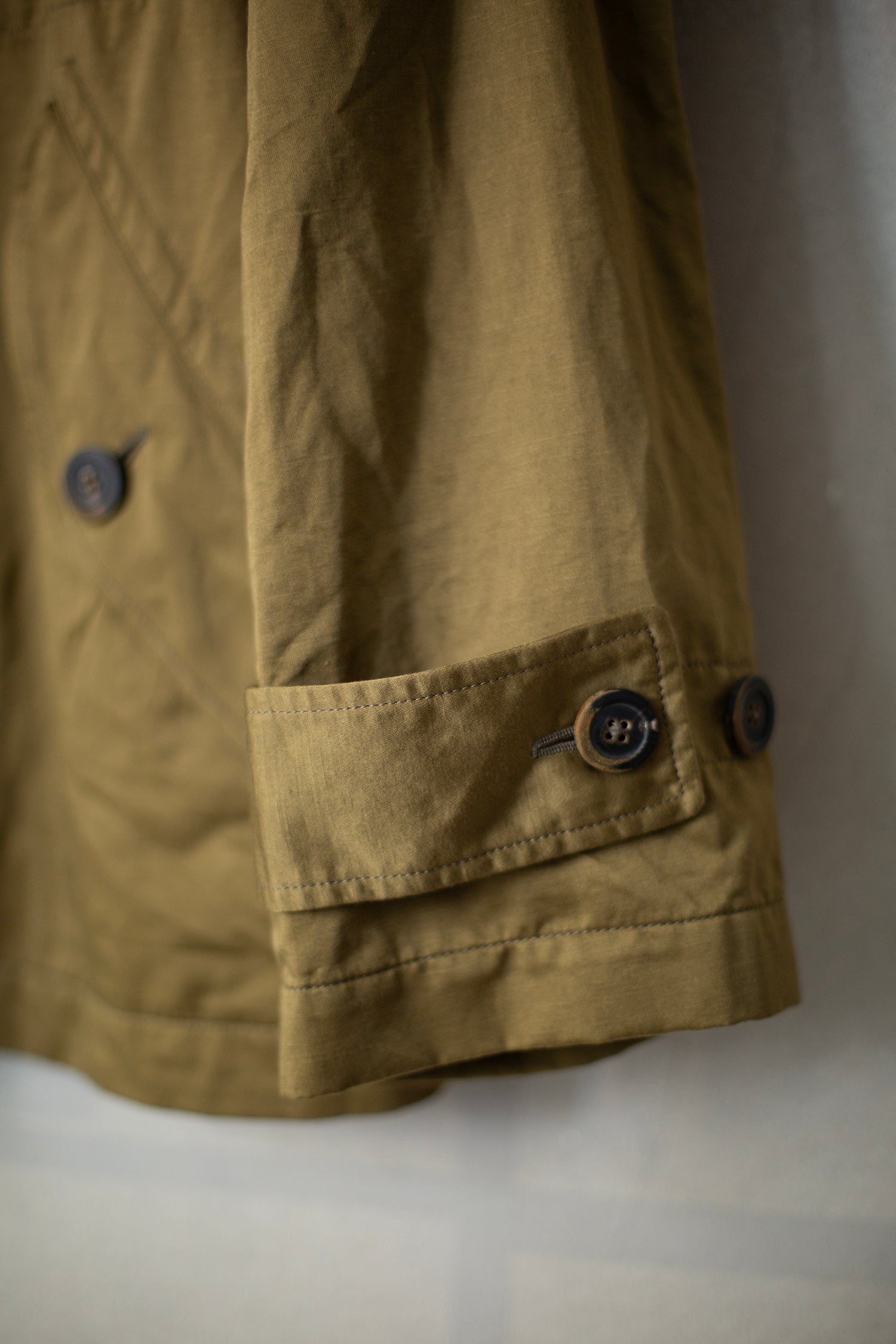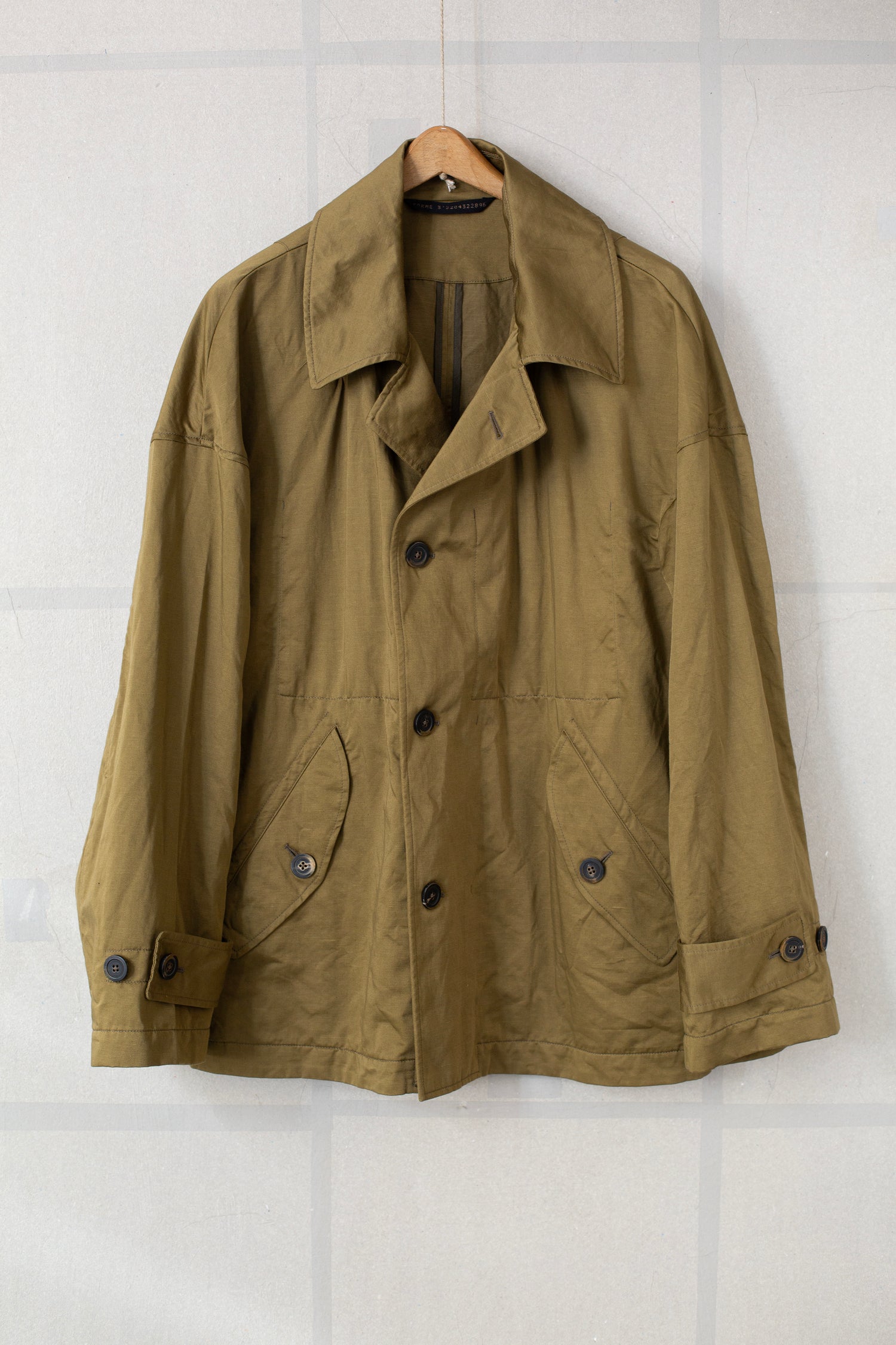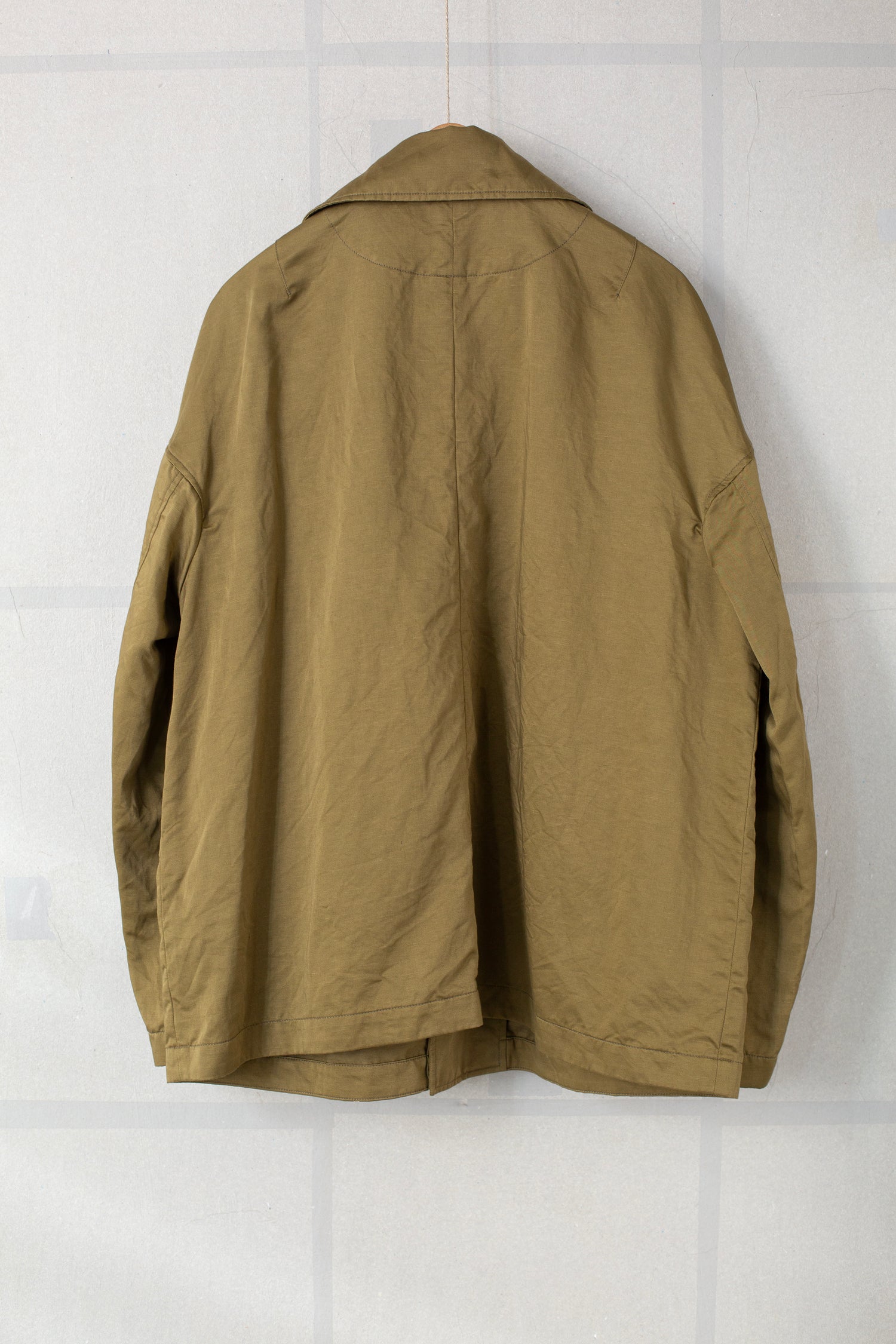 Kakhi caban by Forme D'Expression with drop shoulder and relaxed fit, front flap button closure pockets and adjustable sleeve cuffs.