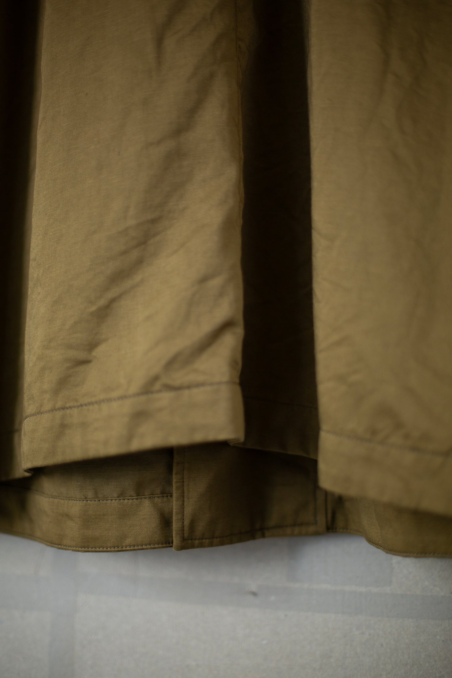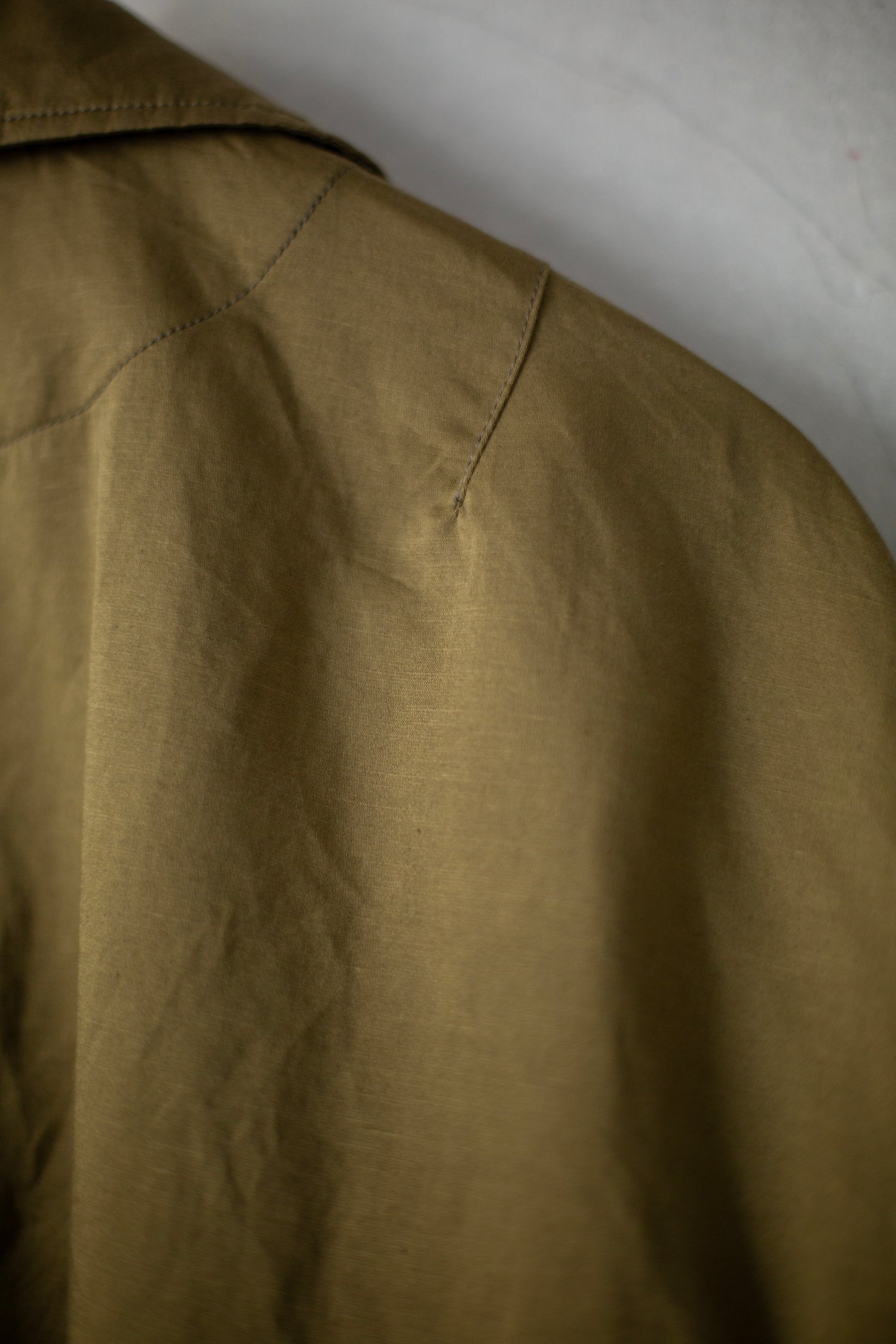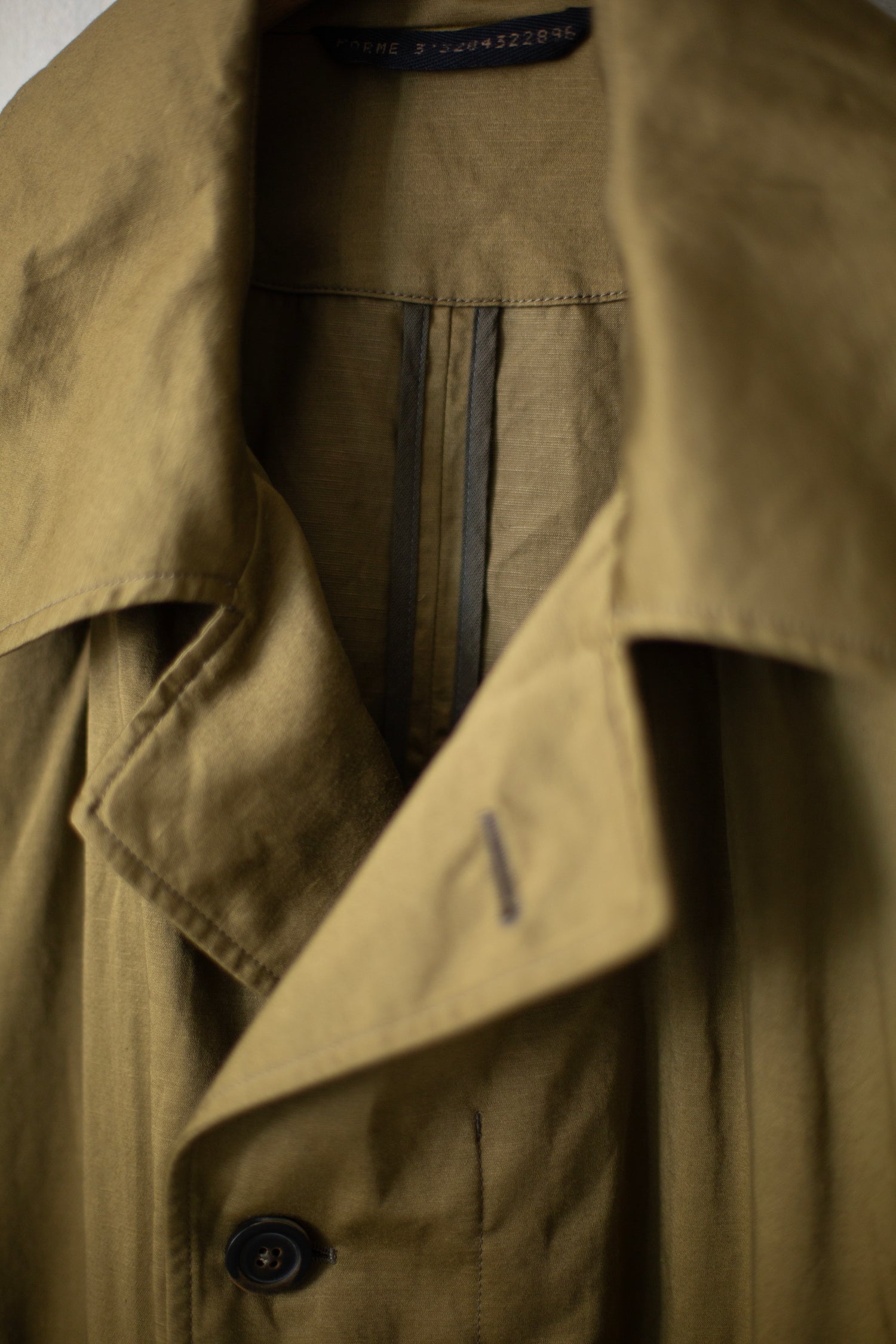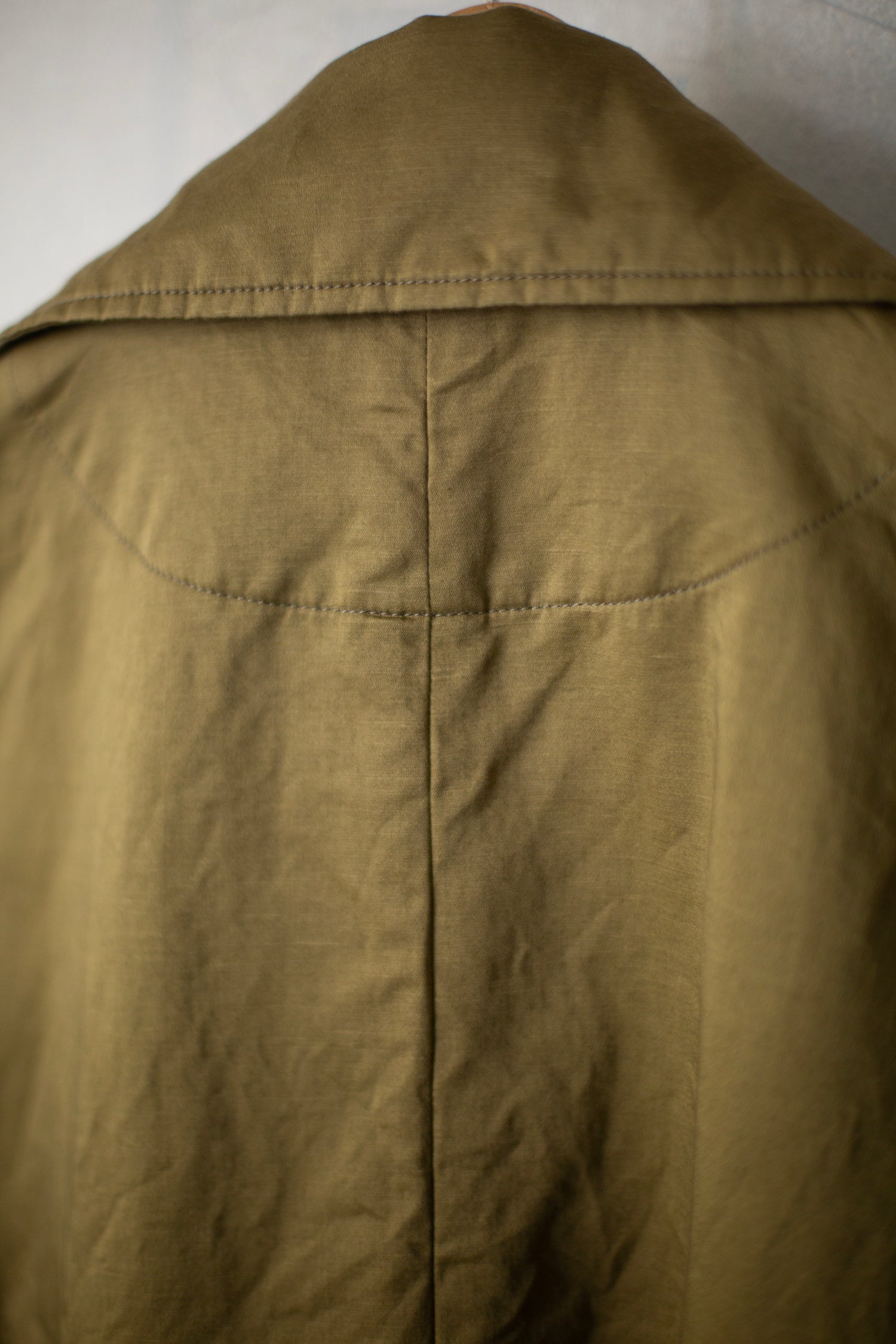 Kakhi caban by Forme D'Expression with drop shoulder and relaxed fit, front flap button closure pockets and adjustable sleeve cuffs.