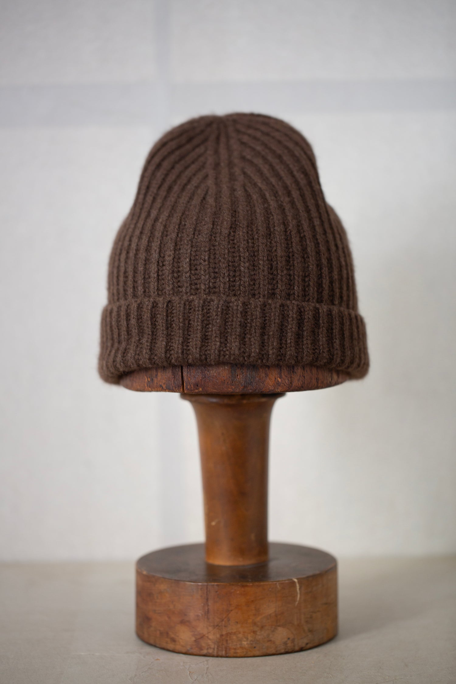 Knit Hat in Dark Brown Undyed Yak Wool by Evan Kinori.