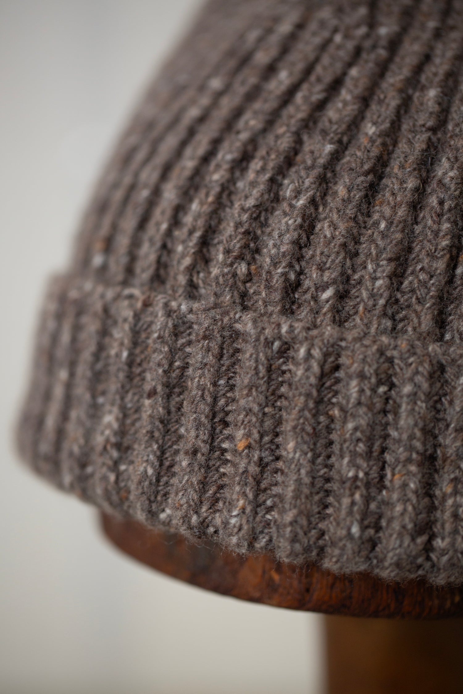 Knit Hat in Light Brown Cashmere/Wool Tweed
