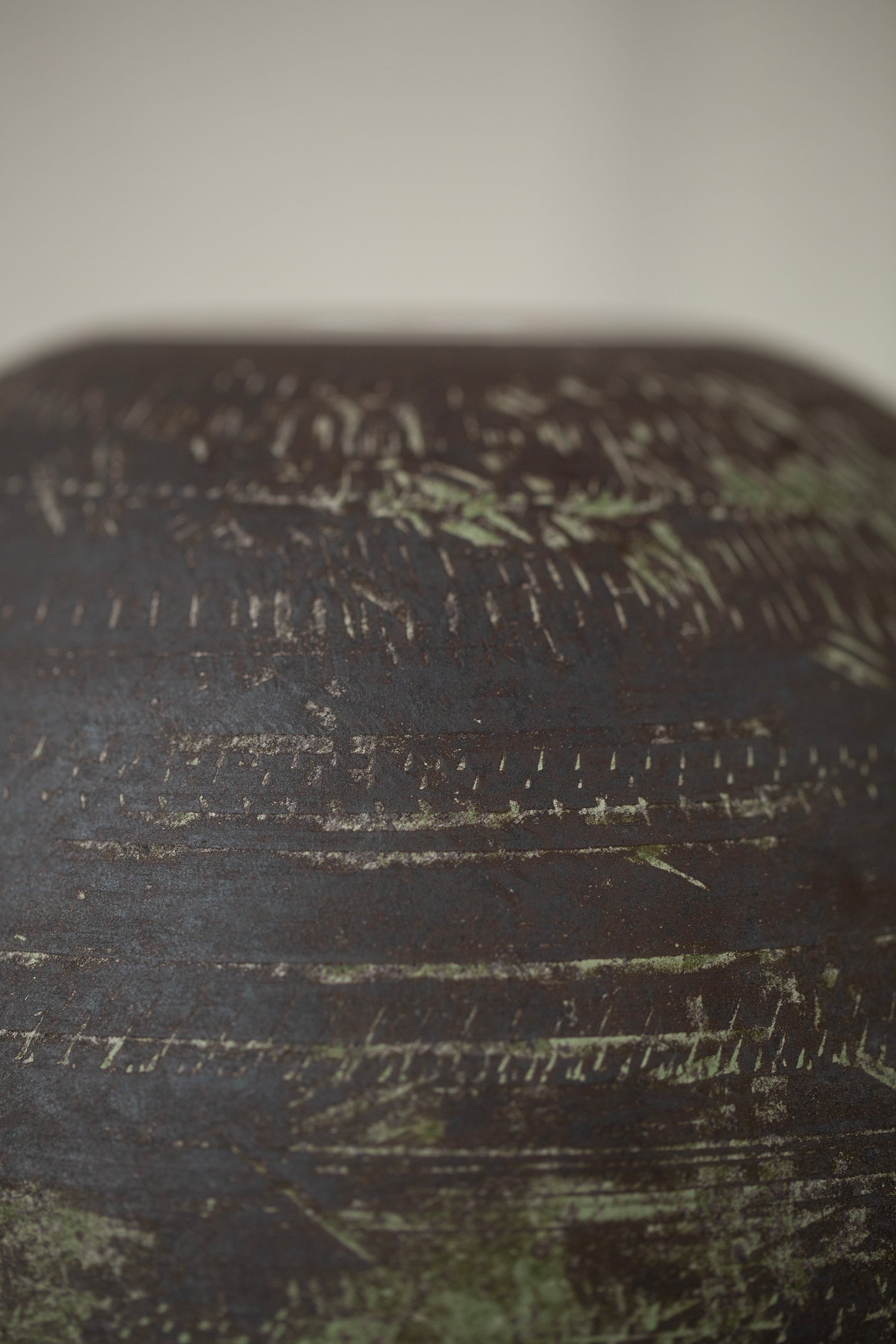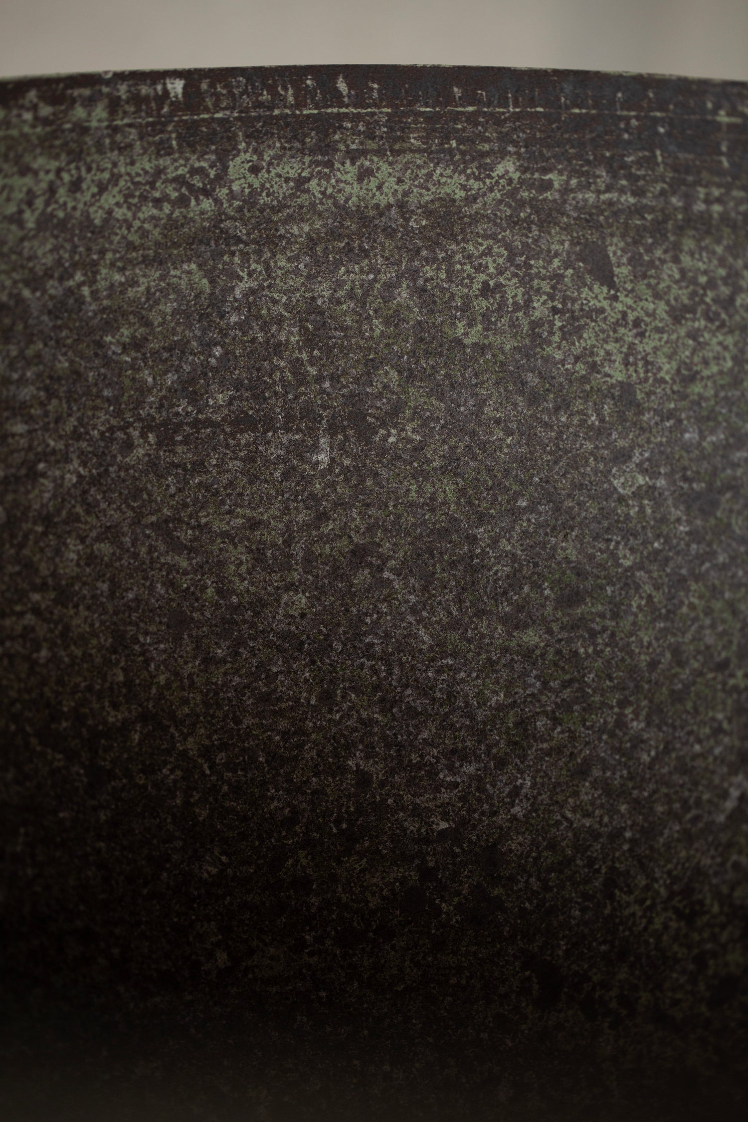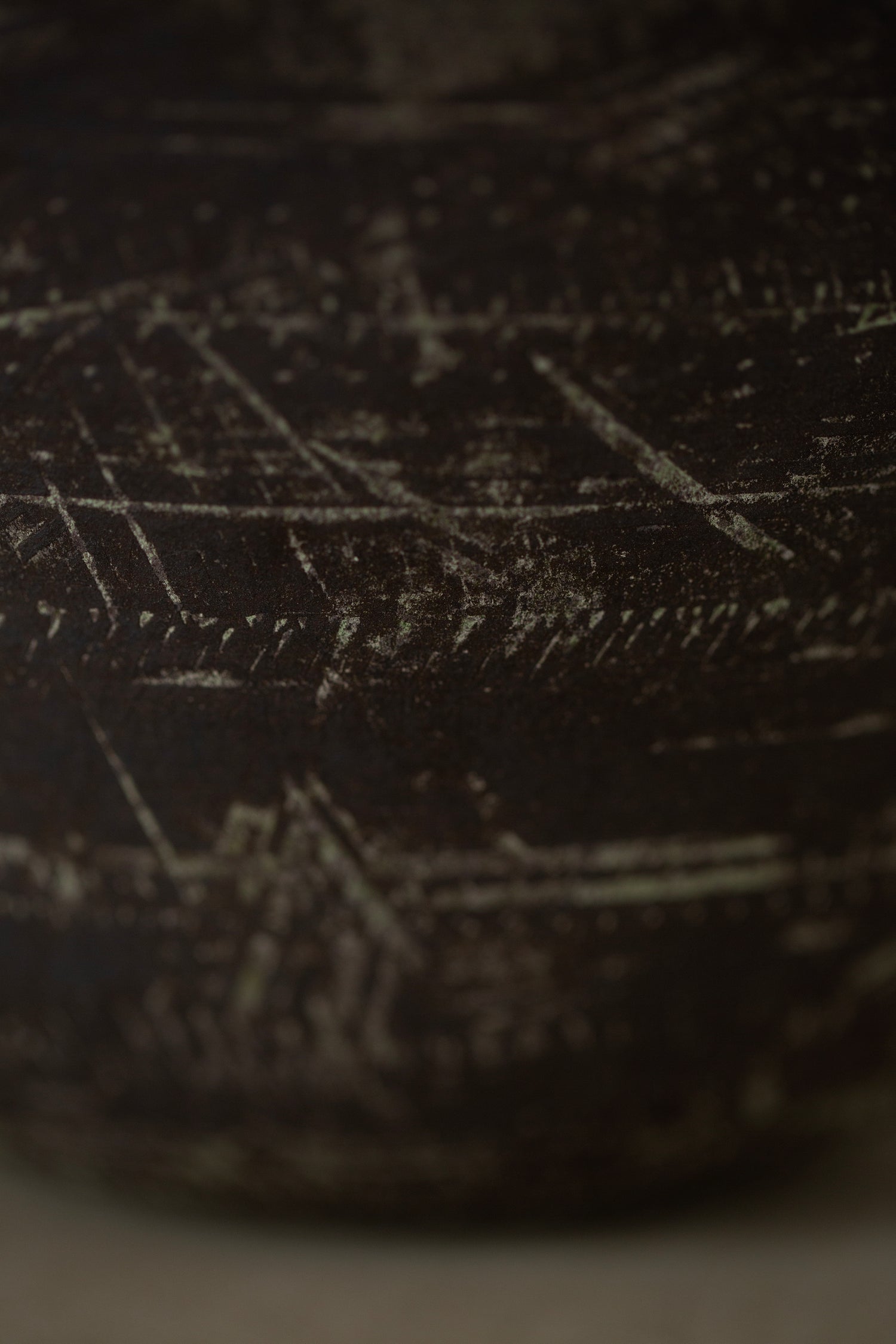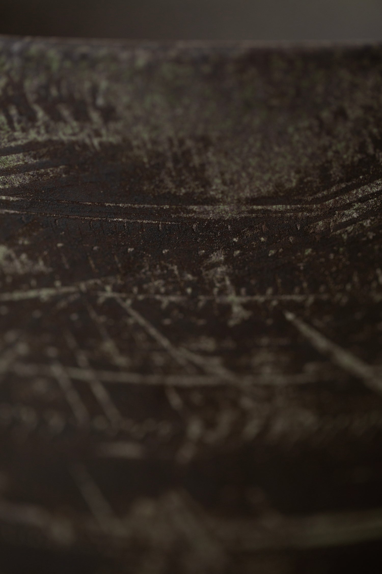 An elegant large ceramic bowl by Ciprian Tocu hand turned in blackish sandstone with structures resembling hammering work.