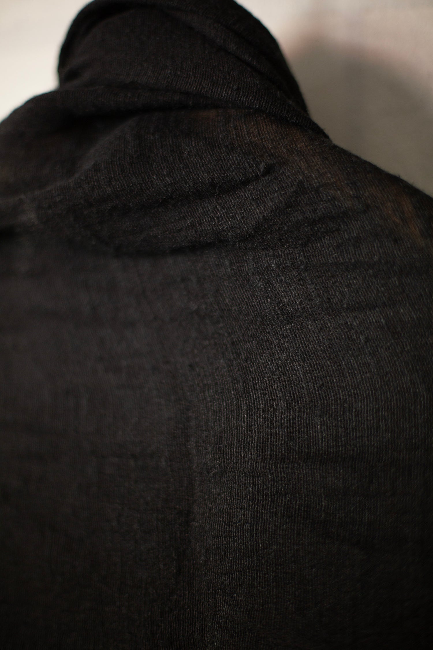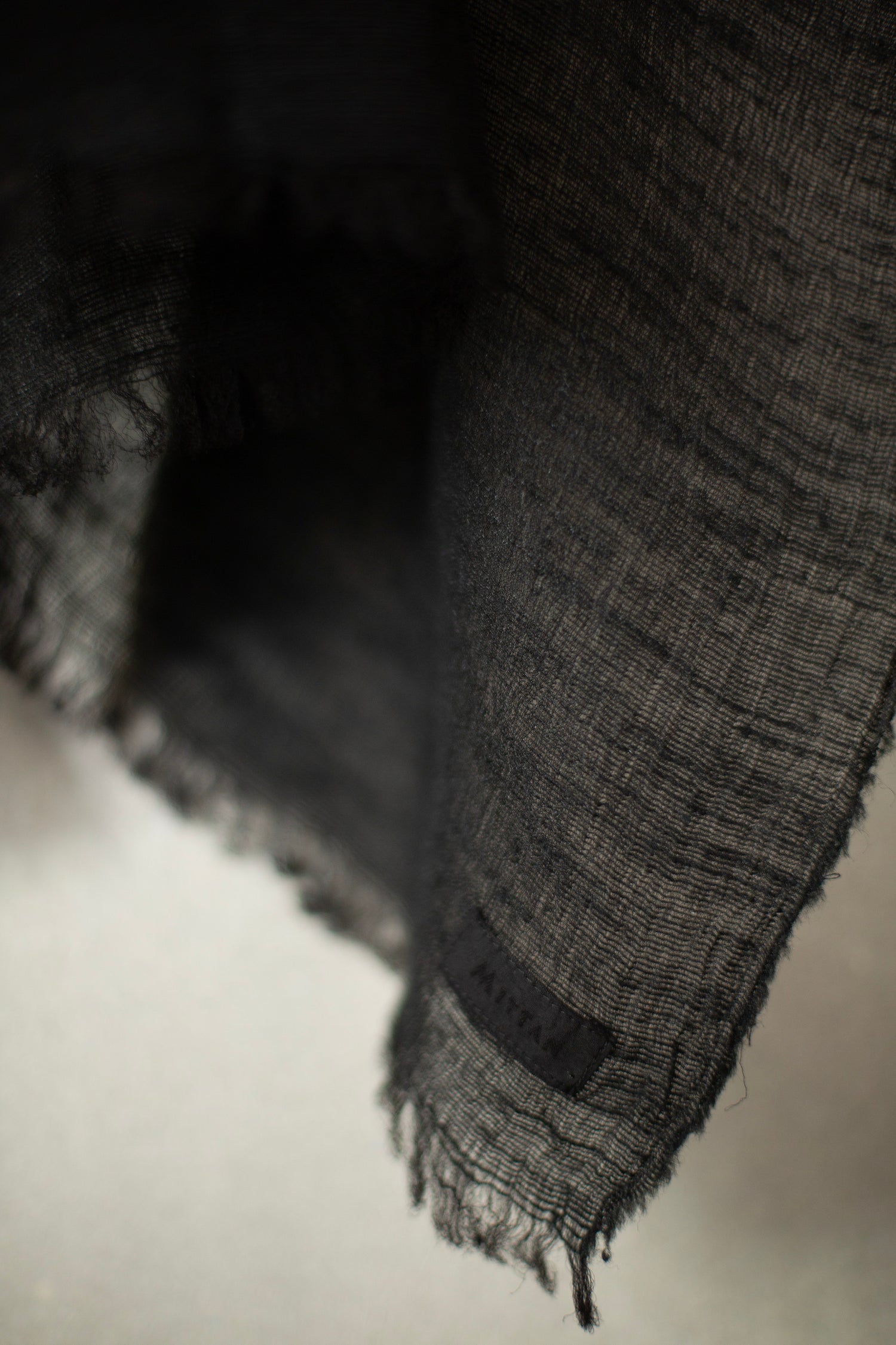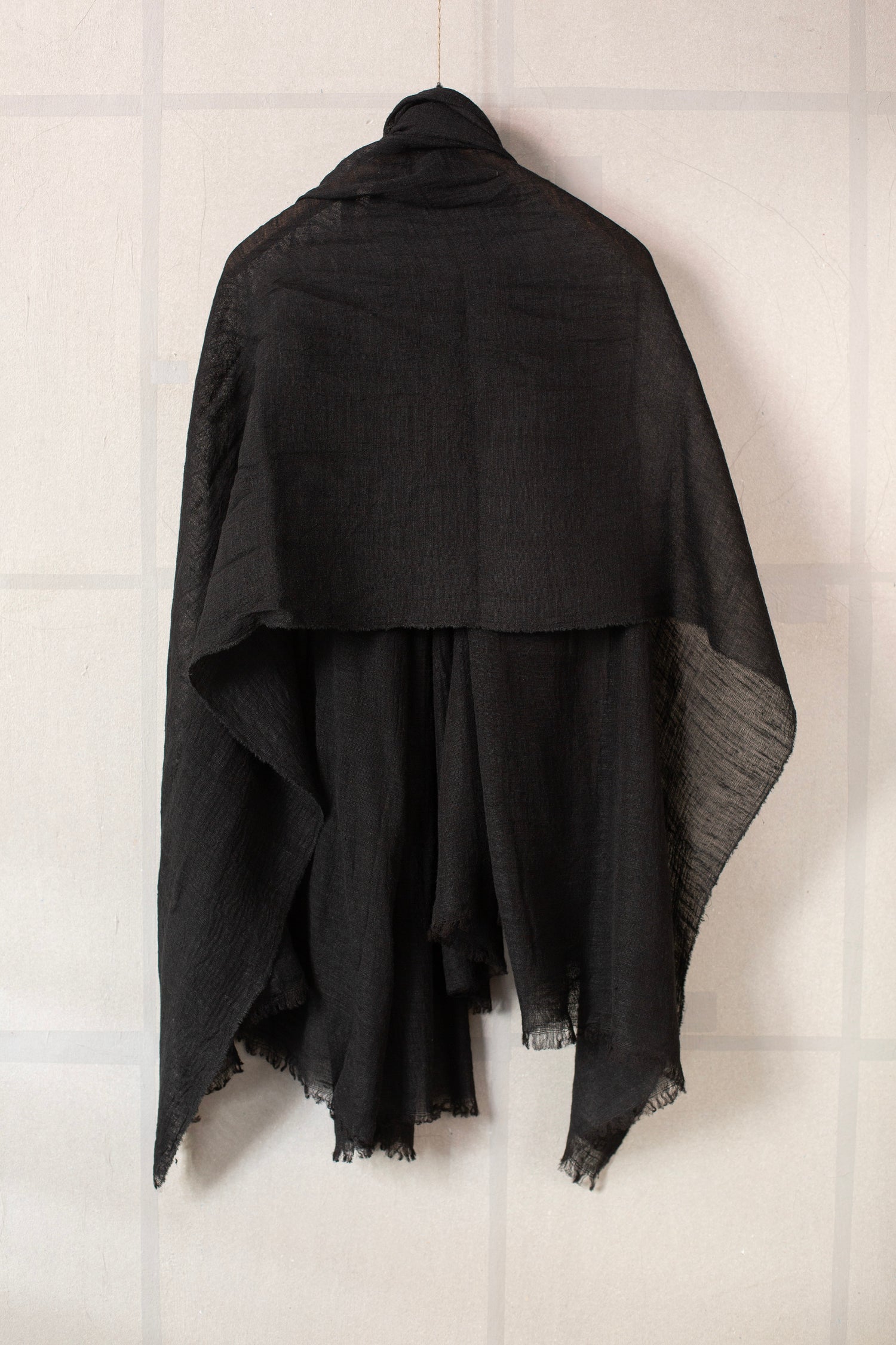 Large lightweight semi sheer silk scarf by Mittan in black with crisp texture.