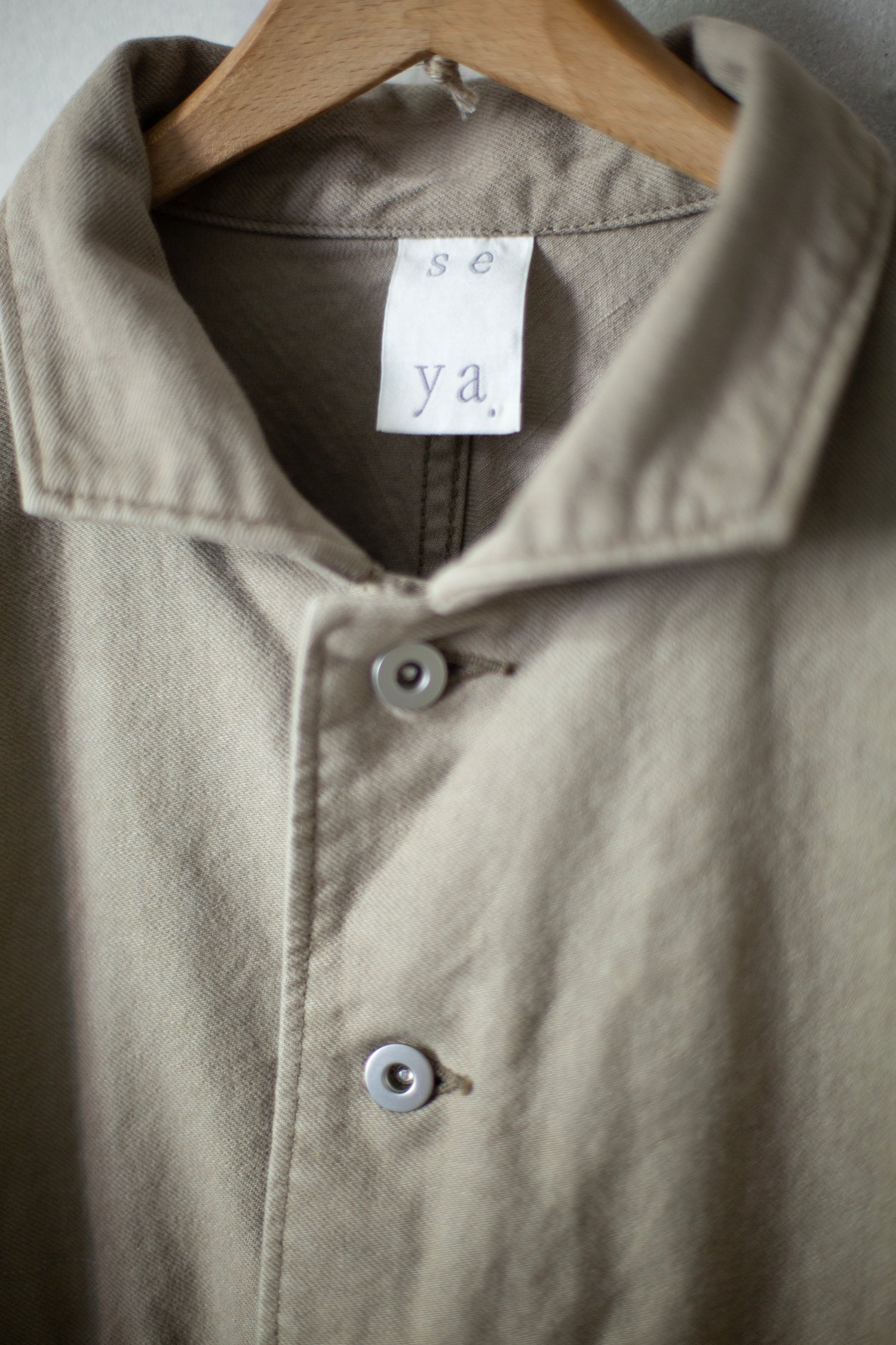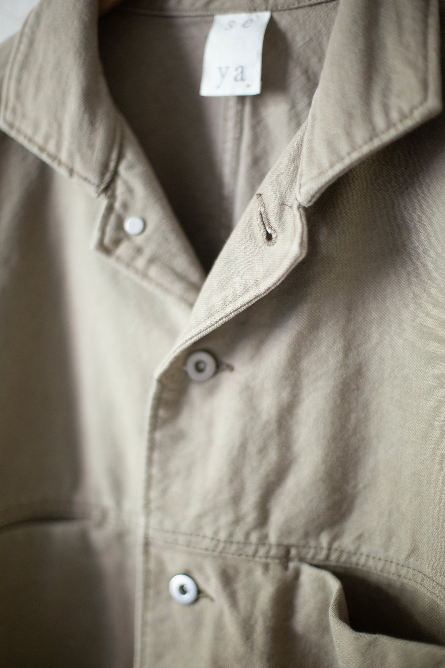 Limestone oversized fit tofu denim jacket by seya. in vintage effect powdered denim.