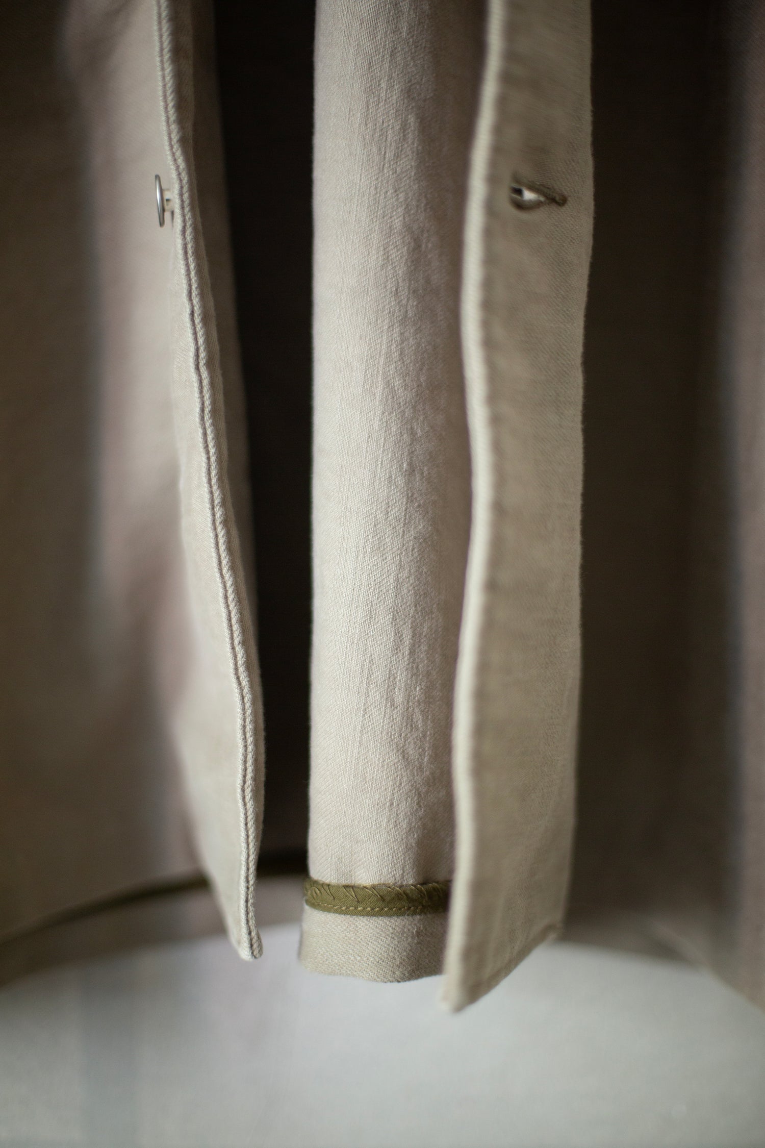 With hand stitched like hem finishing, two breast pockets and metallic buttons.