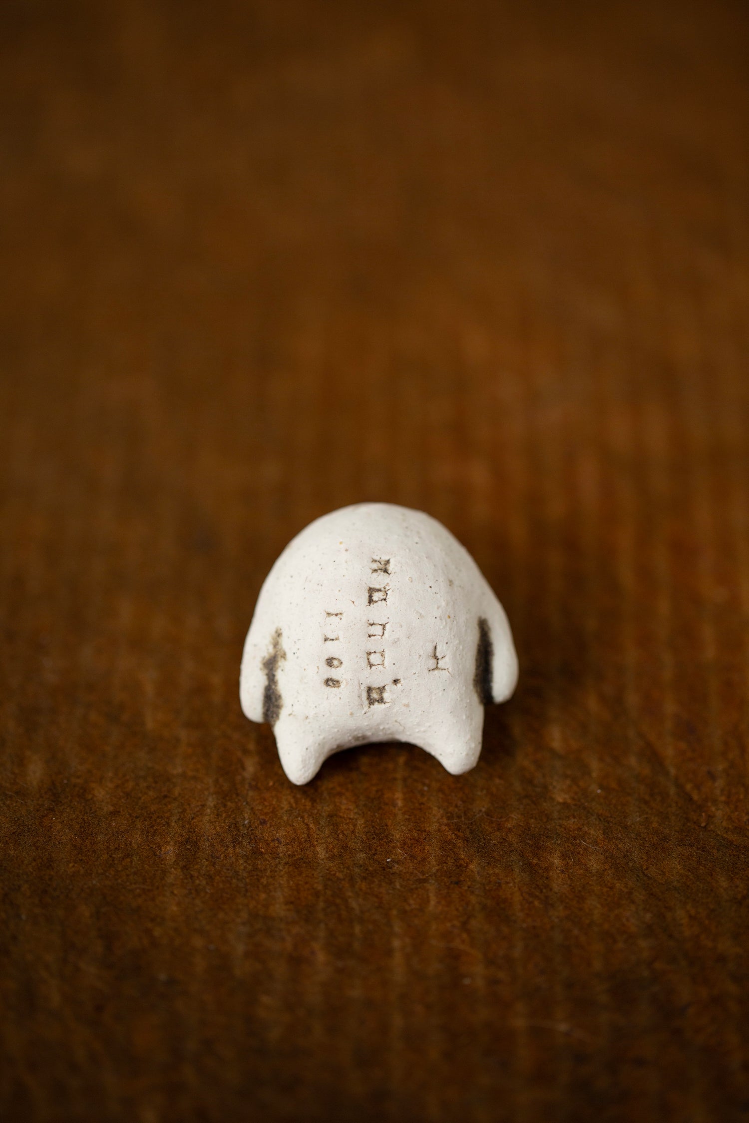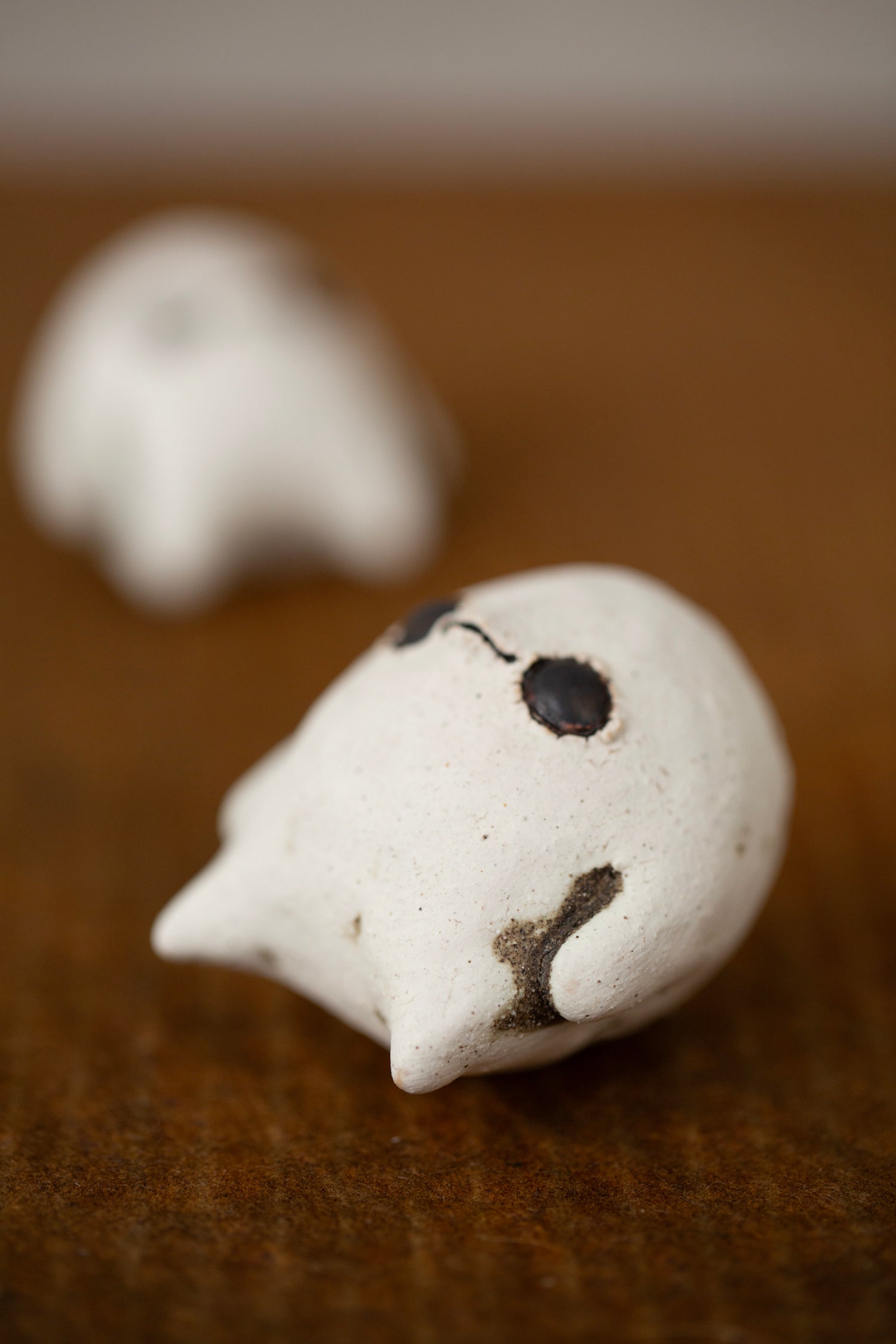 Hand made cute ceramic figure of a small laying 'Maracas Boy' by Miyachi