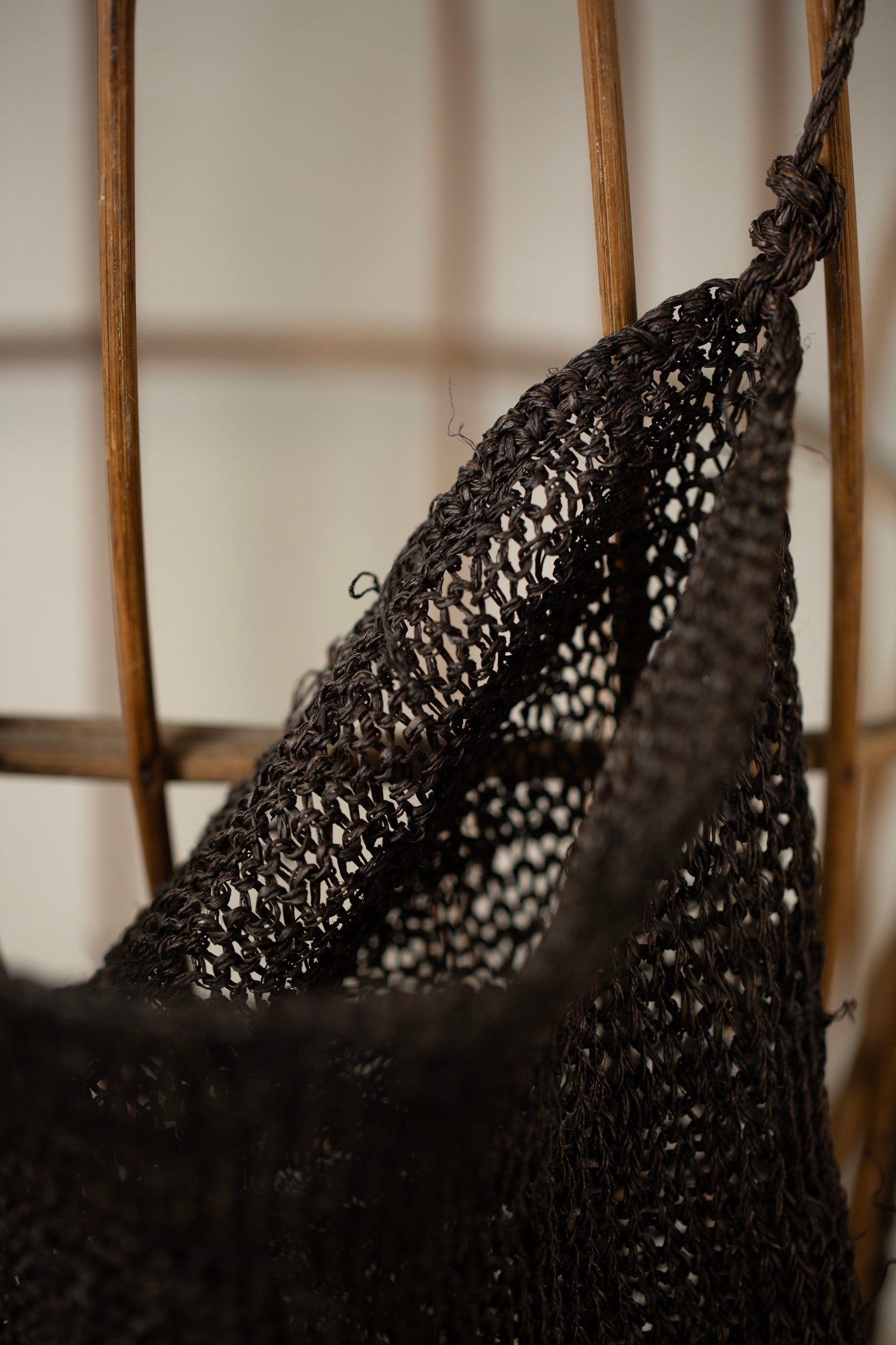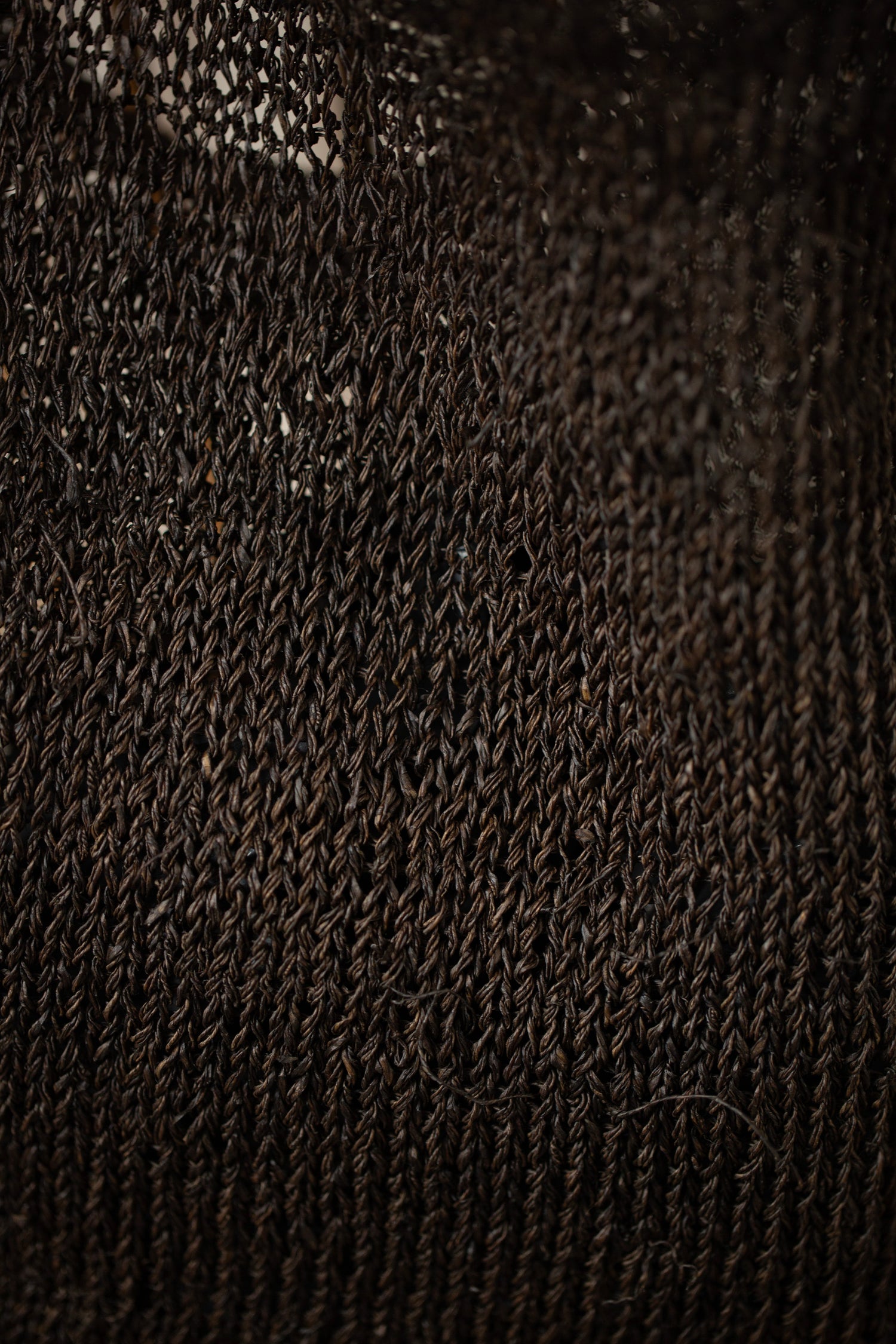 This bag is hand knitted with raw hemp grown by the Hmong tribe in Northern Thailand. It is dyed in Japan and Singapore with kaki shibu, using persimmons grown in the mountains of Kyoto. It is dyed and aged under the sun for a period of time. It might feel a little stiff initially but it will soften after time and use. Please hand wash it gently in warm water, using mild detergent. Be aware of acidic substances such as vinegar or citrus fruits as they may cause discoloration.