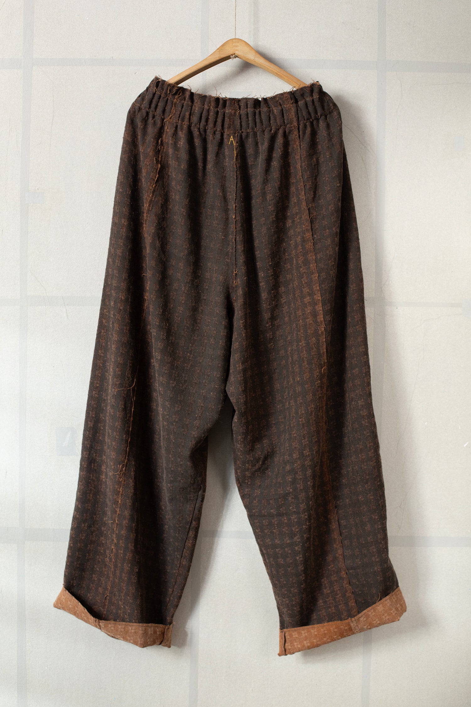 Mud Dyed Baku Pants by AIREI with side pockets, raw edges and seams, elasticated waist and ribbon in waist.