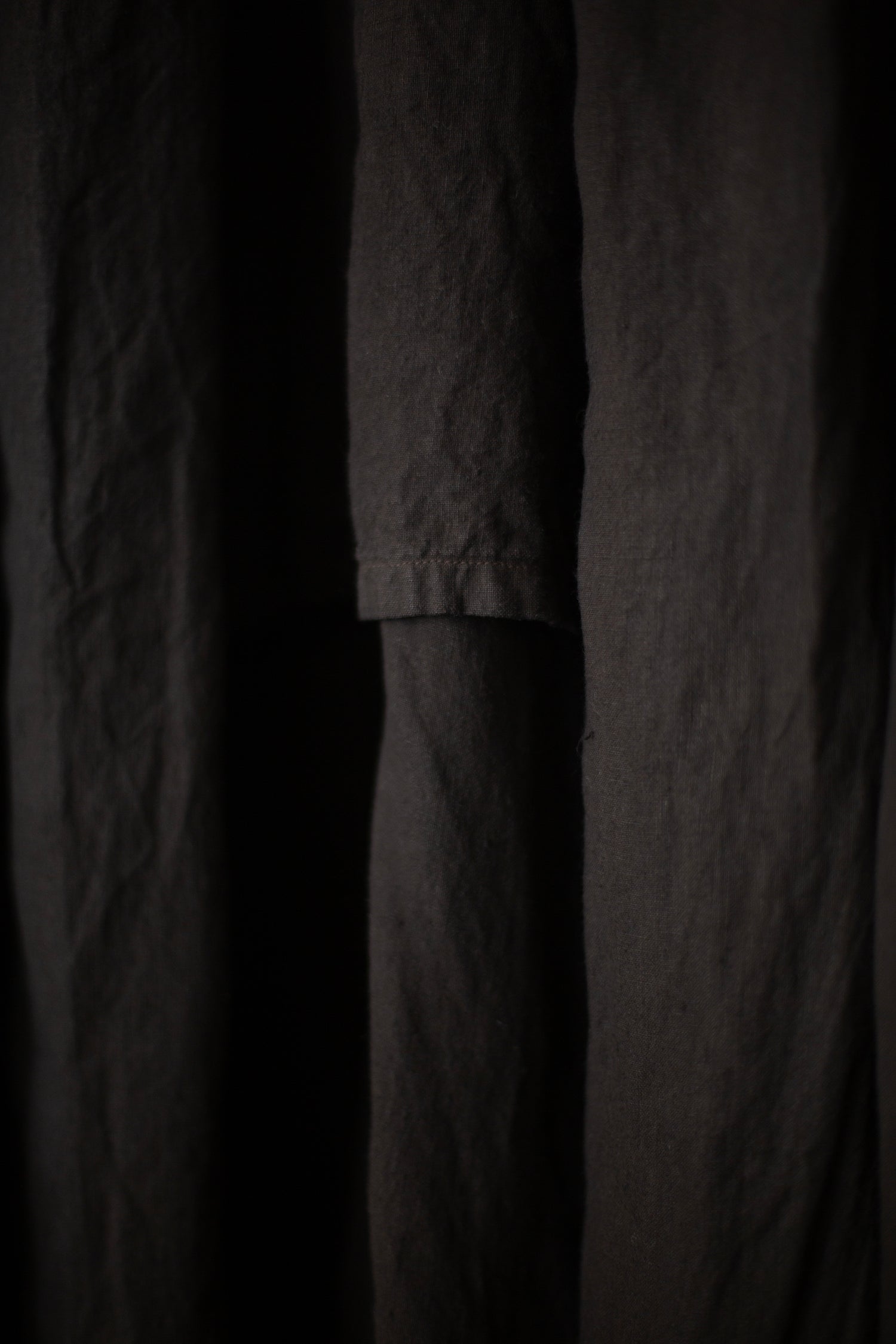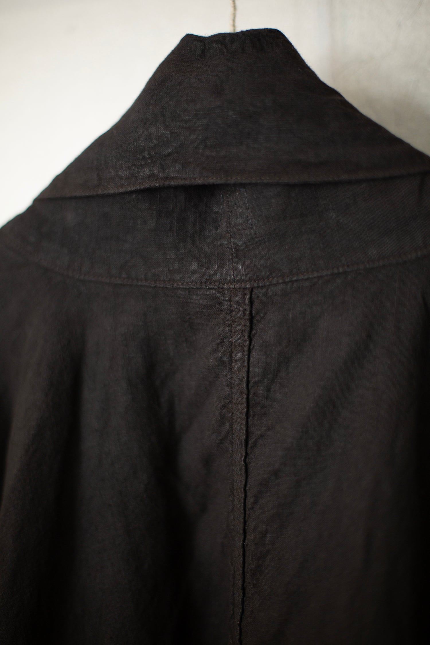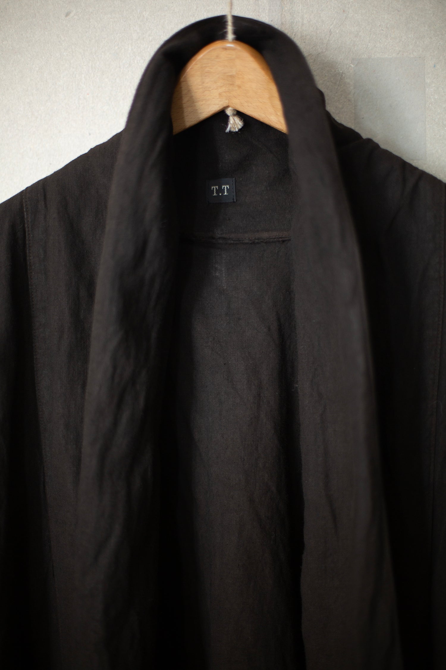 Large Mud dyed (doro zome) brown shawl collar kimono coat by Taiga Takahashi with two side pockets. Partially lined.
