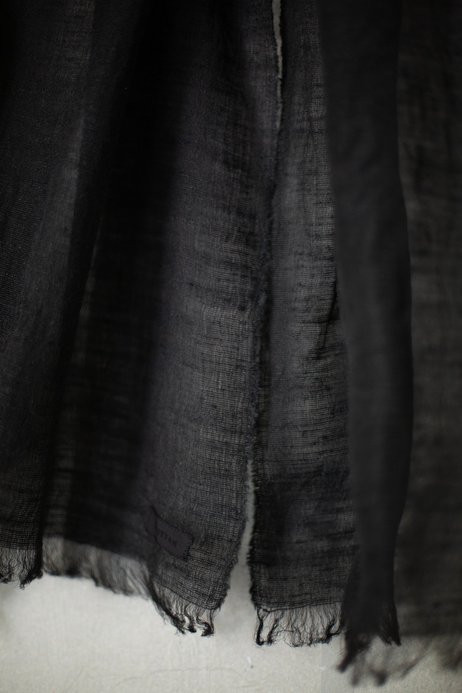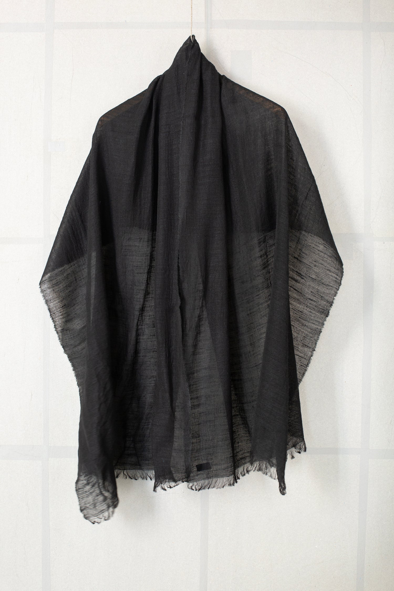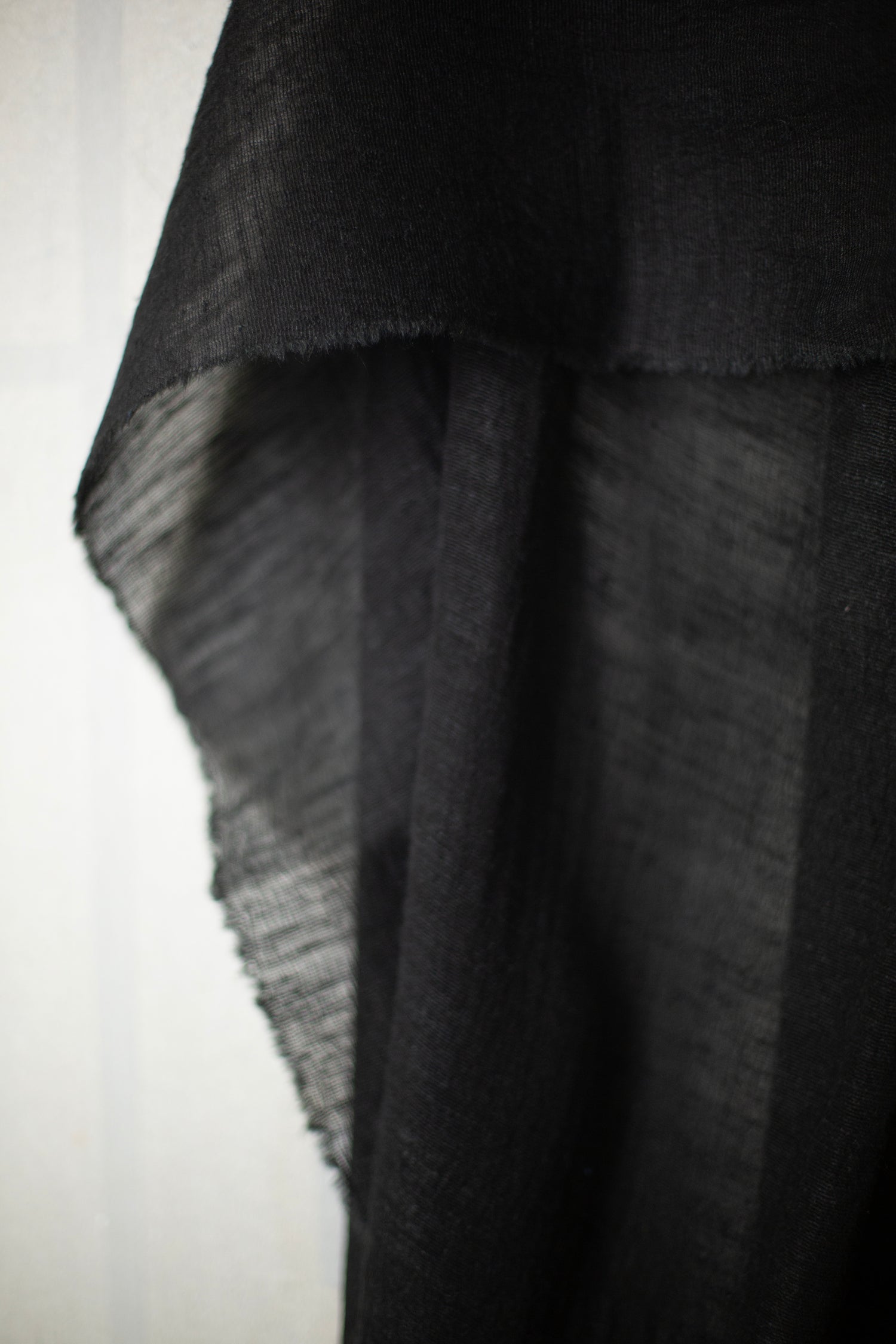 Lightweight semi sheer silk scarf by Mittan in black with crisp texture.